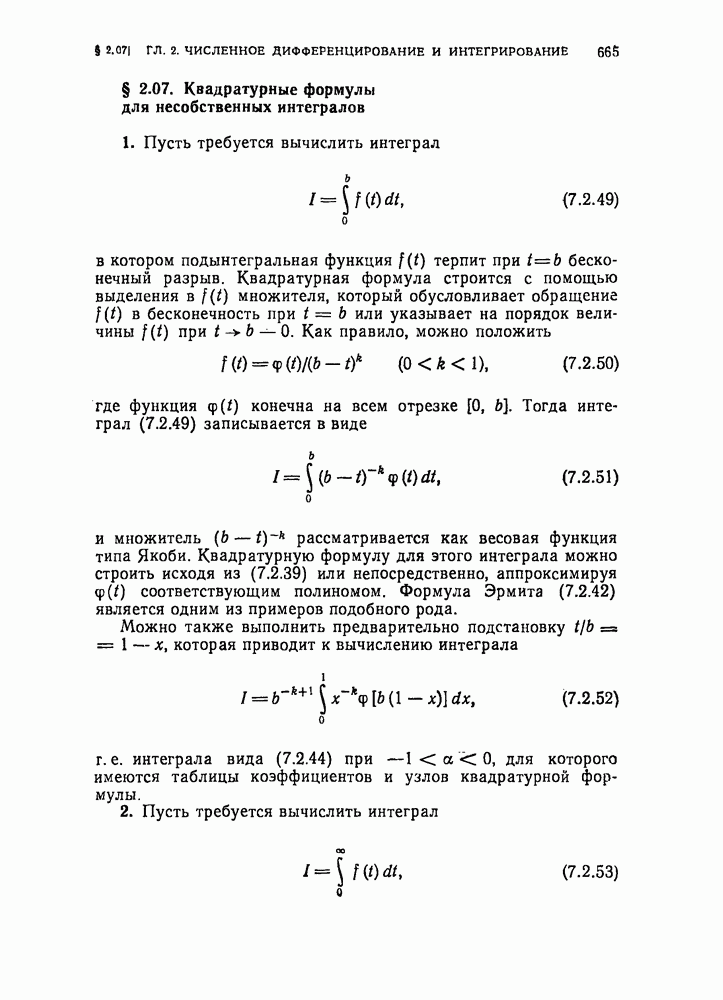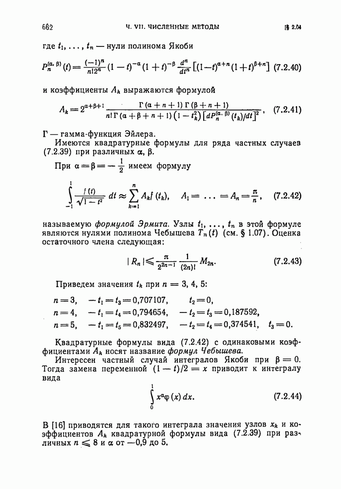 Имеются квадратурные формулы для ряда частных случаев (7.2.39) при различных