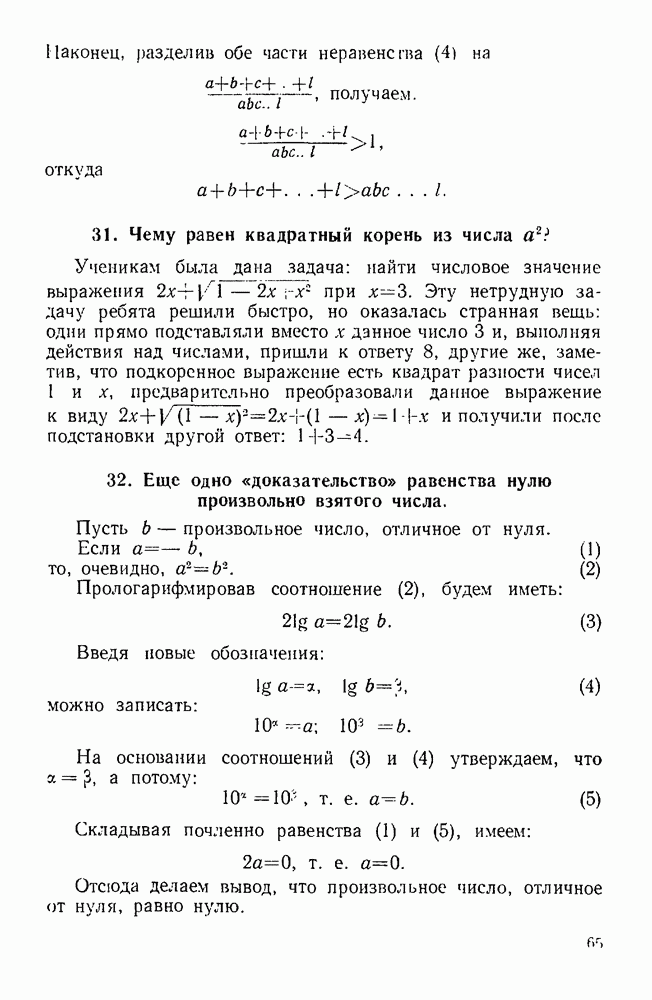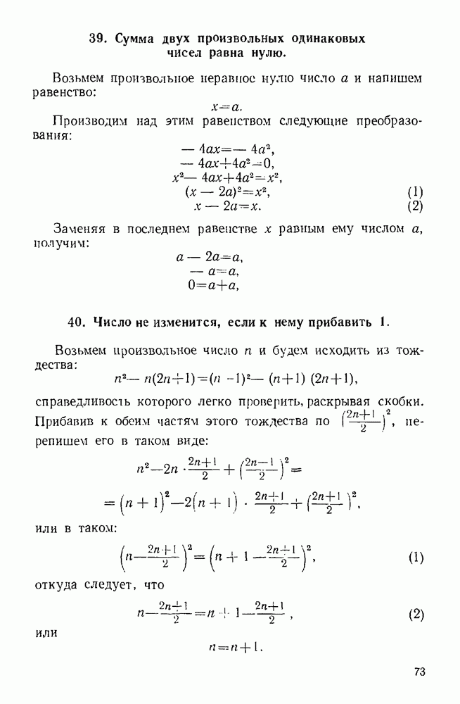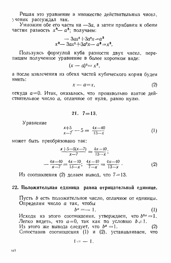 Итак, оказалось, что произвольно взятое действительное число а, отличное от нуля, равно нулю.