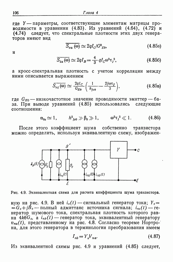 и из, можно вывести соотношения между током и напряжением для трех контуров рис. 9.6. Из этих соотношений находят проводимость сигнального контура (см. приложение 6) в виде
