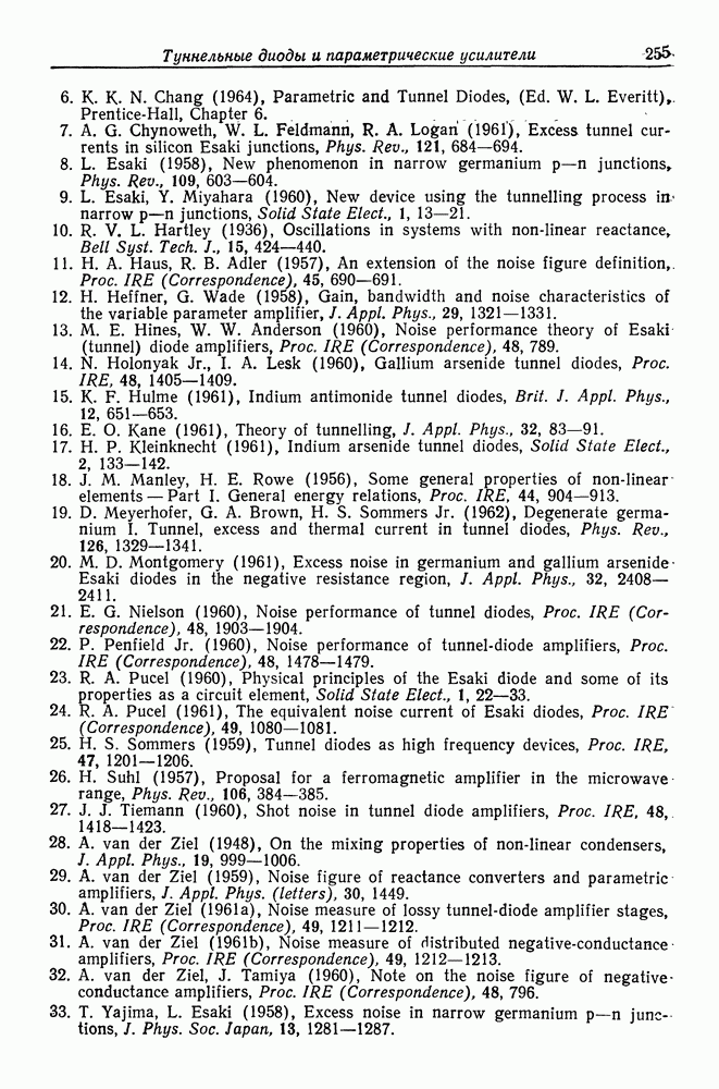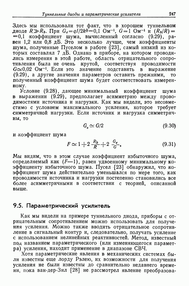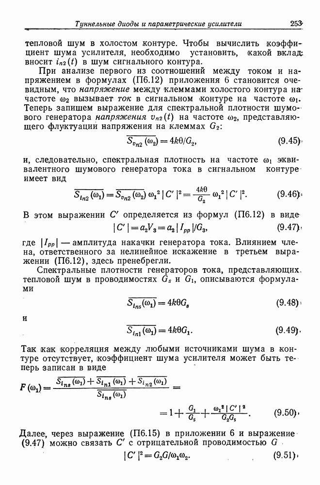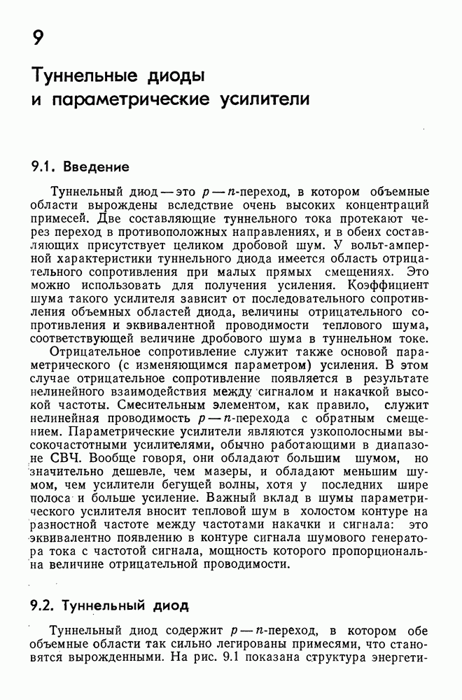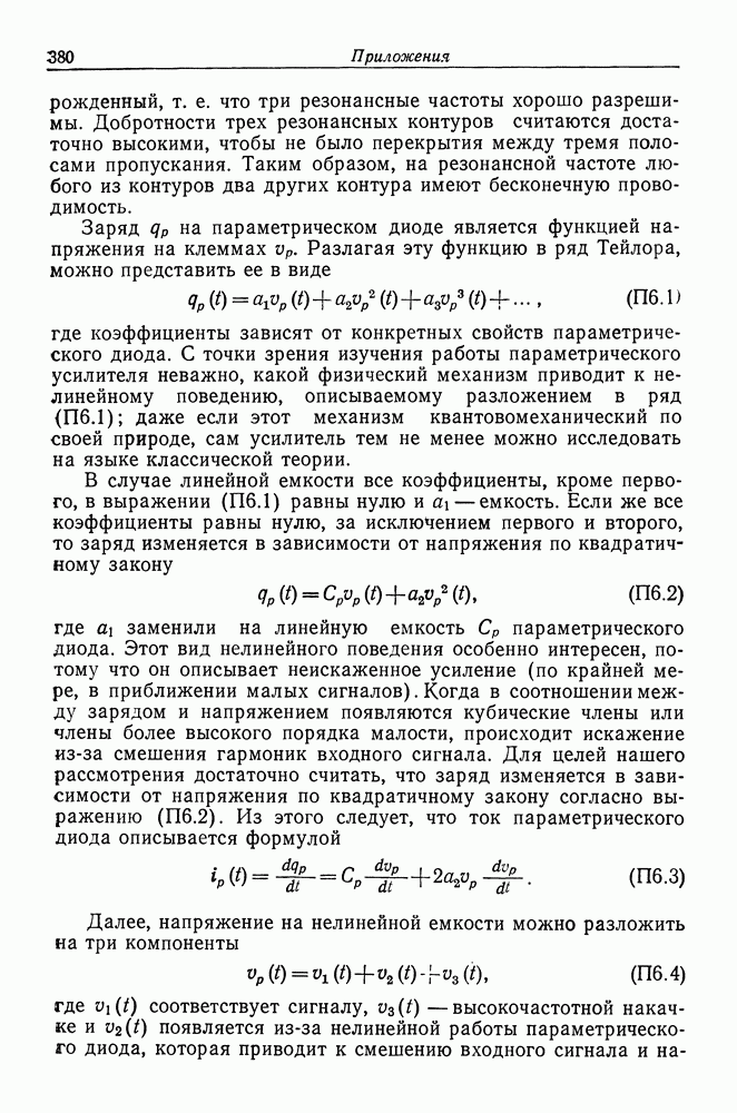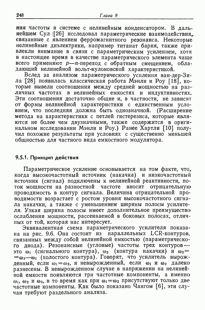 преобразования частоты в системе с нелинейным конденсатором. В дальнейшем Сул |[26] исследовал параметрические взаимодействия связанные с явлением ферромагнитного резонанса. Некоторые нелинейные диэлектрики, например титанат бария, также привлекли внимание в связи с параметрическим усилением, хотя в настоящее время в качестве параметрического элемента чаще всего применяют p-n-переход с обратным смещением, обладающий нелинейной вольт-кулоновской характеристикой.