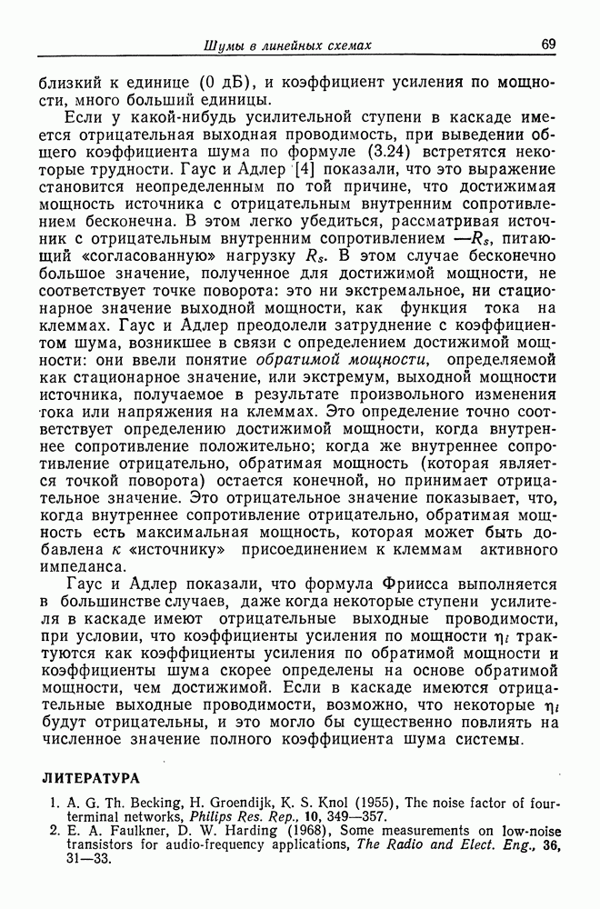 Вслед за анализом параметрического усиления ван-дер-Зила ![28] появилась классическая работа Мэнли и Роу [18], которые вывели соотношения между средней мощностью на различных частотах в нелинейных емкостях и индуктивностях. Эти соотношения достаточно общие и, в частности, не зависят от формы нелинейной характеристики с единственным условием, что последняя должна быть однозначной. (Расширения-метода на характеристики с петлей гистерезиса, которые являются не более чем двузначными, также содержится в оригинальном исследовании Мэнли и Роу.) Ранее Хартли [10] получил похожие результаты при условиях с существенно меньшей общностью для частного вида емкостного модулятора.
