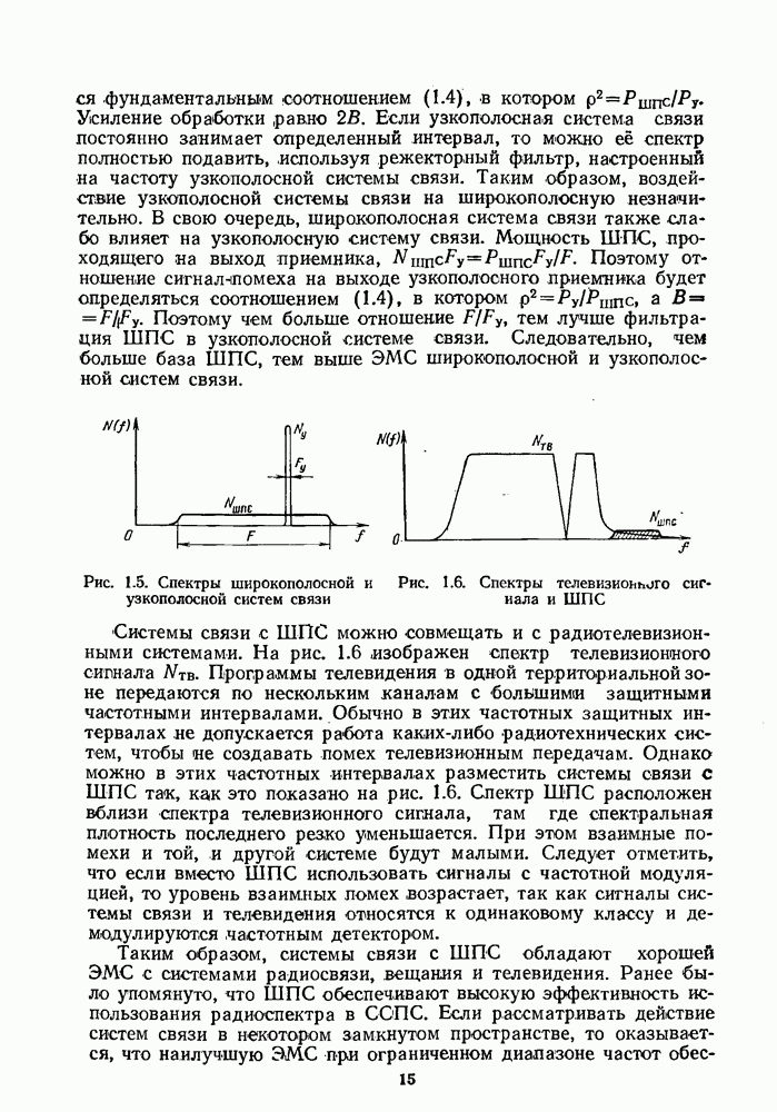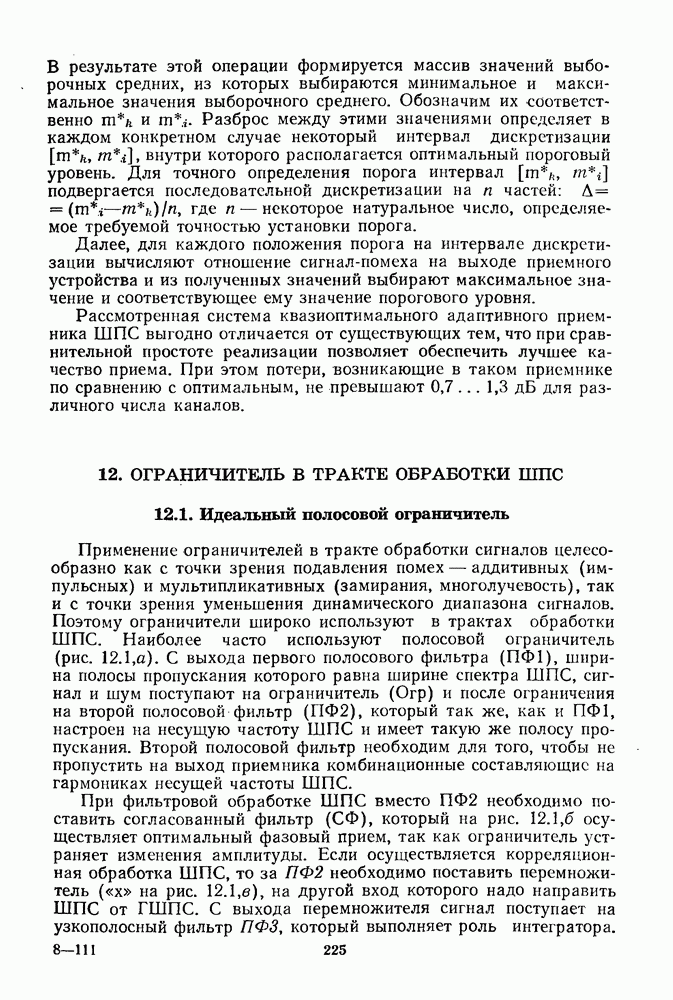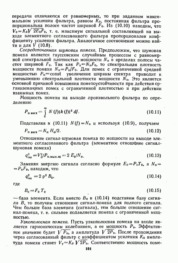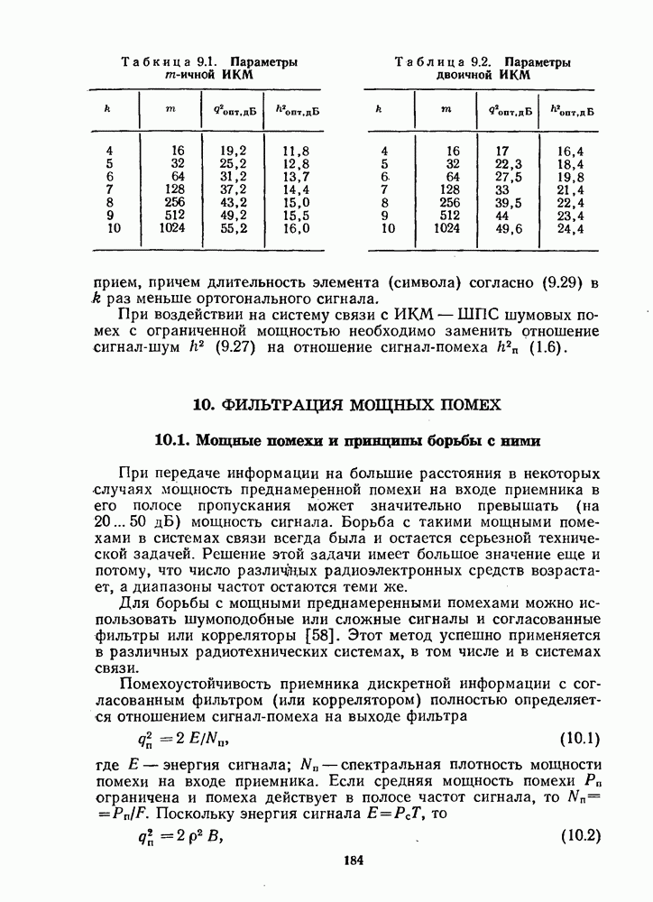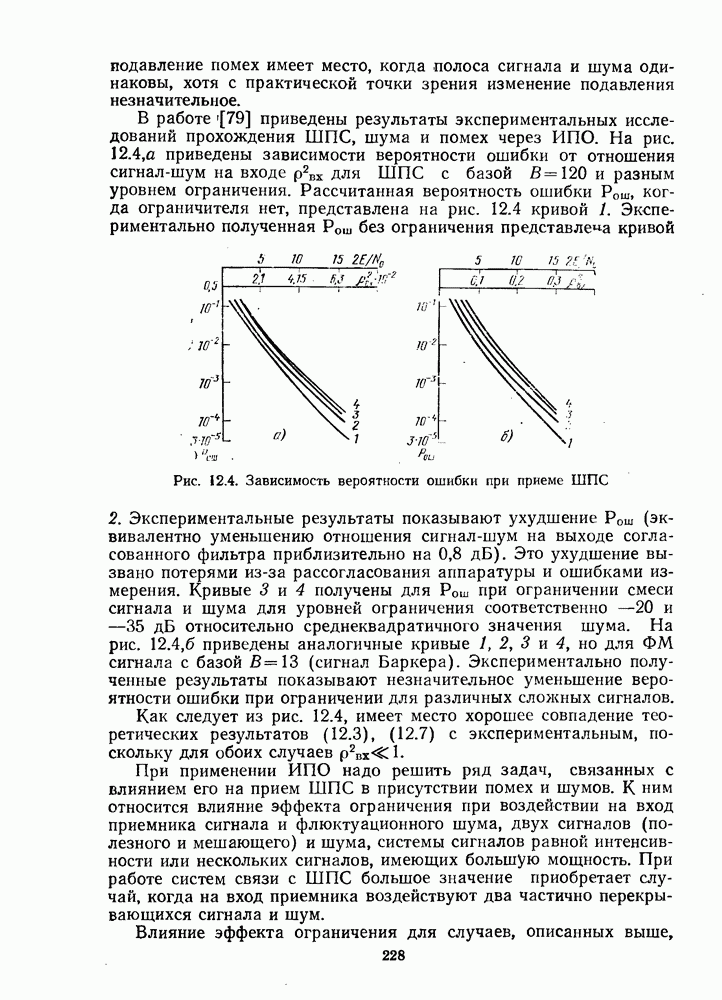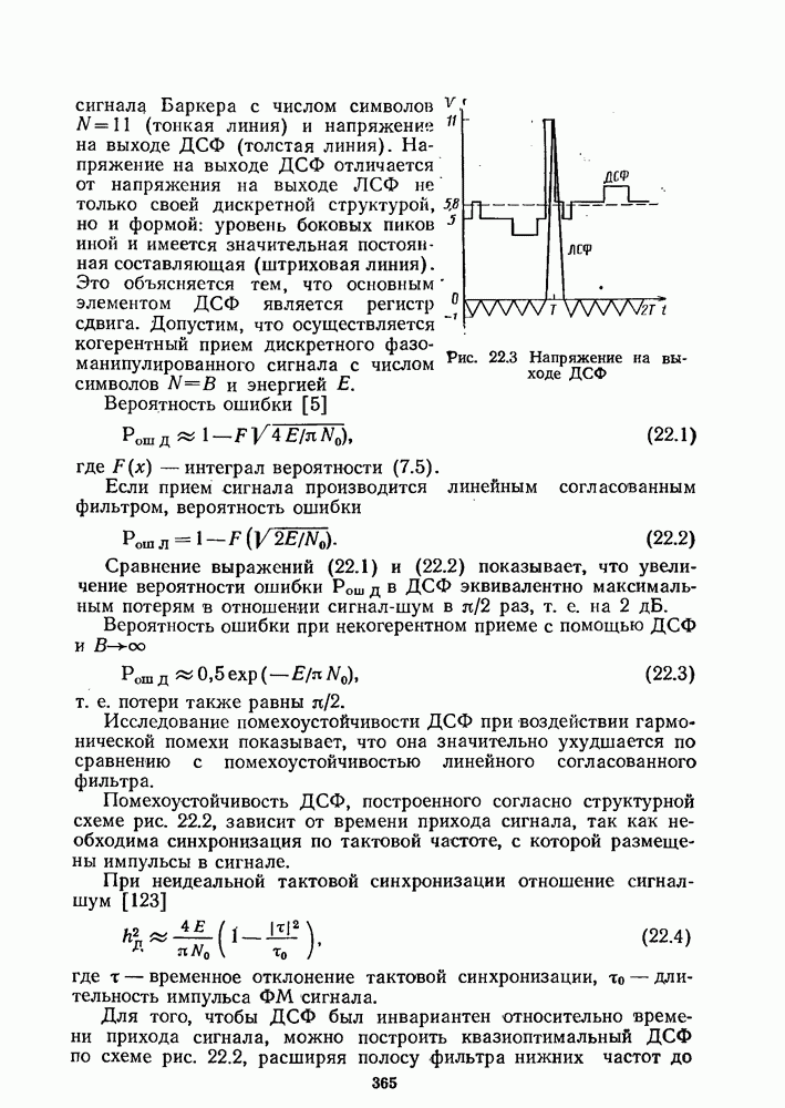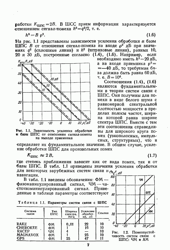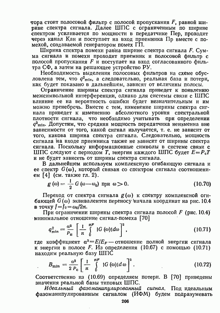 кривая 1 — зависимость, в которой применены оптимальные коды (7, 5, 1), (15, 11, 2), (31, 25, 3), (63, 53, 5). Как видим, применение оптимальных кодов позволяет получить существенный выигрыш в полосе частот по сравнению с аналогичной системой без кодирования. Данные табл. 8.1 показывают, что не всякий код уменьшает полосу частот. Использование кодов с низкими скоростями передачи требует расширения полосы частот и поэтому нецелесообразно в системах связи с ШПС. Вместе с тем необходимо отметить существование оптимальных кодов минимизирующих полосу частот и обеспечивающих выигрыш в полосе частот по сравнению с