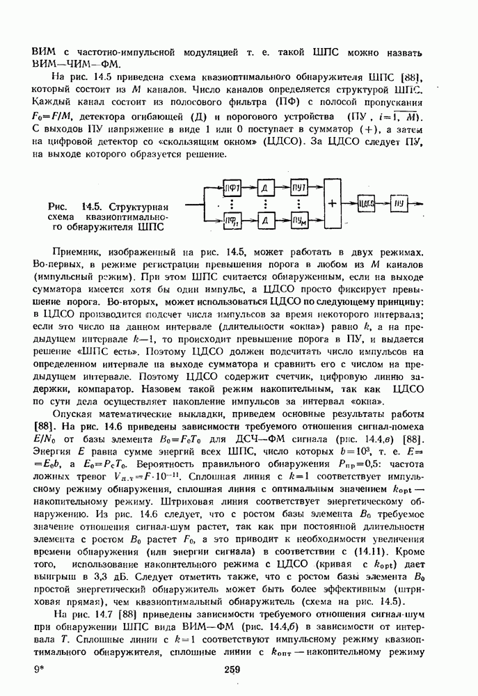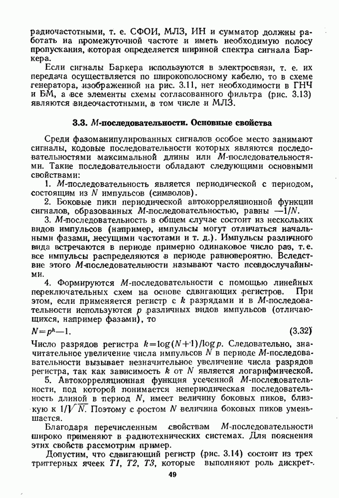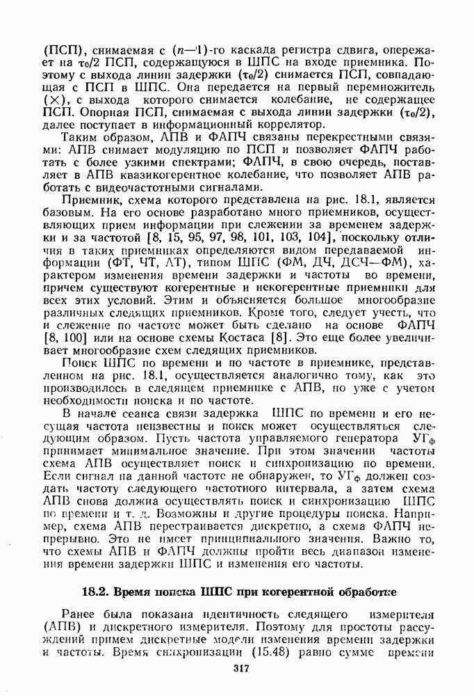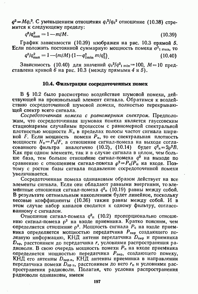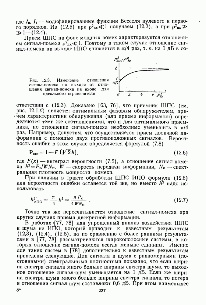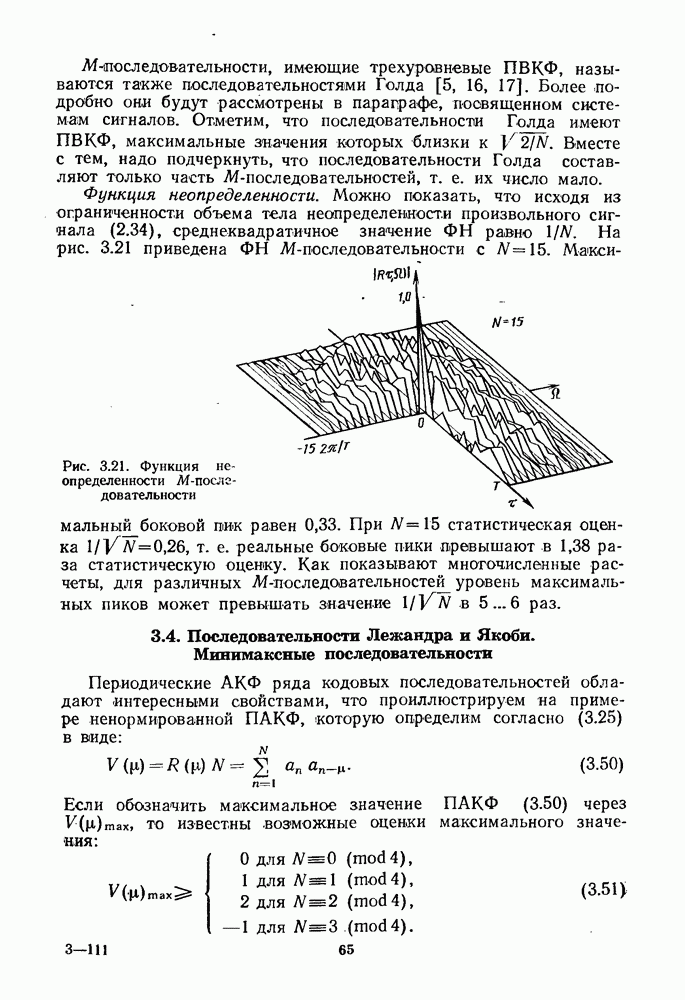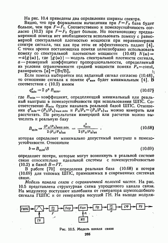 кривая 1 — зависимость, в которой применены оптимальные коды (7, 5, 1), (15, 11, 2), (31, 25, 3), (63, 53, 5). Как видим, применение оптимальных кодов позволяет получить существенный выигрыш в полосе частот по сравнению с аналогичной системой без кодирования. Данные табл. 8.1 показывают, что не всякий код уменьшает полосу частот. Использование кодов с низкими скоростями передачи требует расширения полосы частот и поэтому нецелесообразно в системах связи с ШПС. Вместе с тем необходимо отметить существование оптимальных кодов минимизирующих полосу частот и обеспечивающих выигрыш в полосе частот по сравнению с