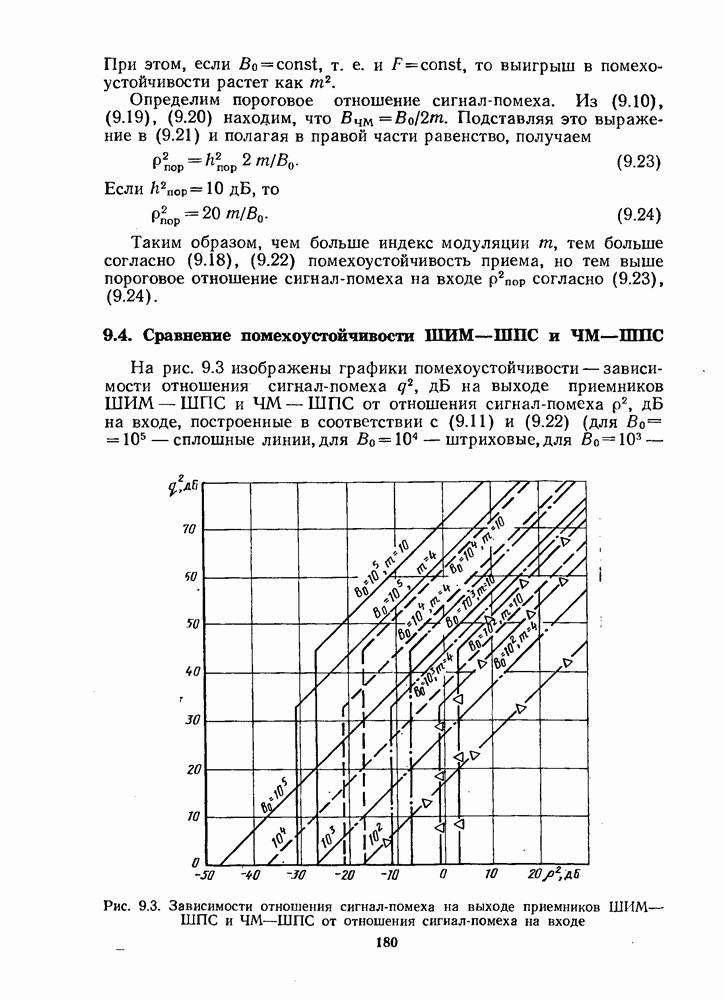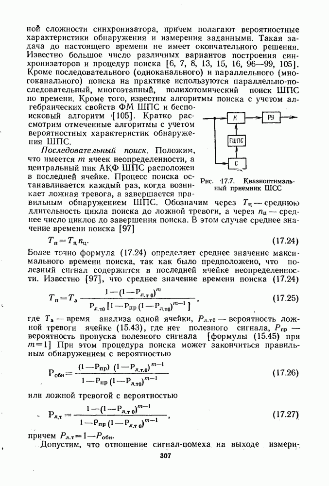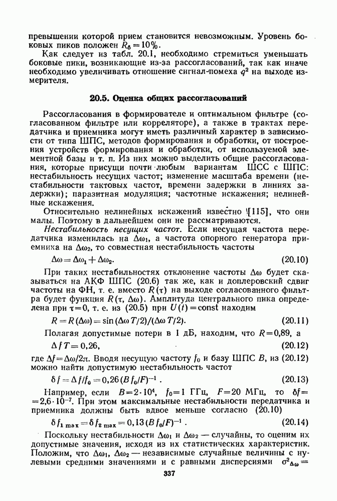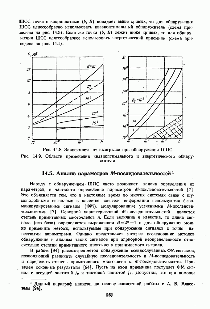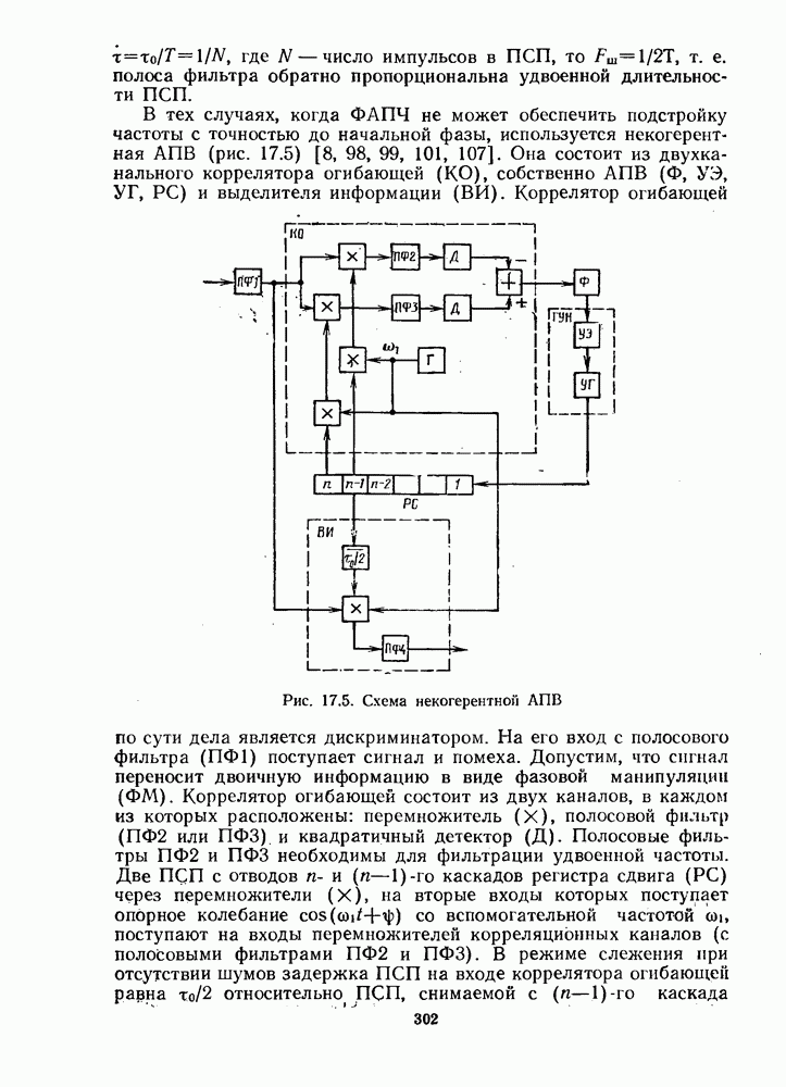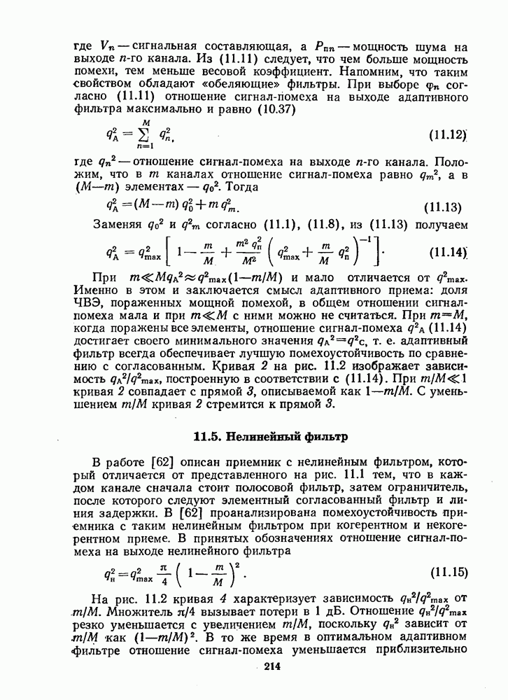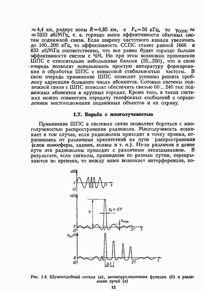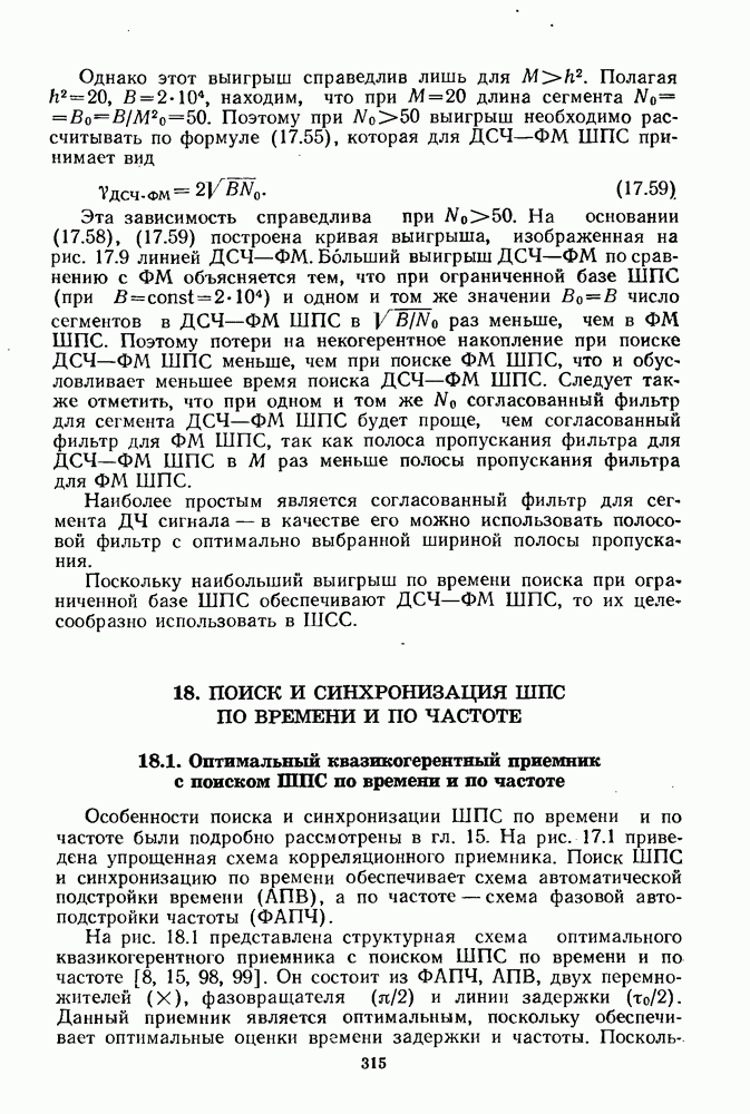 кривая 1 — зависимость, в которой применены оптимальные коды (7, 5, 1), (15, 11, 2), (31, 25, 3), (63, 53, 5). Как видим, применение оптимальных кодов позволяет получить существенный выигрыш в полосе частот по сравнению с аналогичной системой без кодирования. Данные табл. 8.1 показывают, что не всякий код уменьшает полосу частот. Использование кодов с низкими скоростями передачи требует расширения полосы частот и поэтому нецелесообразно в системах связи с ШПС. Вместе с тем необходимо отметить существование оптимальных кодов минимизирующих полосу частот и обеспечивающих выигрыш в полосе частот по сравнению с