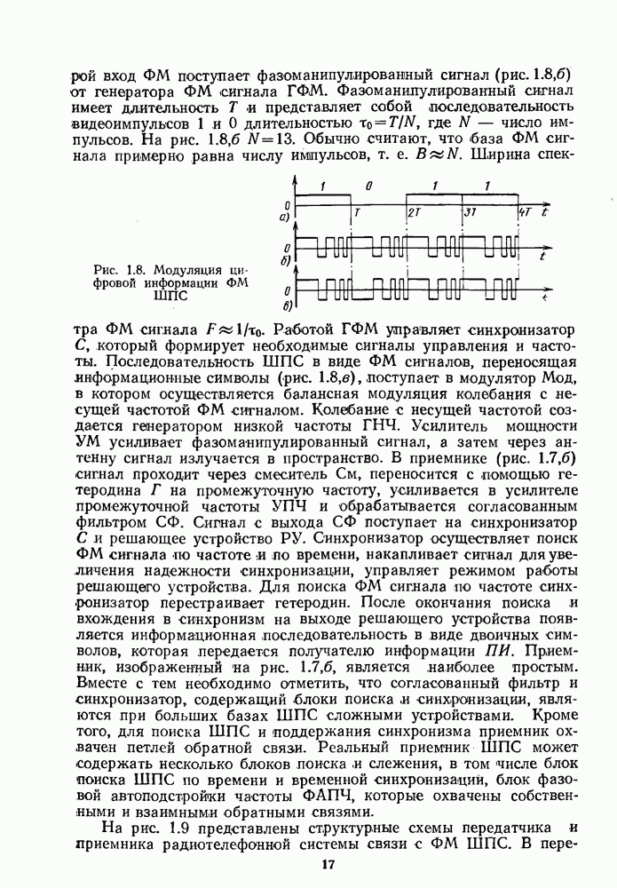-ичный символ непосредственно модулируется ортогональным ШПС и передается по каналу связи. Из (8.7)