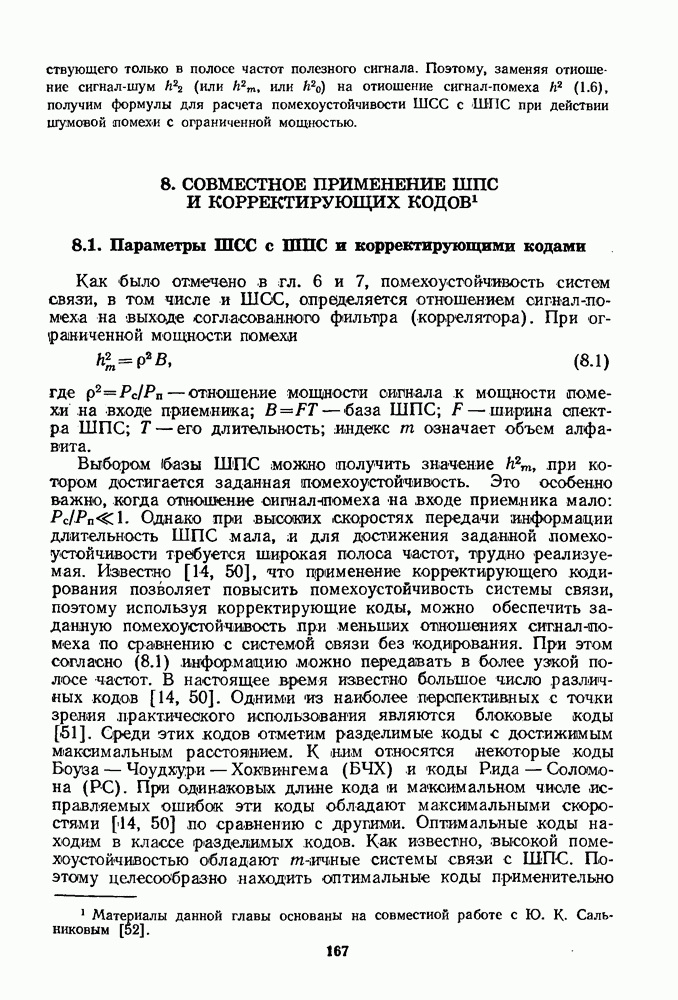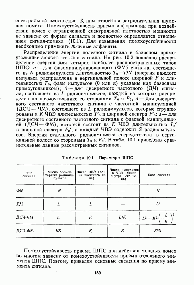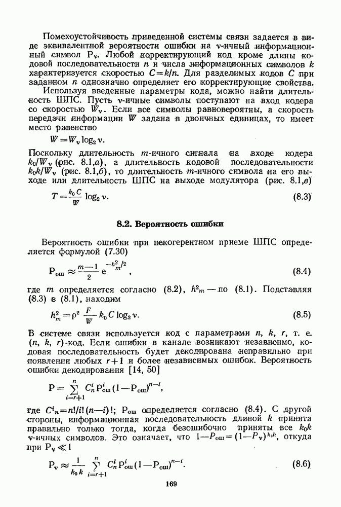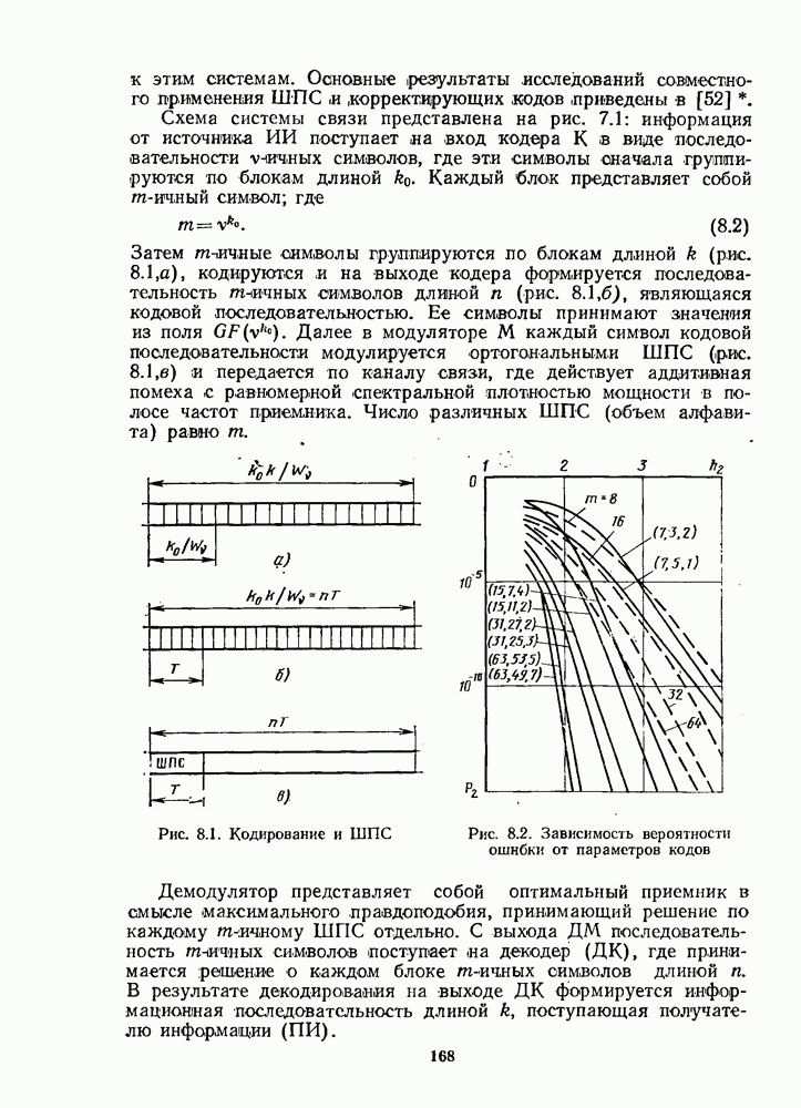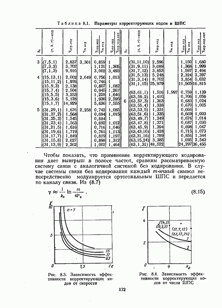 Таблица 8.1. (см. скан) Параметры корректирующих кодов и ШПС