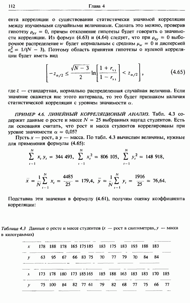 Пусть, как и в примере 4.6, х обозначает рост, а у — массу. Величины,