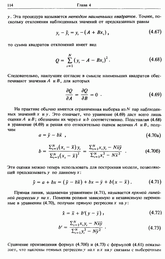 пар наблюденных значений и у. Это означает, что уравнение (4.69) даст всего лишь оценки