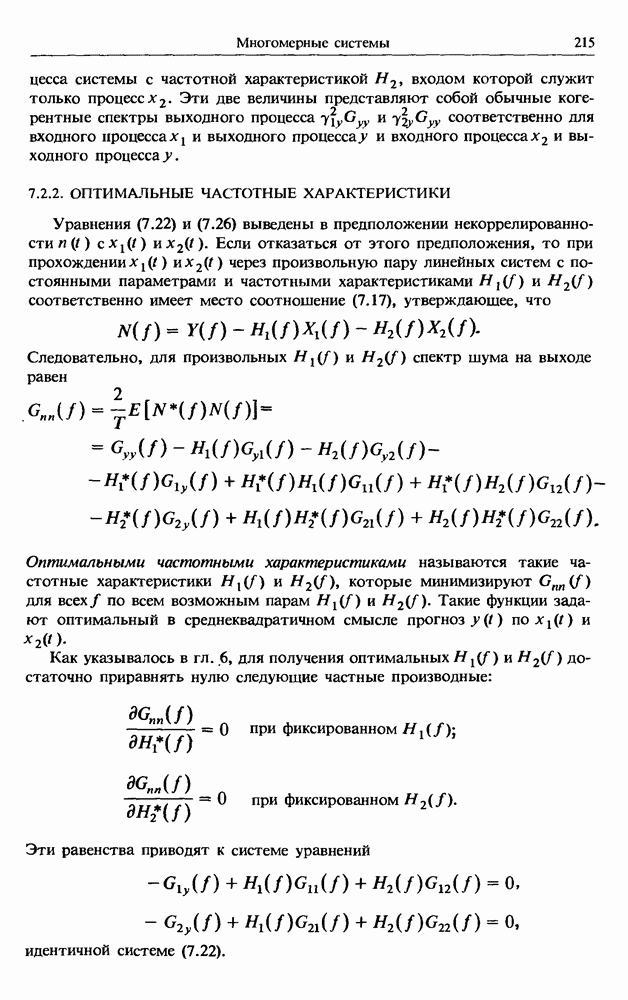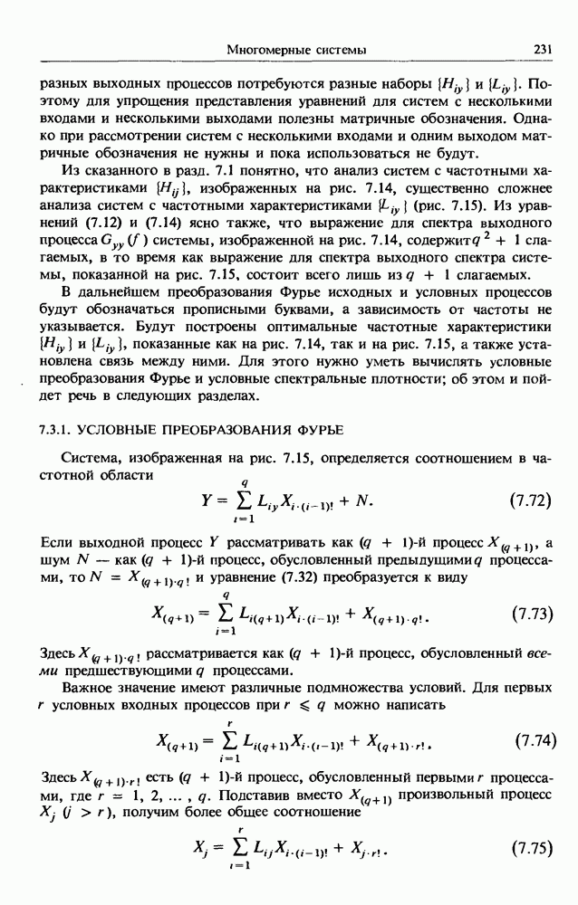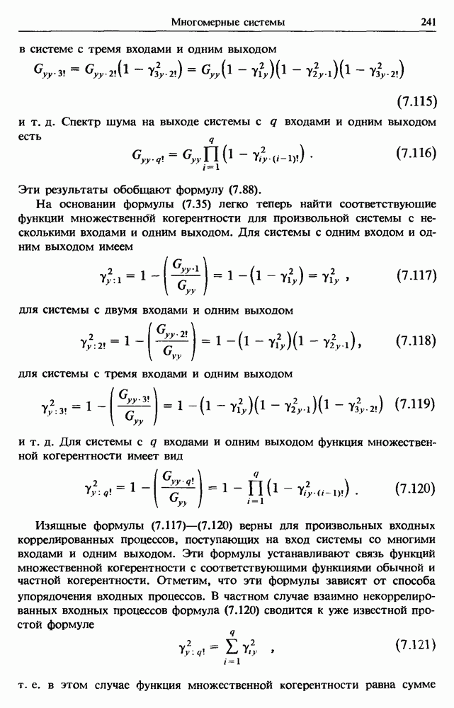 Описанные выше методы корреляционного и регрессионного анализа легко обобщаются на случай более двух случайных величин. Как указывалось ранее, такие обобщения играют фундаментальную роль в задачах анализа систем со многими входными и выходными процессами, изучаемых в