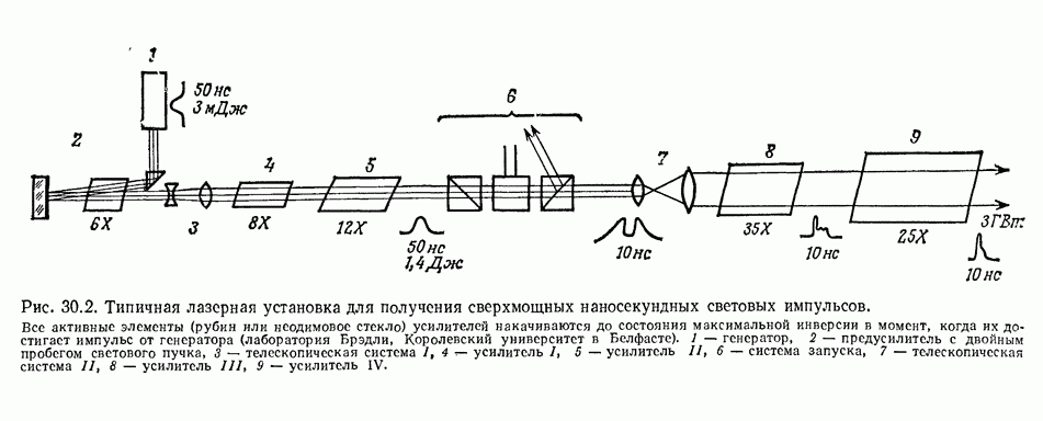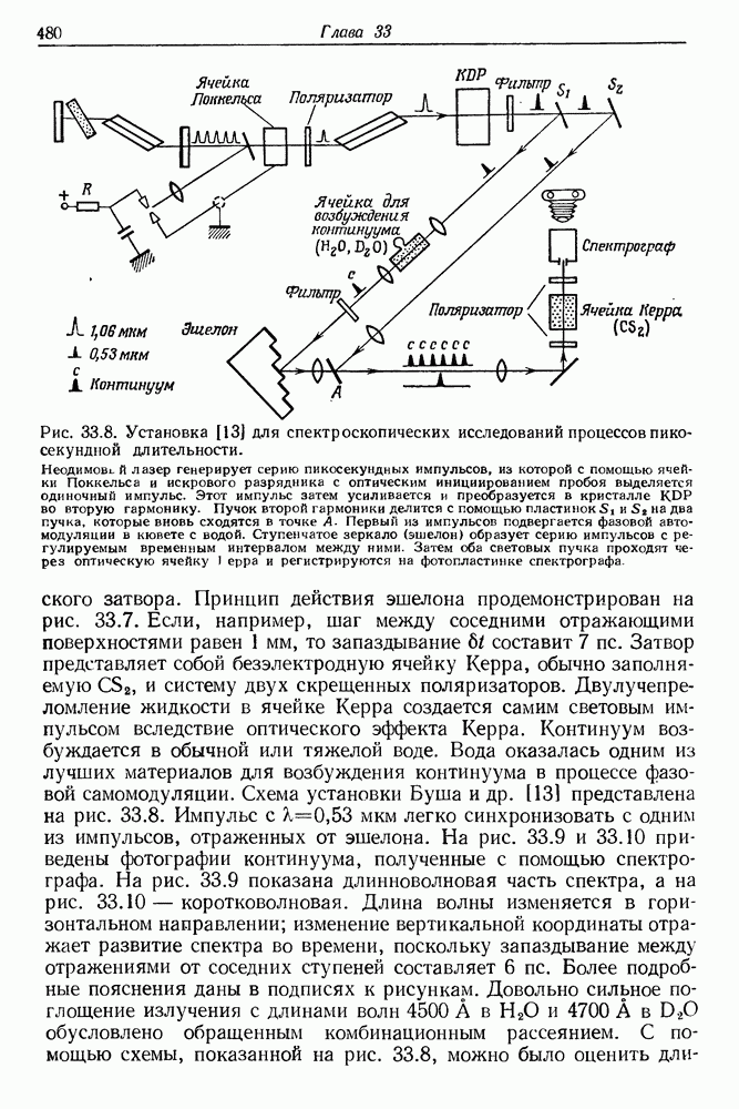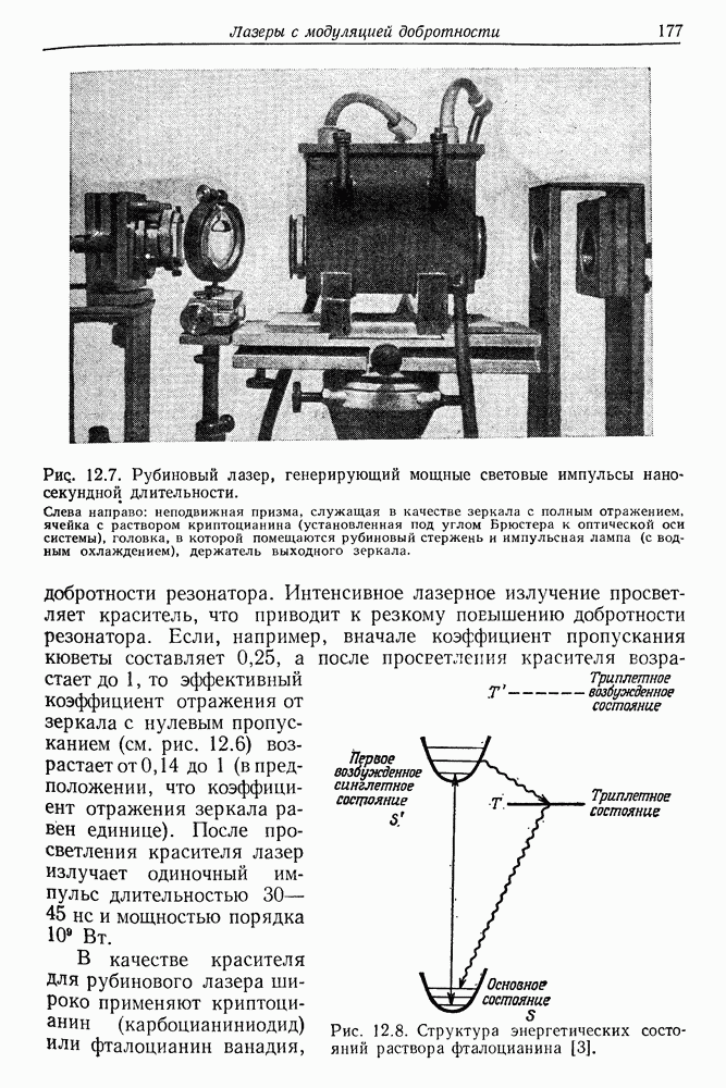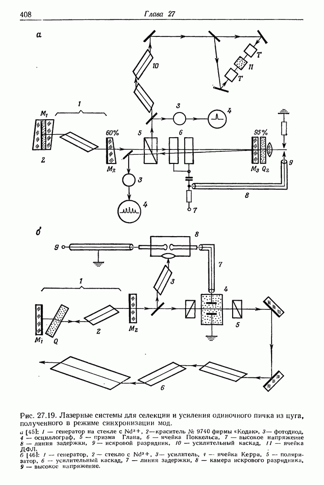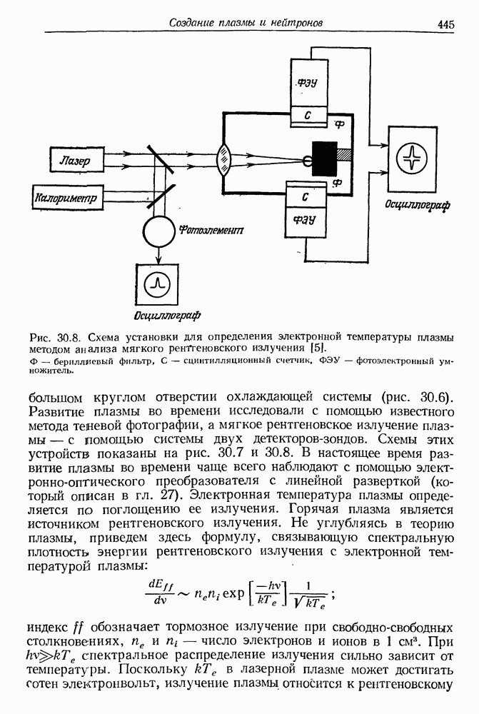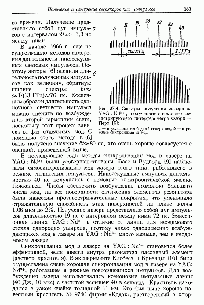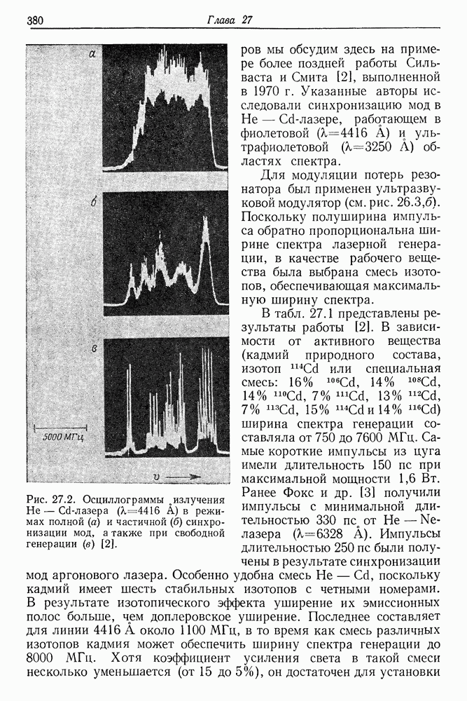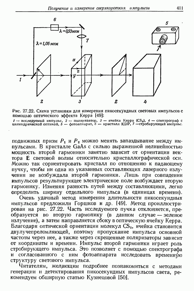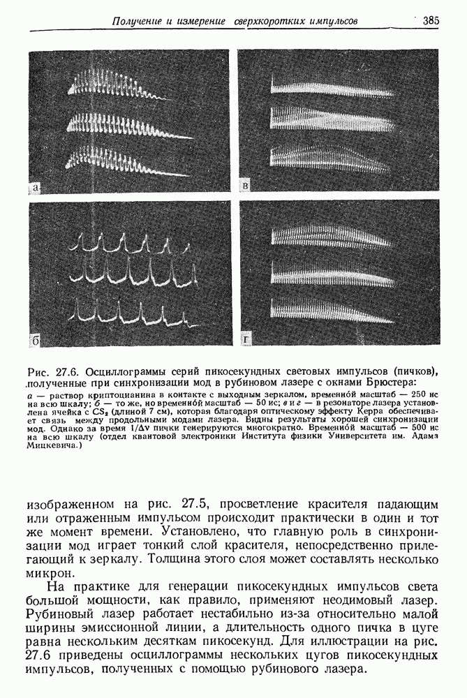 Рис. 27.14. Внешний вид камеры фирмы «Джон Хэдлэнд». Параметры камеры: скорость развертки от повышает разрешающую способность. Камера типа В СССР в группе Басова создан несколько иной тип сверхскоростной камеры с разверткой; камера получила название «пико-хрон» [43]. Поток электронов отклоняется аксиальным магнитным полем, а след на люминесцентном экране имеет форму спирали. Если камера регистрирует цуг пикосекундных лазерных импульсов, указанная спираль состоит из светящихся пятнышек. Ширина пятнышка является мерой длительности импульса, а расстояние между пятнышками характеризует периодичность появления импульсов.