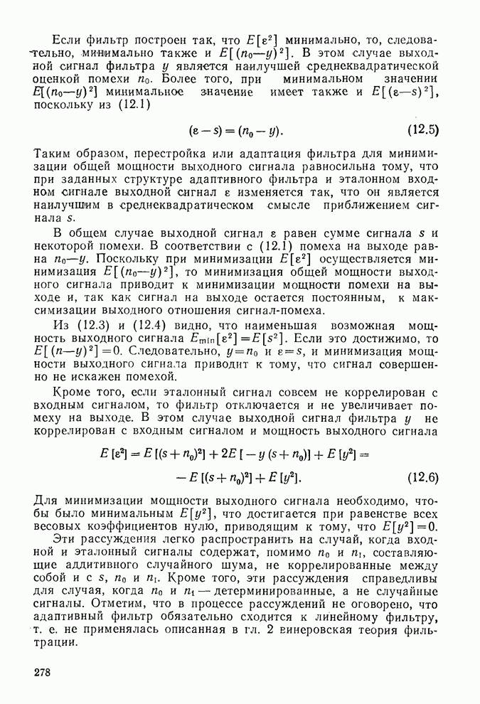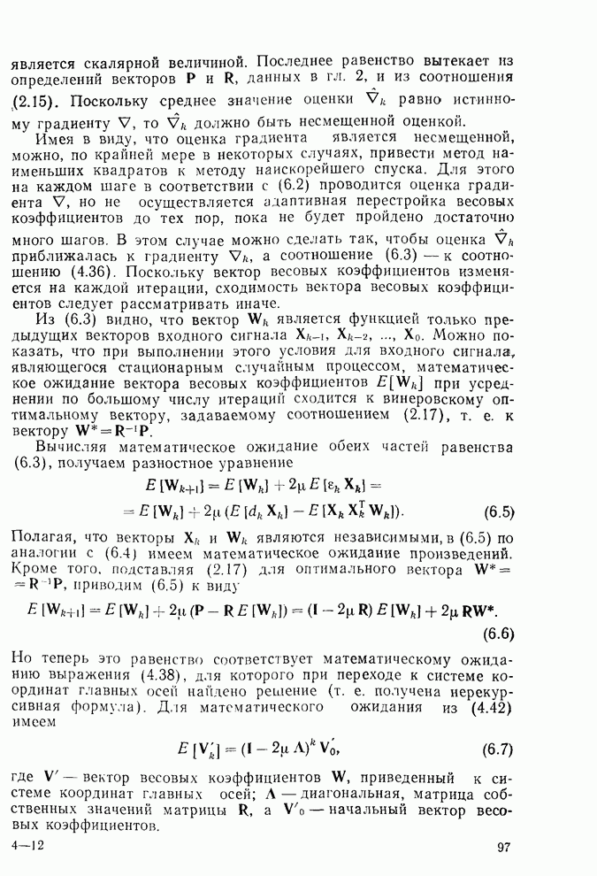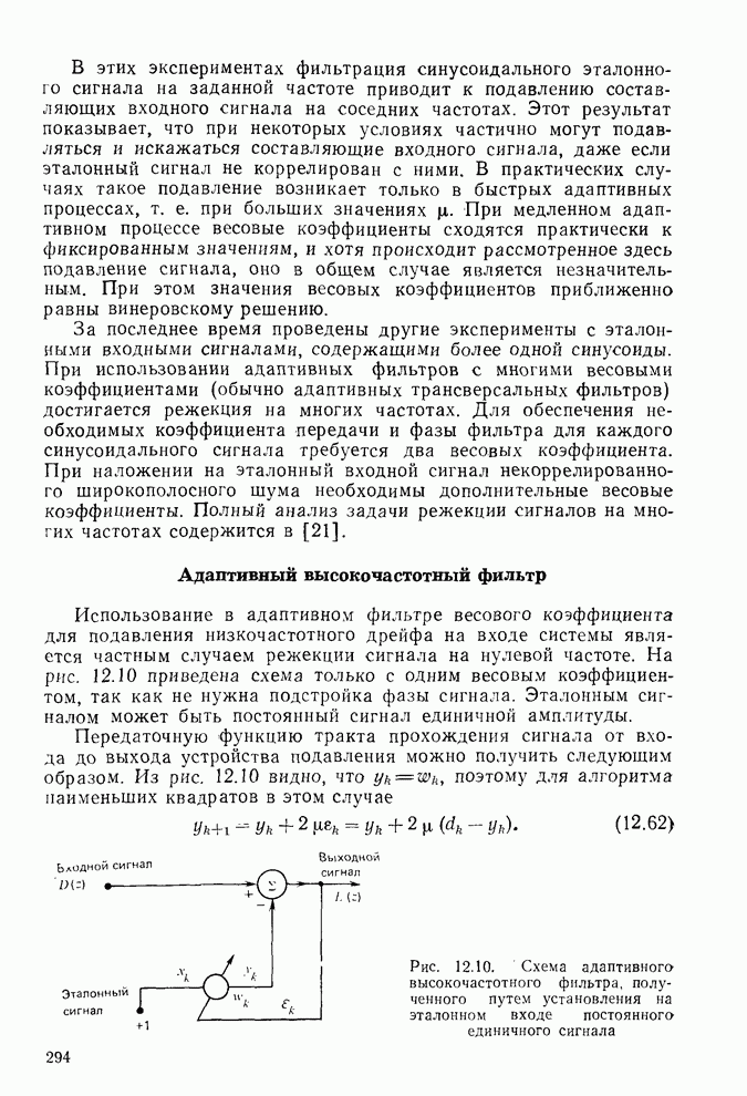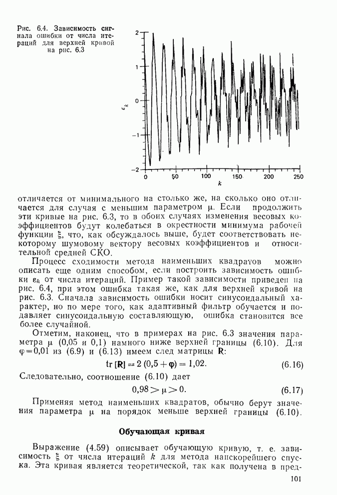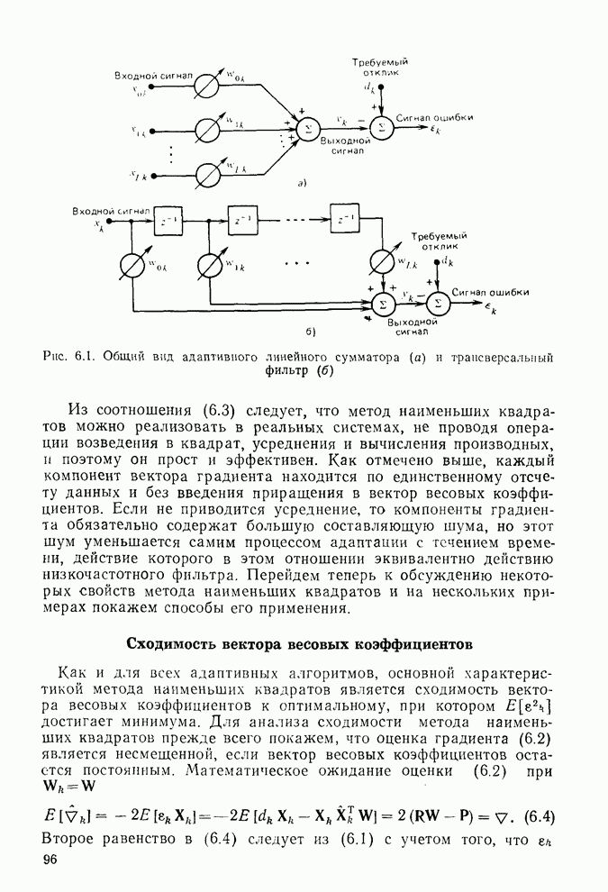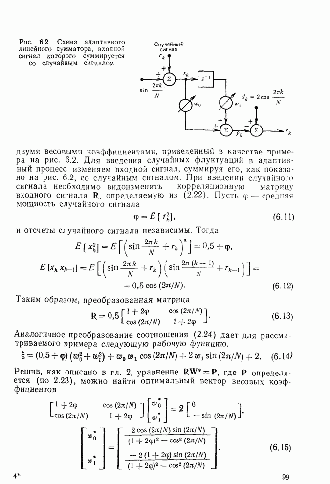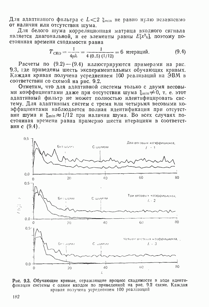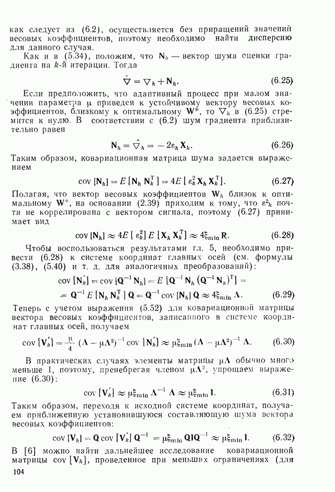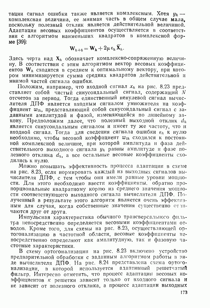 , а число N можно уменьшить, если на одной итерации брать меньше отсчетов сигнала ошибки. Ясно, что система с малым размером шага и малым количеством данных на одном шаге эквивалентна системе с большим размером шага и большим количеством данных на одном шаге. Как следует из (5.98), важным показателем является количество данных, которые обрабатываются за период, равный постоянной времени адаптации.