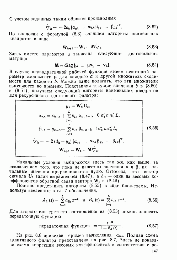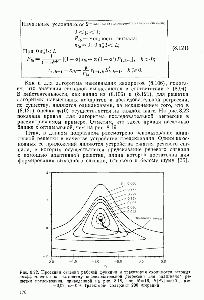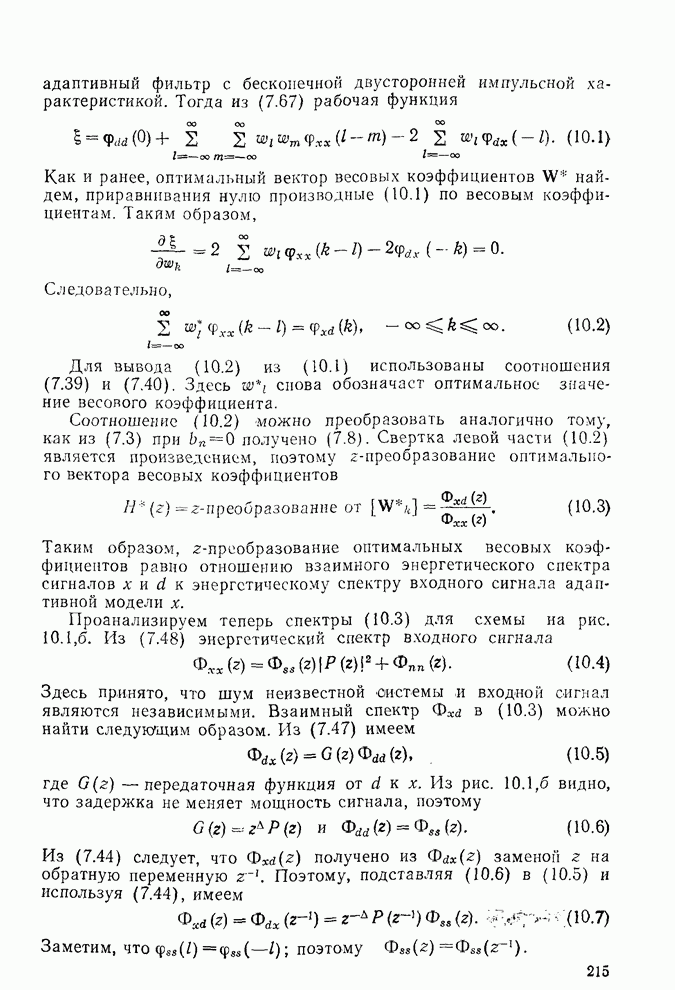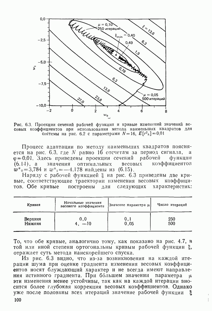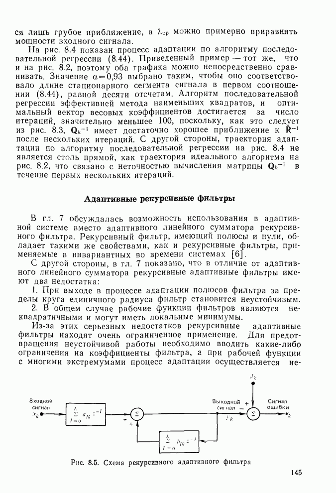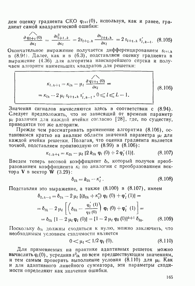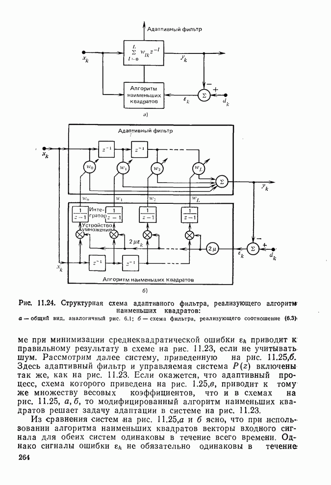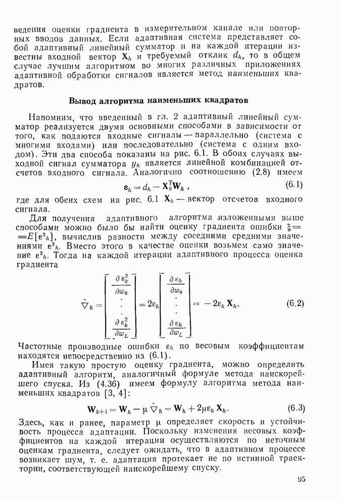 , а число N можно уменьшить, если на одной итерации брать меньше отсчетов сигнала ошибки. Ясно, что система с малым размером шага и малым количеством данных на одном шаге эквивалентна системе с большим размером шага и большим количеством данных на одном шаге. Как следует из (5.98), важным показателем является количество данных, которые обрабатываются за период, равный постоянной времени адаптации.
