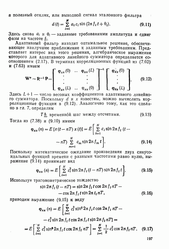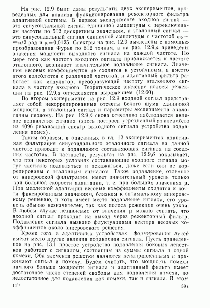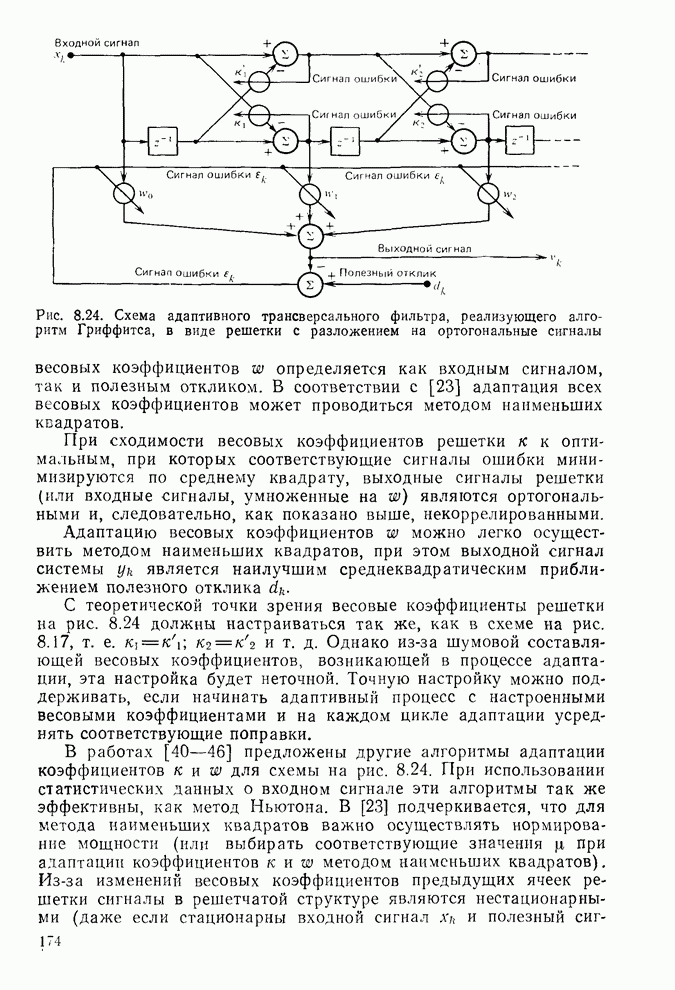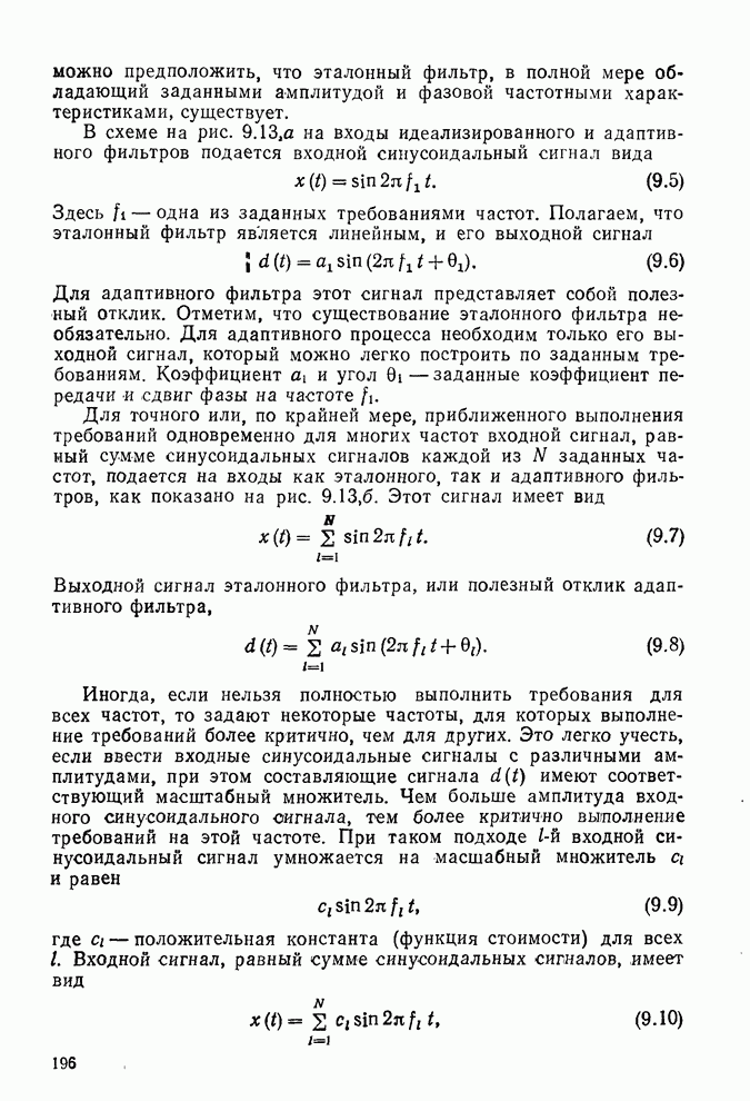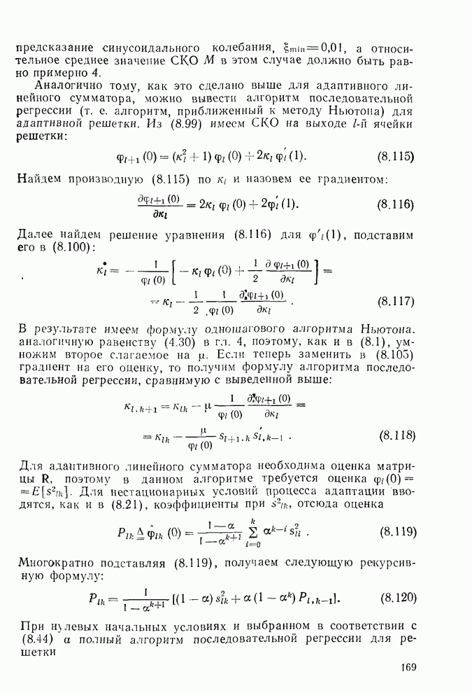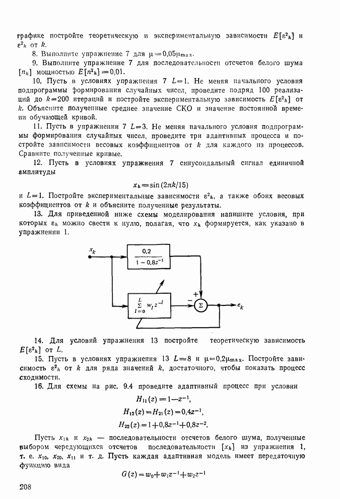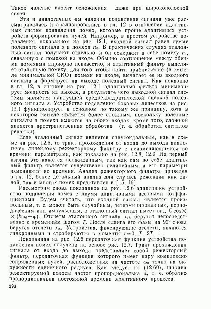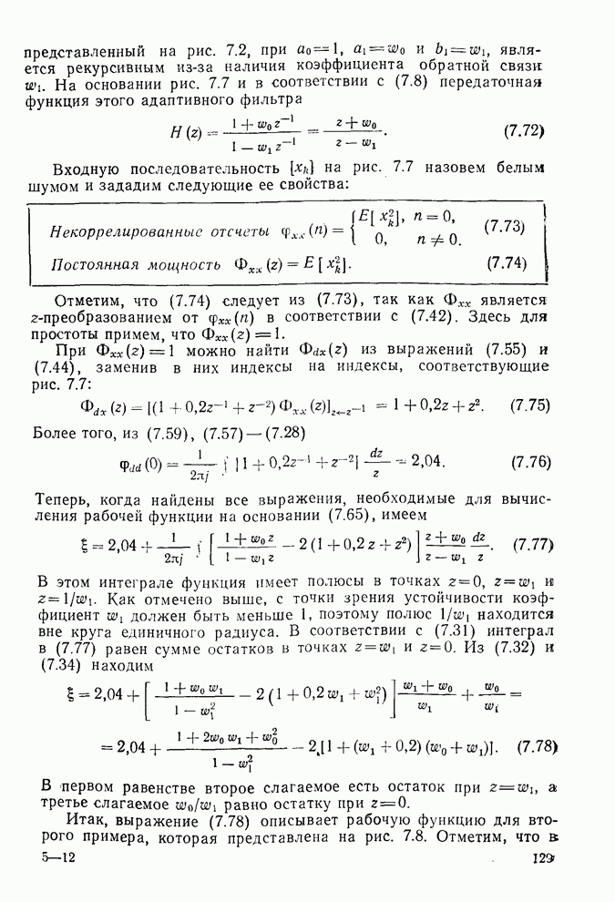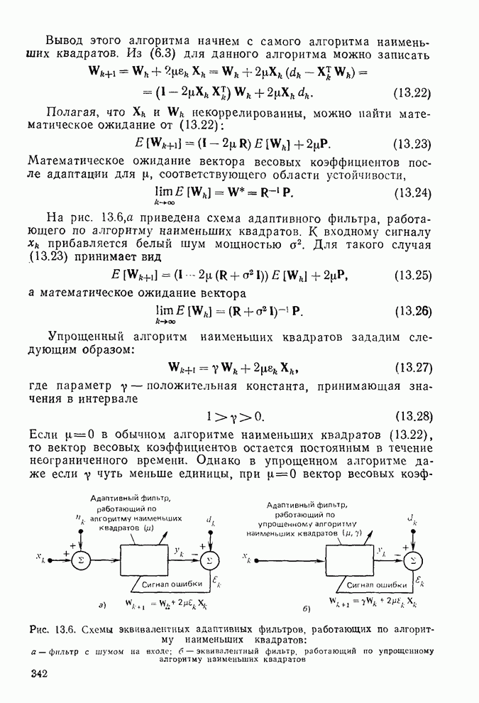 , а число N можно уменьшить, если на одной итерации брать меньше отсчетов сигнала ошибки. Ясно, что система с малым размером шага и малым количеством данных на одном шаге эквивалентна системе с большим размером шага и большим количеством данных на одном шаге. Как следует из (5.98), важным показателем является количество данных, которые обрабатываются за период, равный постоянной времени адаптации.