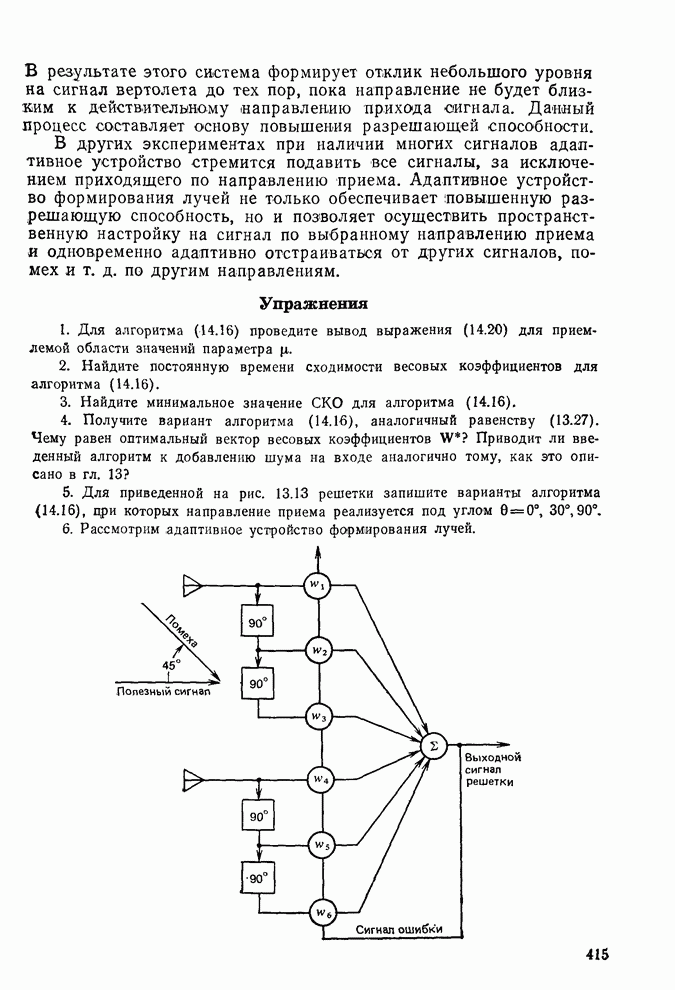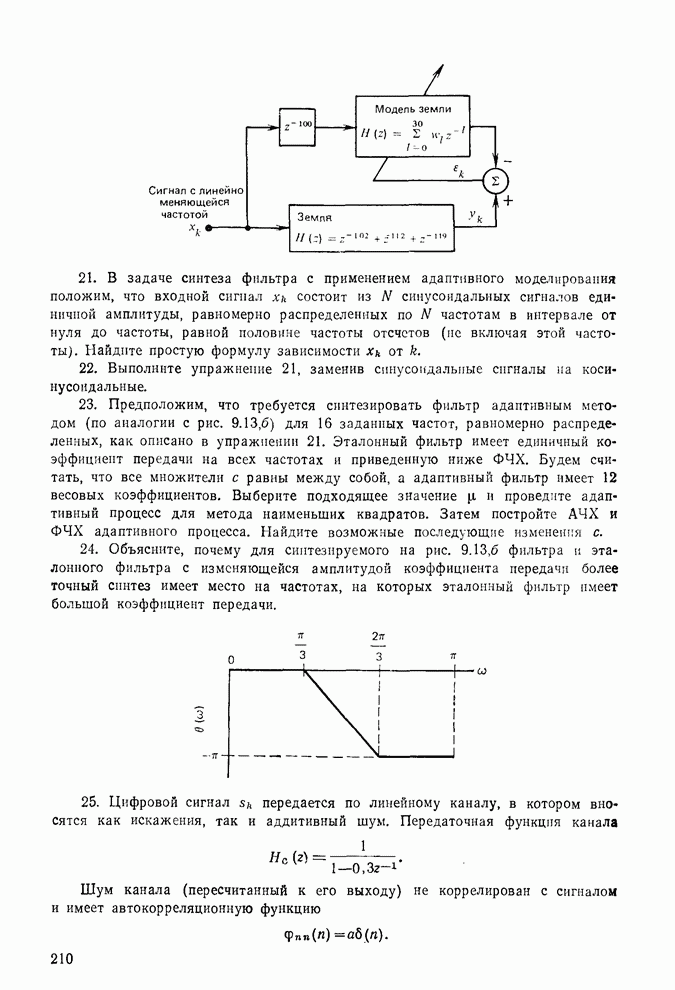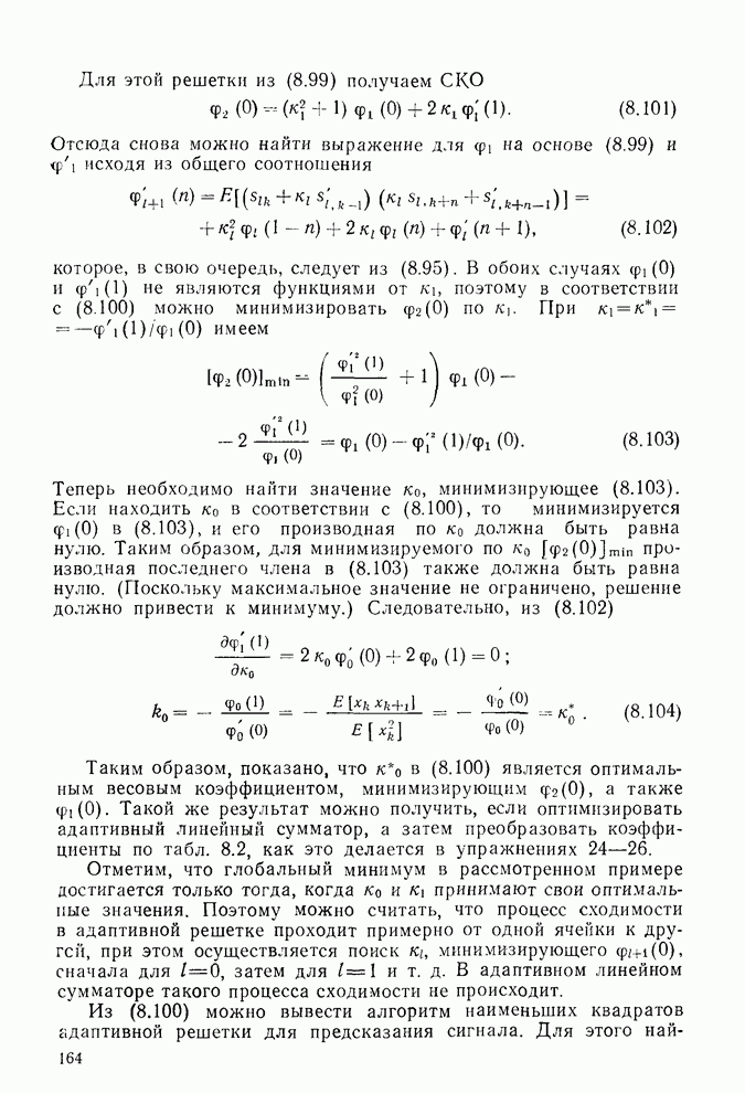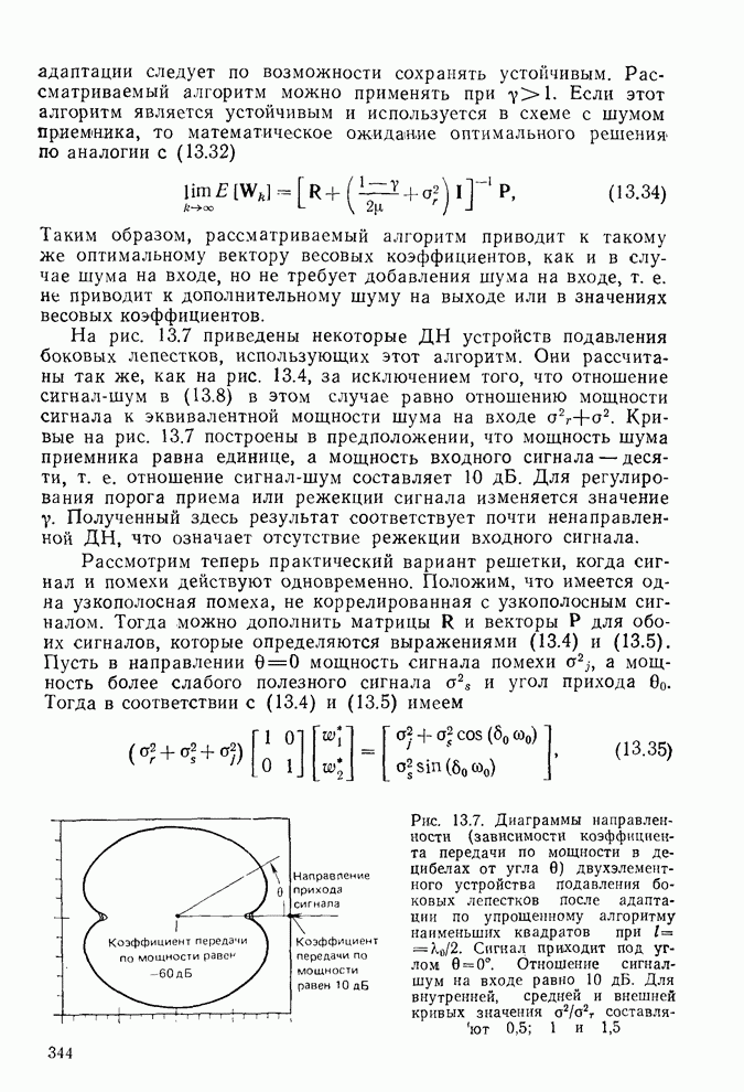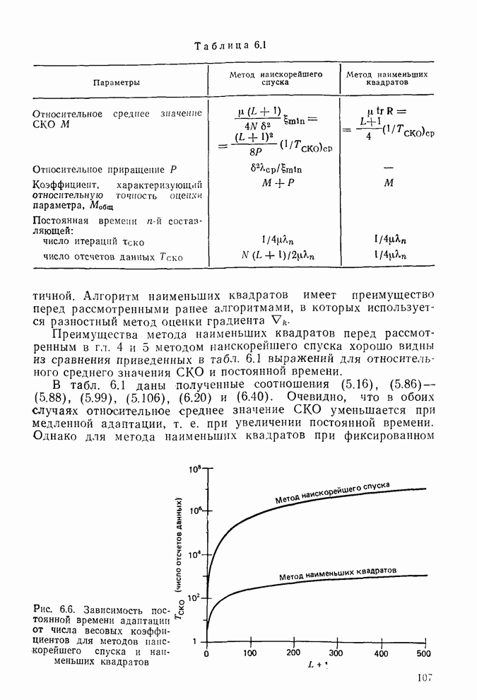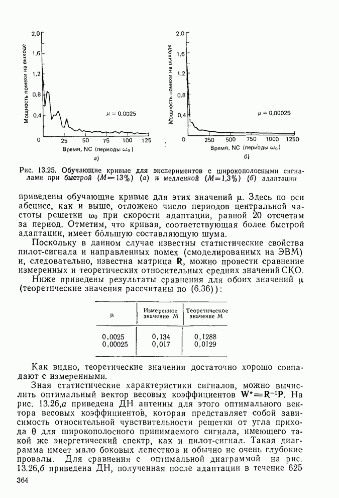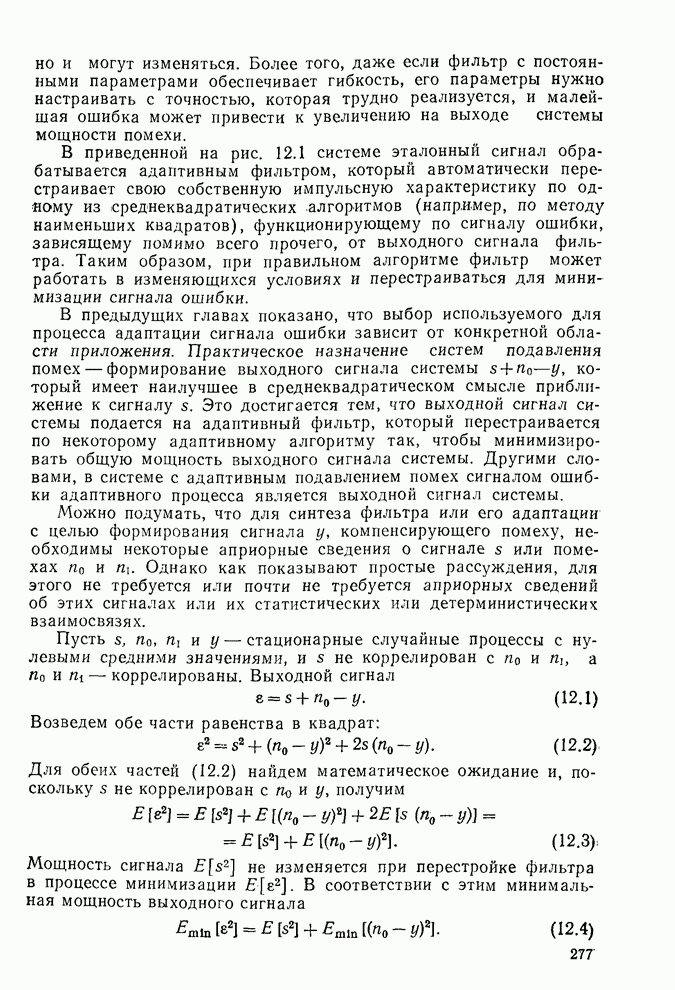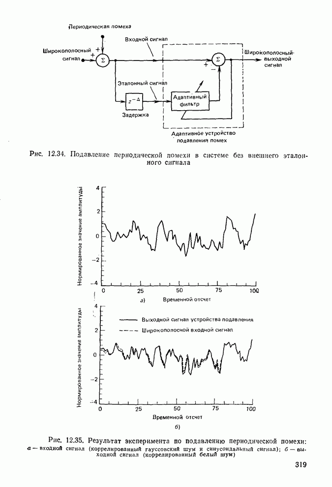 , а число N можно уменьшить, если на одной итерации брать меньше отсчетов сигнала ошибки. Ясно, что система с малым размером шага и малым количеством данных на одном шаге эквивалентна системе с большим размером шага и большим количеством данных на одном шаге. Как следует из (5.98), важным показателем является количество данных, которые обрабатываются за период, равный постоянной времени адаптации.