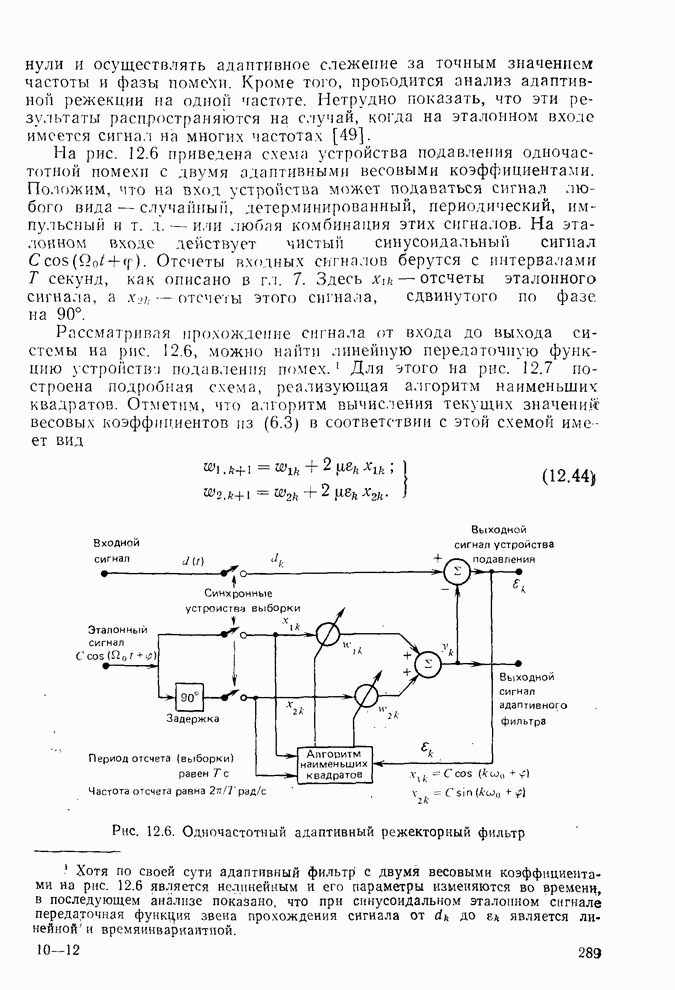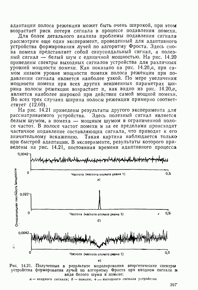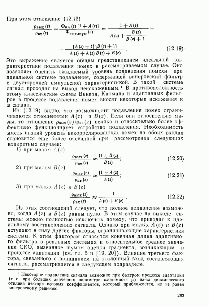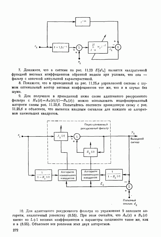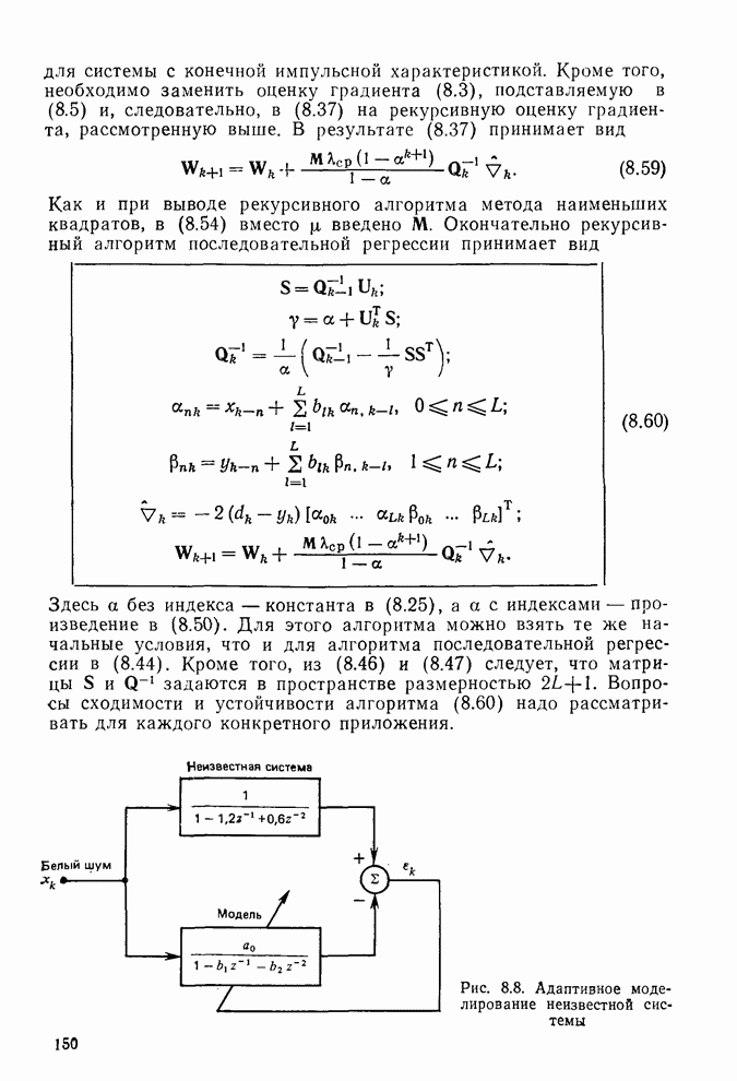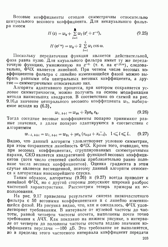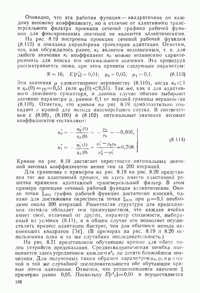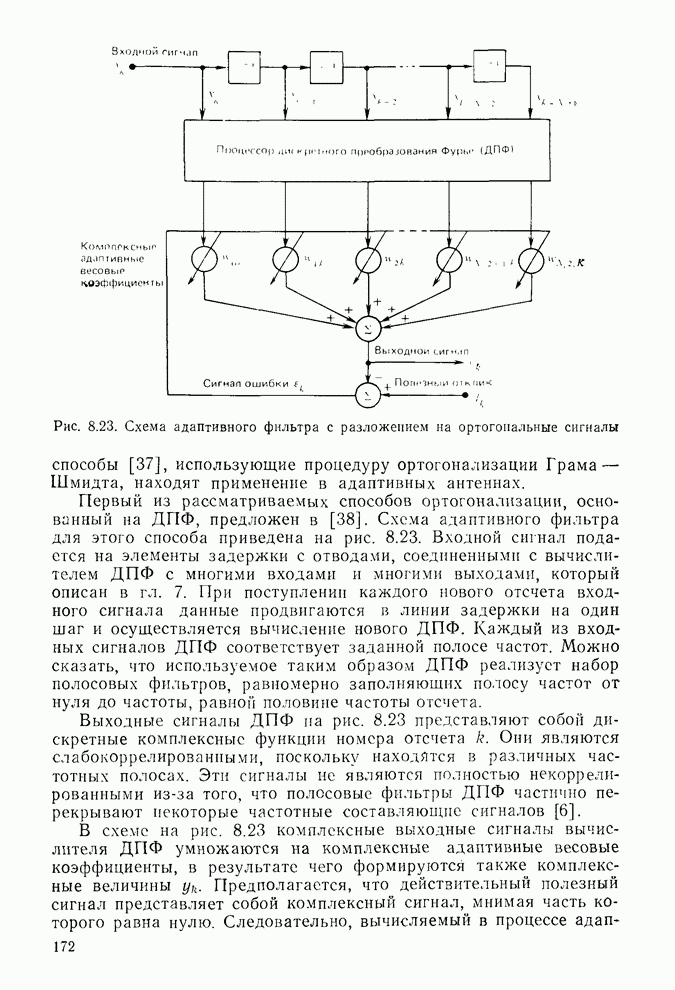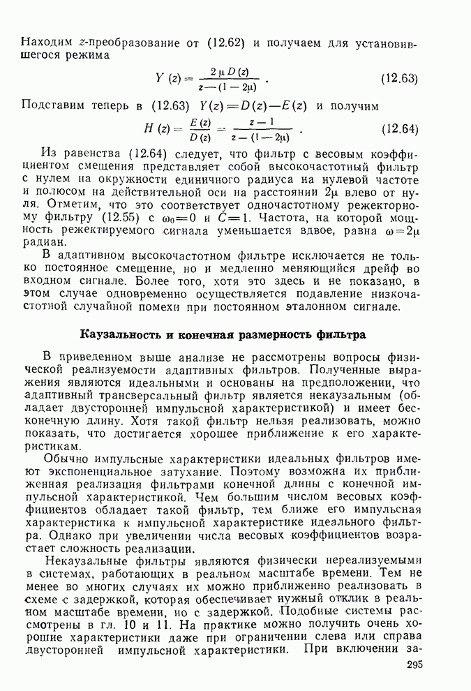 , а число N можно уменьшить, если на одной итерации брать меньше отсчетов сигнала ошибки. Ясно, что система с малым размером шага и малым количеством данных на одном шаге эквивалентна системе с большим размером шага и большим количеством данных на одном шаге. Как следует из (5.98), важным показателем является количество данных, которые обрабатываются за период, равный постоянной времени адаптации.