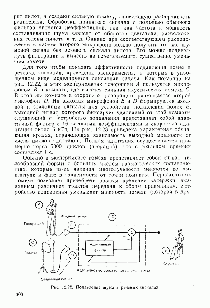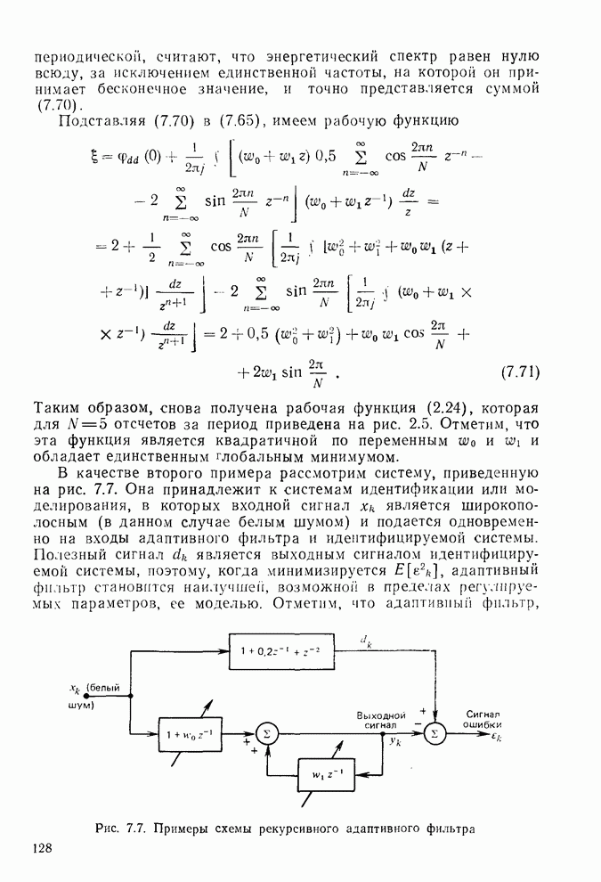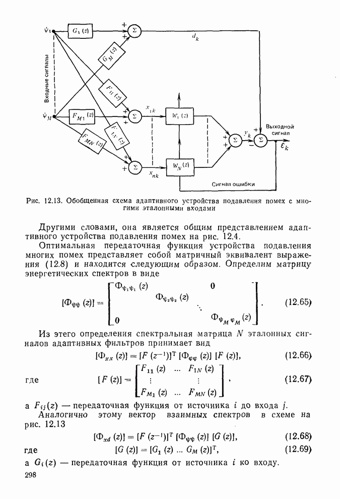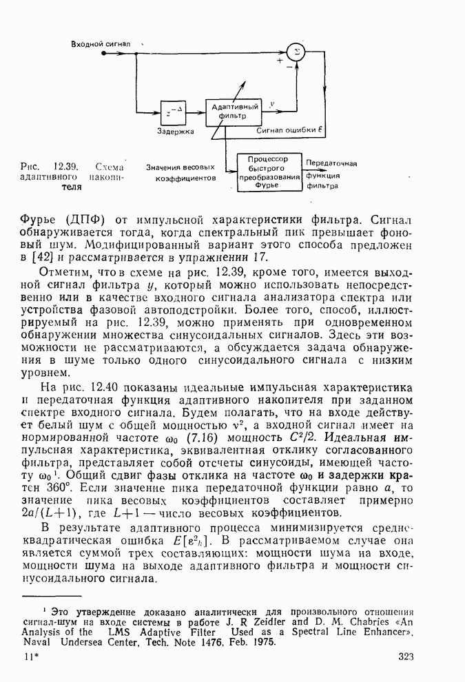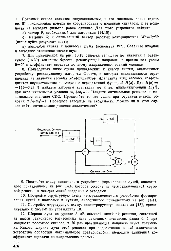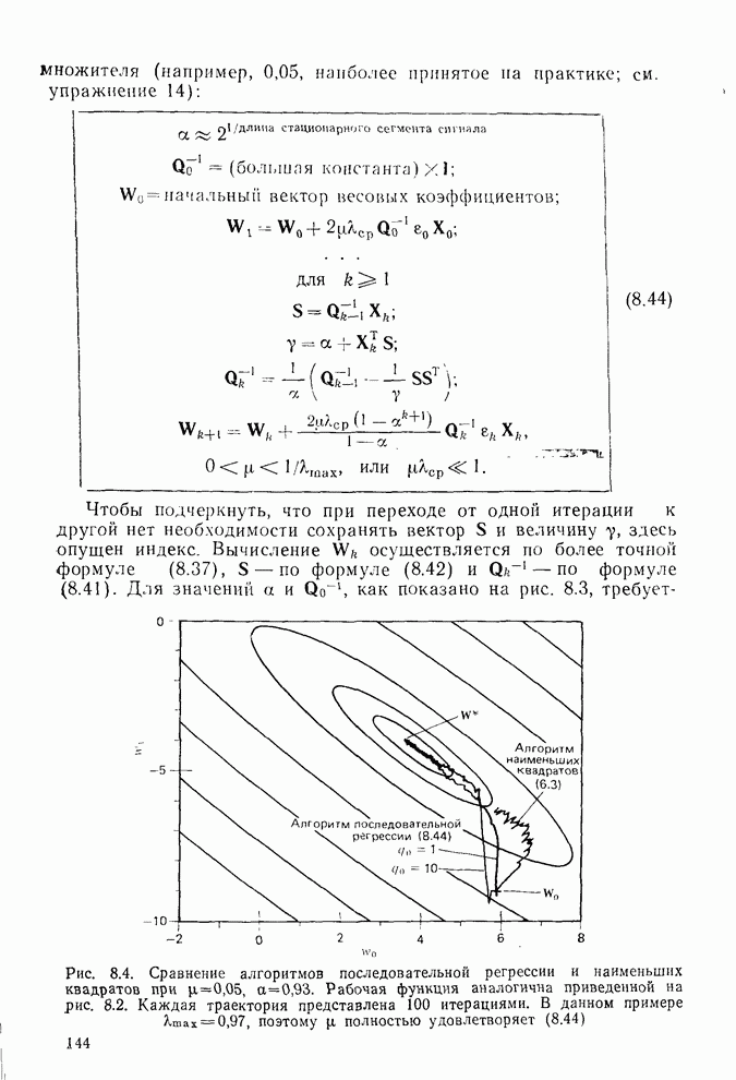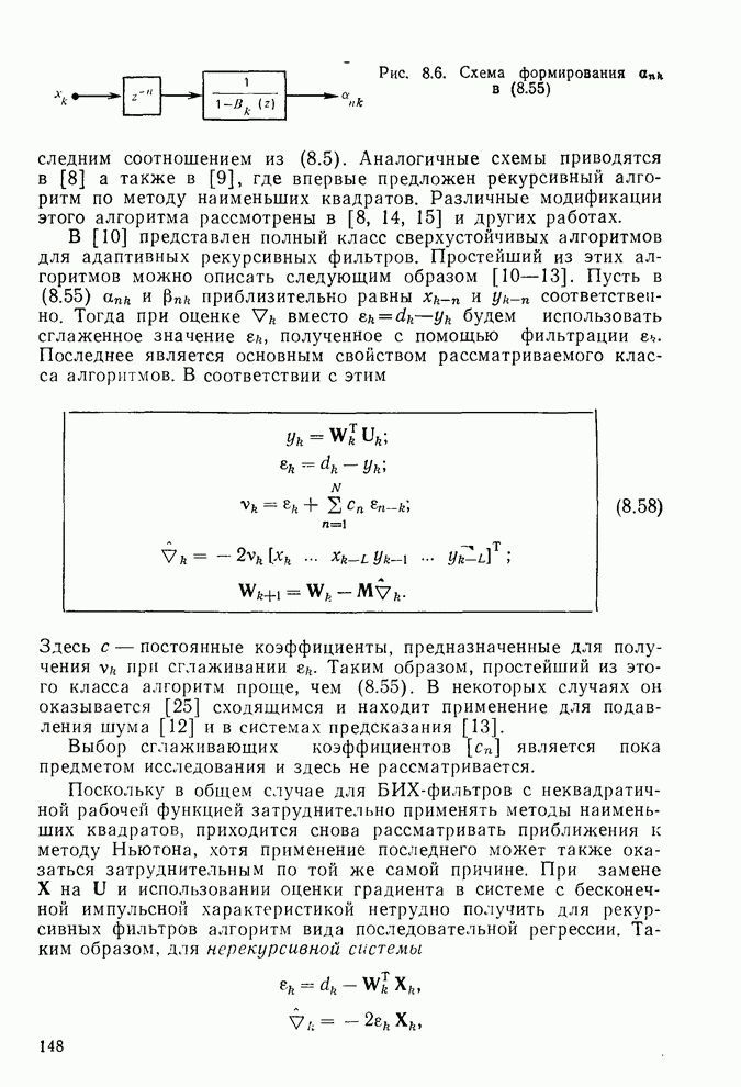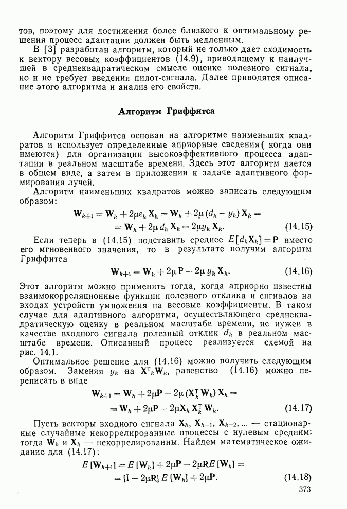 , а число N можно уменьшить, если на одной итерации брать меньше отсчетов сигнала ошибки. Ясно, что система с малым размером шага и малым количеством данных на одном шаге эквивалентна системе с большим размером шага и большим количеством данных на одном шаге. Как следует из (5.98), важным показателем является количество данных, которые обрабатываются за период, равный постоянной времени адаптации.