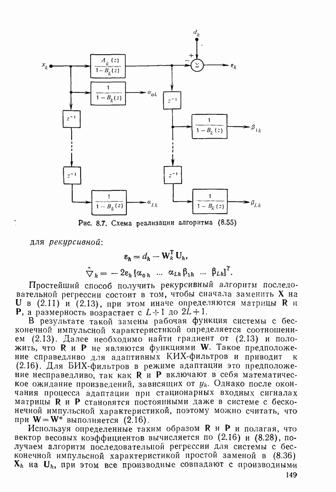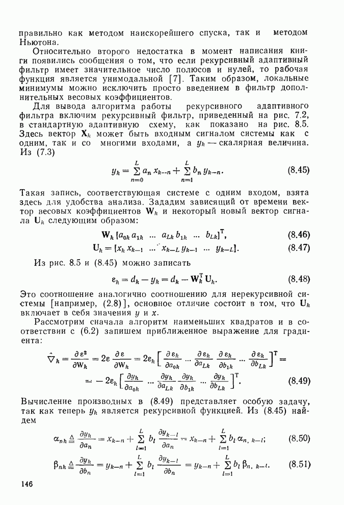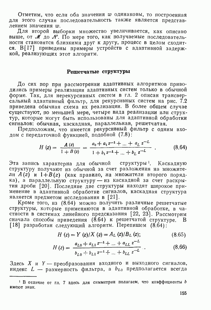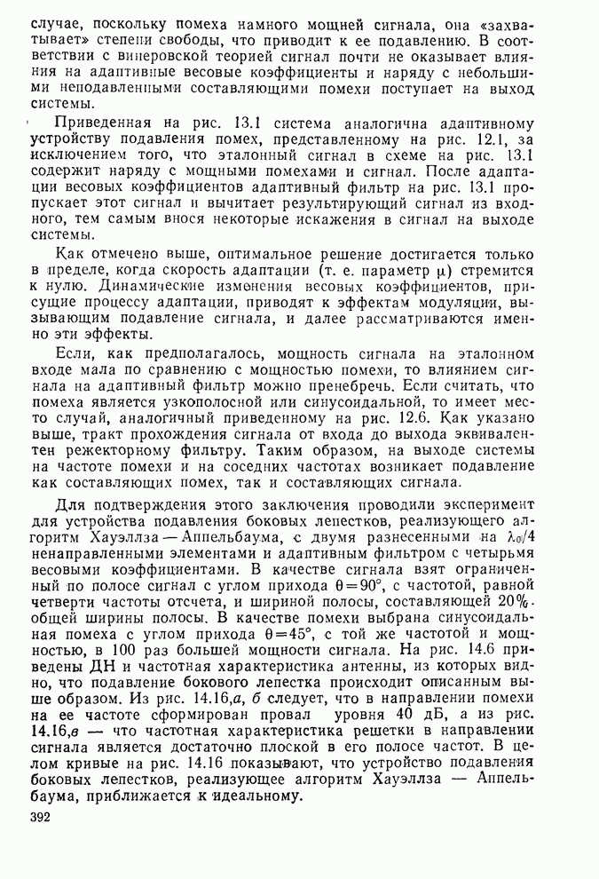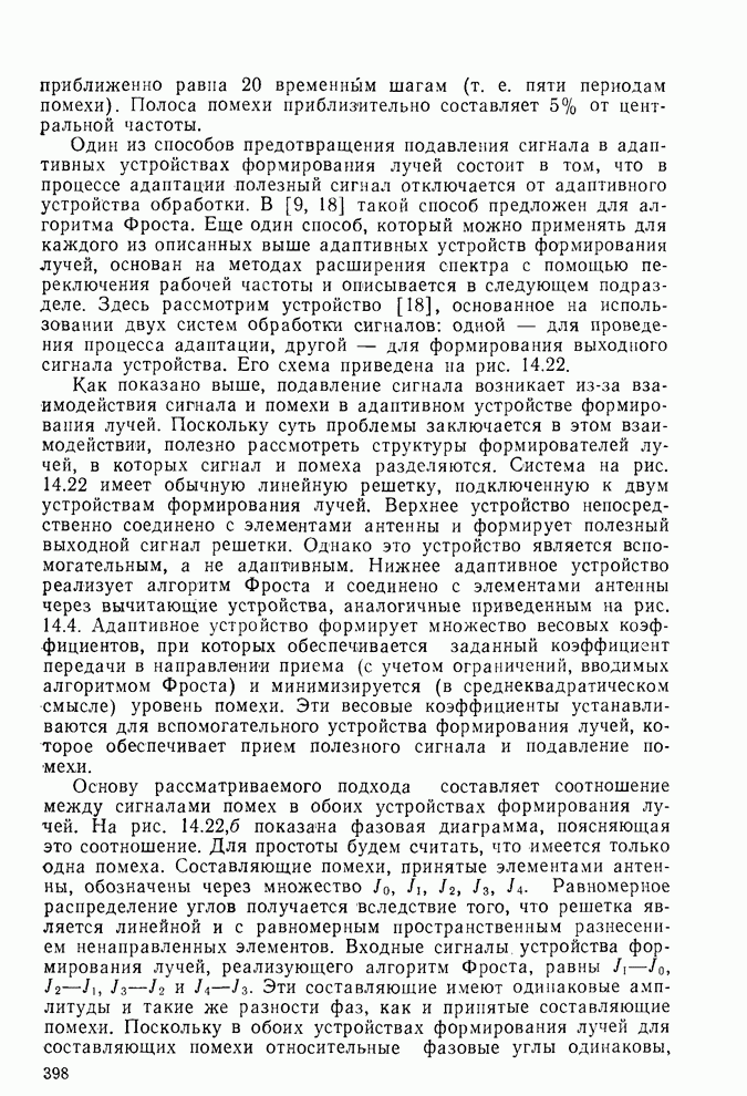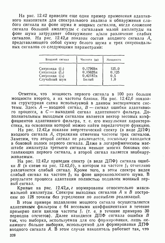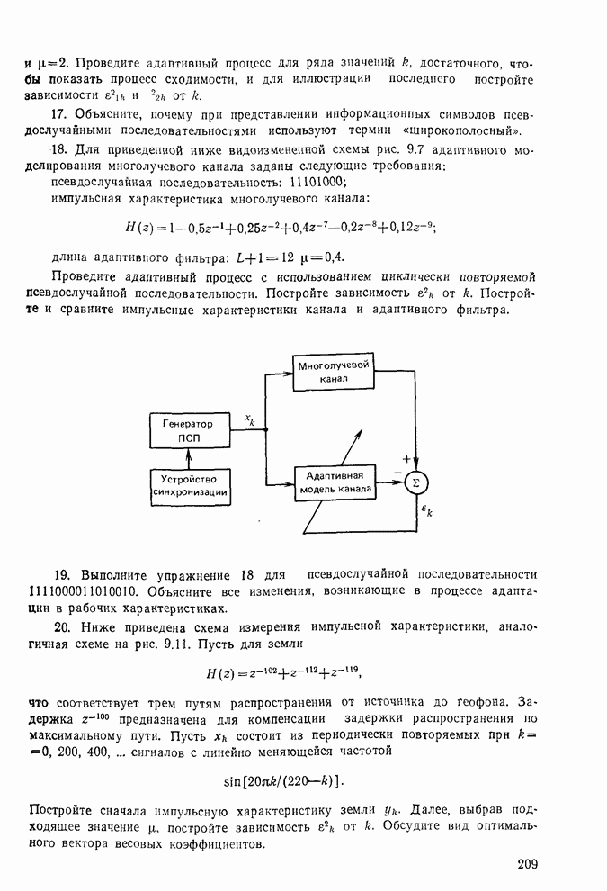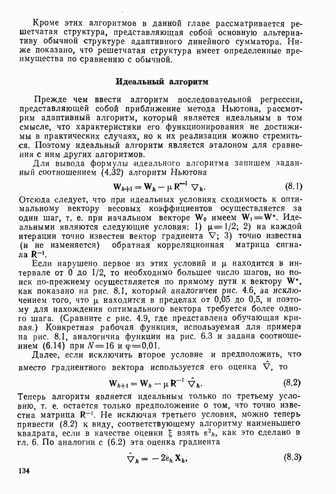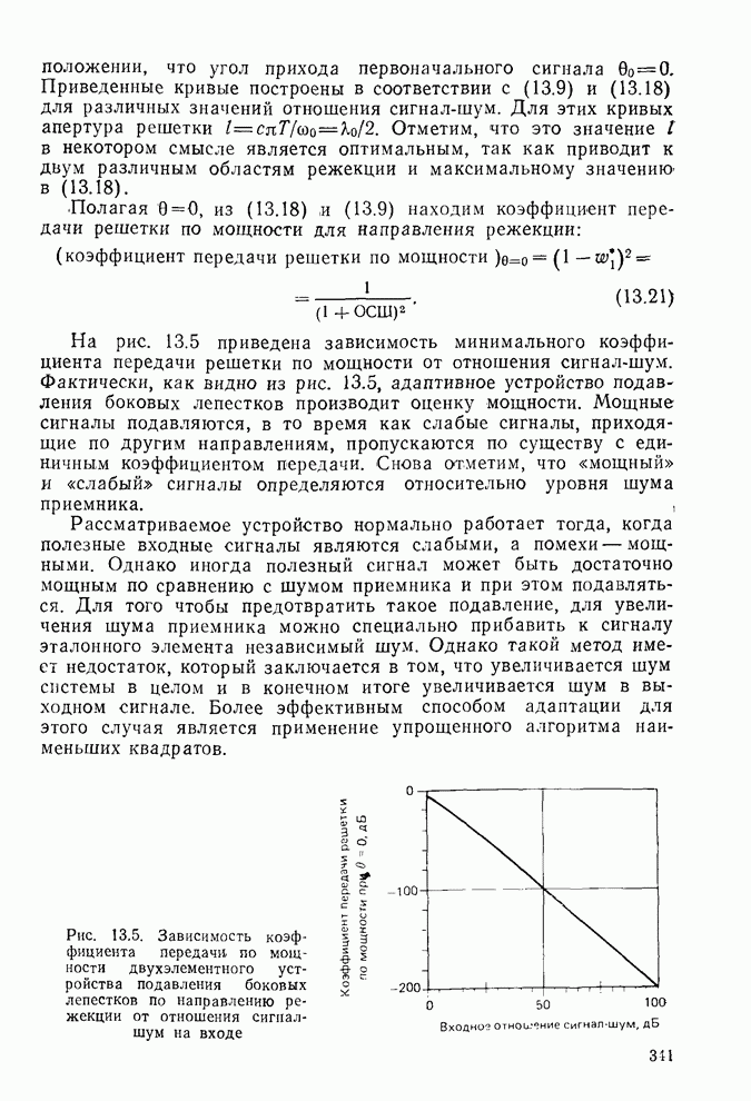 , а число N можно уменьшить, если на одной итерации брать меньше отсчетов сигнала ошибки. Ясно, что система с малым размером шага и малым количеством данных на одном шаге эквивалентна системе с большим размером шага и большим количеством данных на одном шаге. Как следует из (5.98), важным показателем является количество данных, которые обрабатываются за период, равный постоянной времени адаптации.