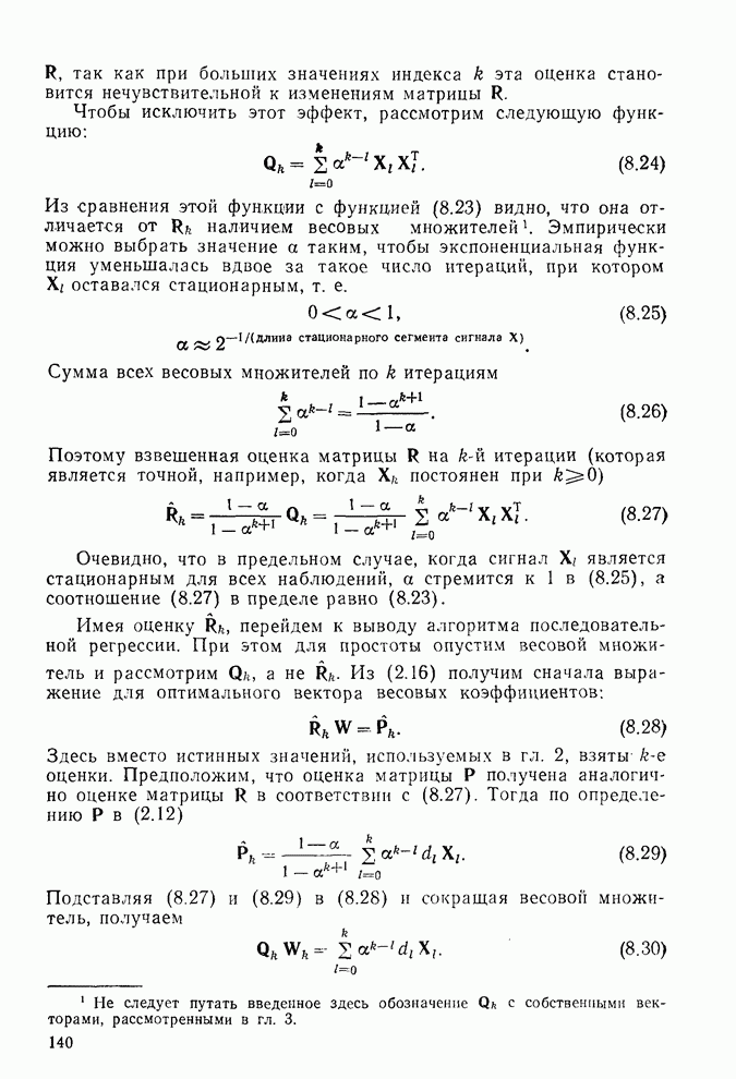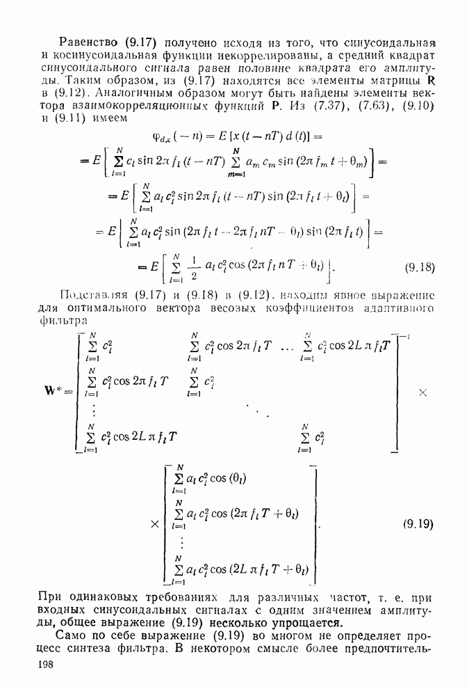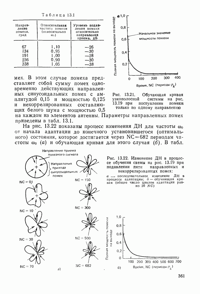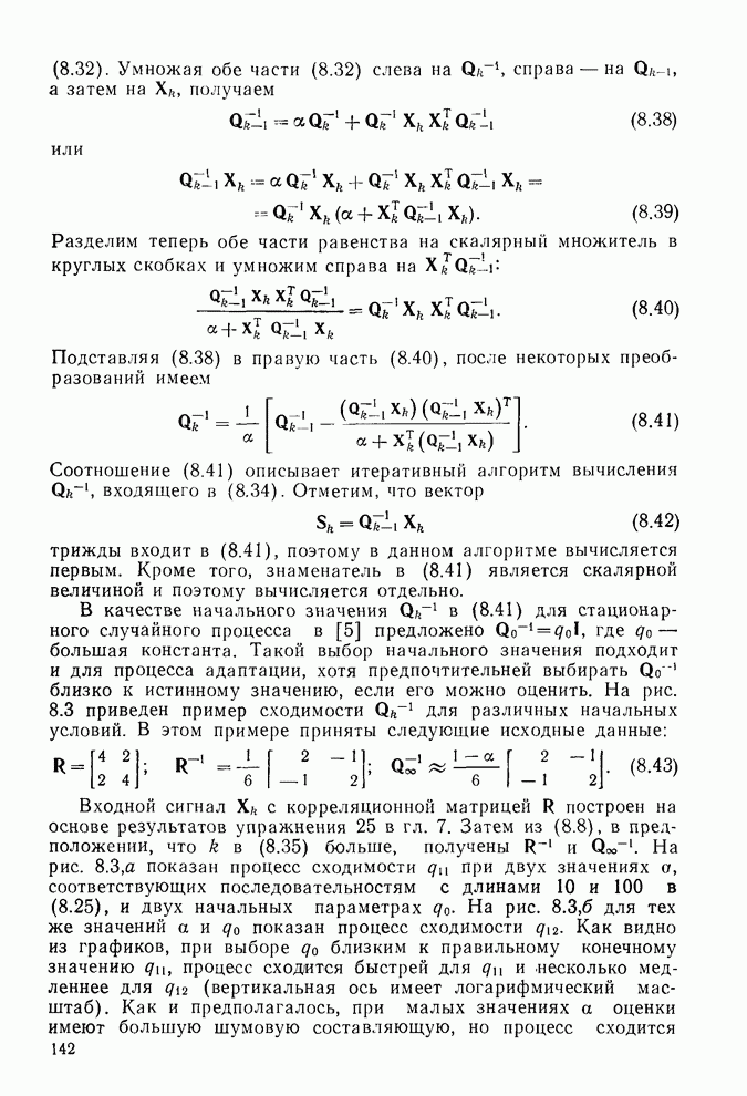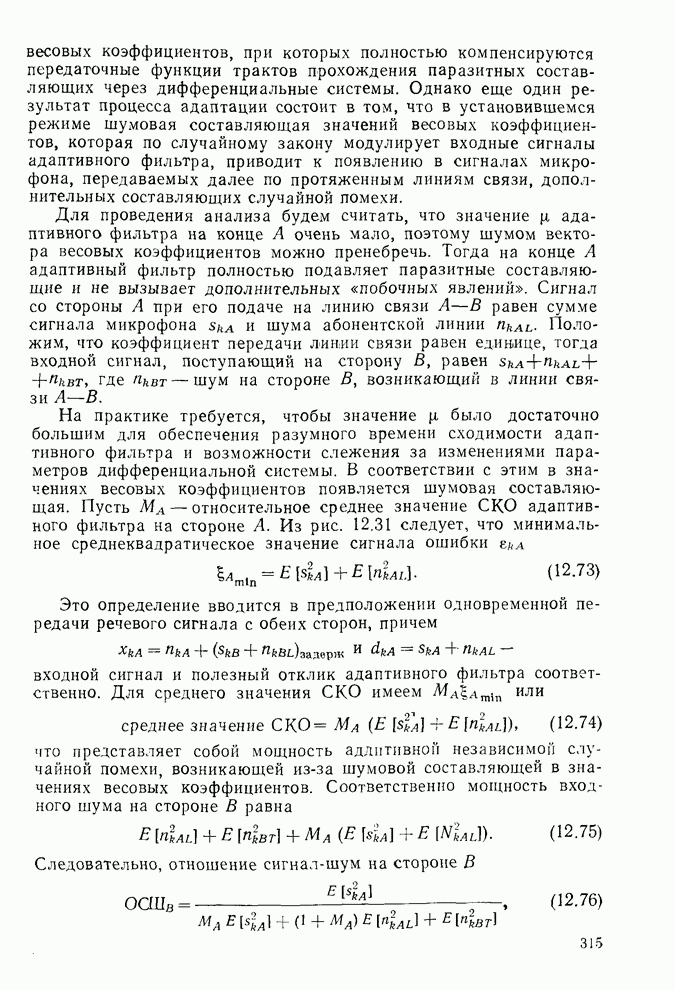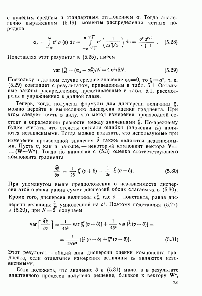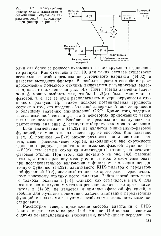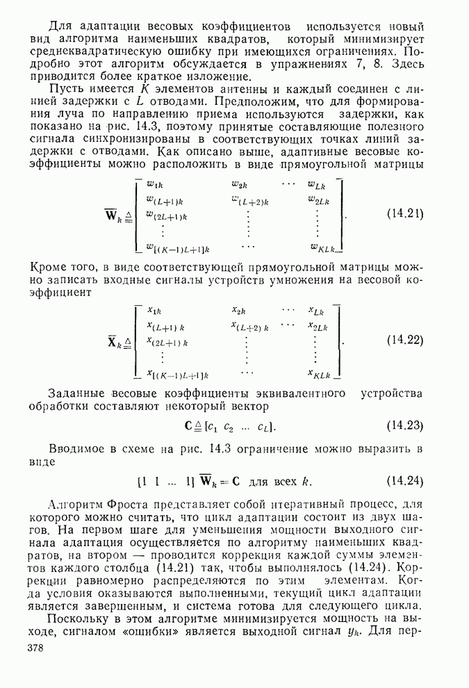 , а число N можно уменьшить, если на одной итерации брать меньше отсчетов сигнала ошибки. Ясно, что система с малым размером шага и малым количеством данных на одном шаге эквивалентна системе с большим размером шага и большим количеством данных на одном шаге. Как следует из (5.98), важным показателем является количество данных, которые обрабатываются за период, равный постоянной времени адаптации.