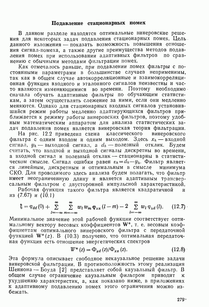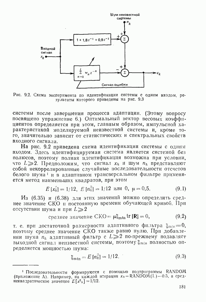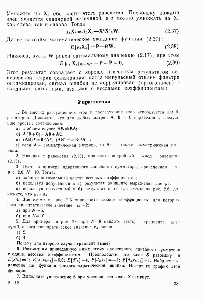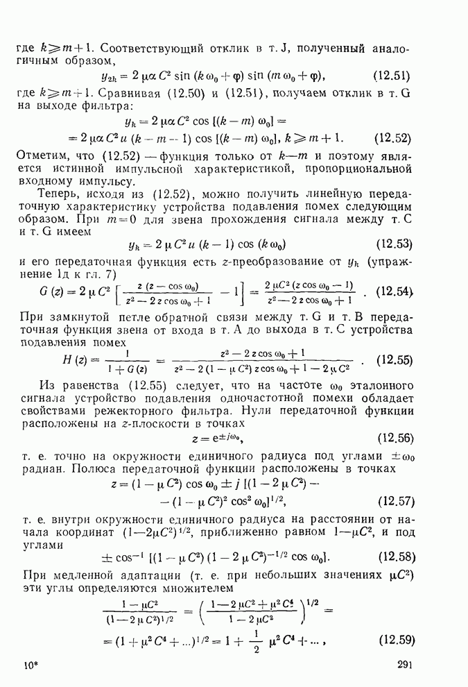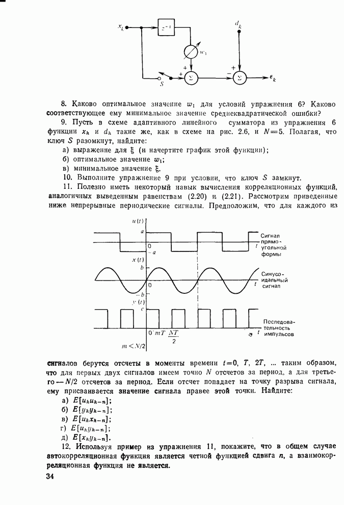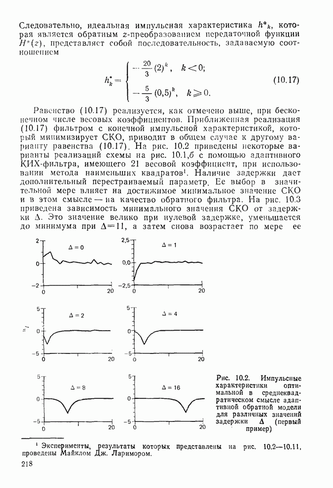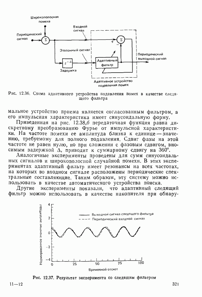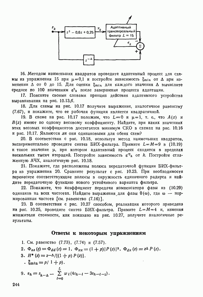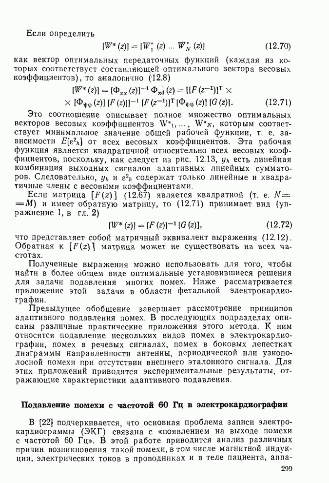 , а число N можно уменьшить, если на одной итерации брать меньше отсчетов сигнала ошибки. Ясно, что система с малым размером шага и малым количеством данных на одном шаге эквивалентна системе с большим размером шага и большим количеством данных на одном шаге. Как следует из (5.98), важным показателем является количество данных, которые обрабатываются за период, равный постоянной времени адаптации.
