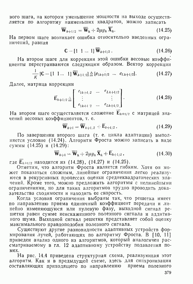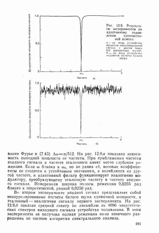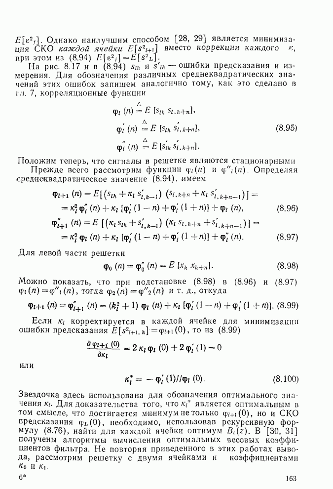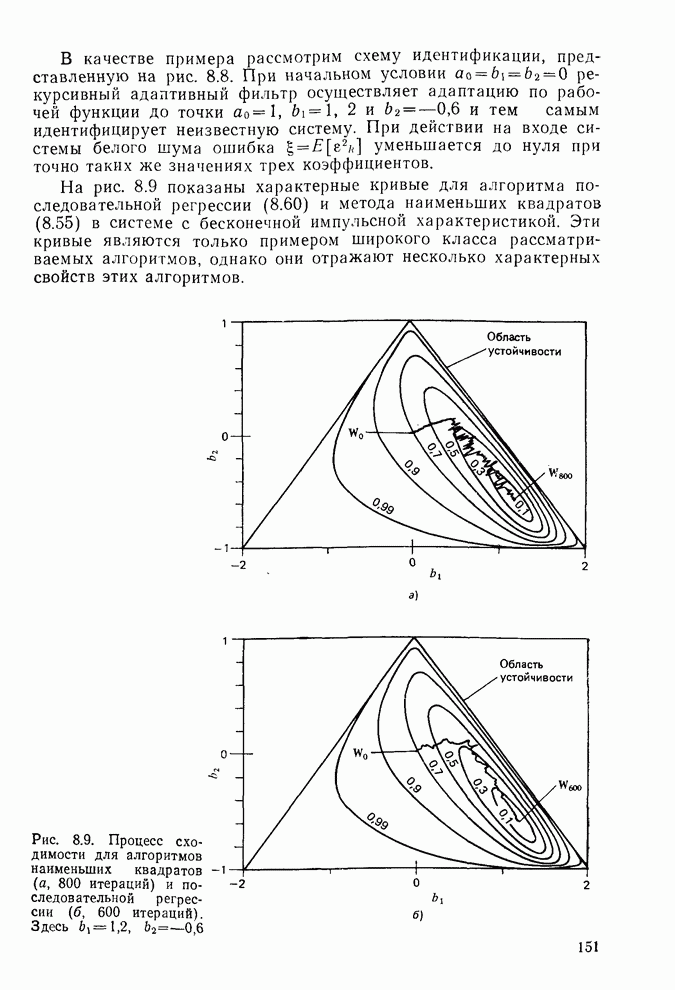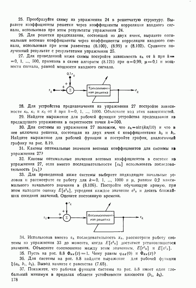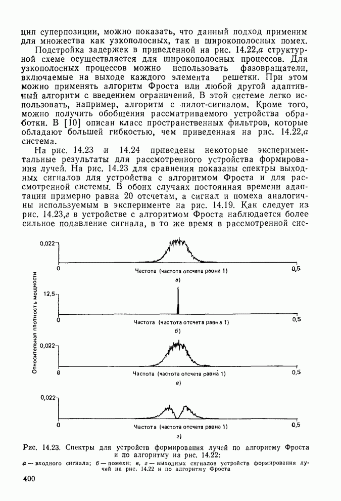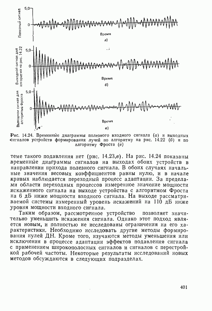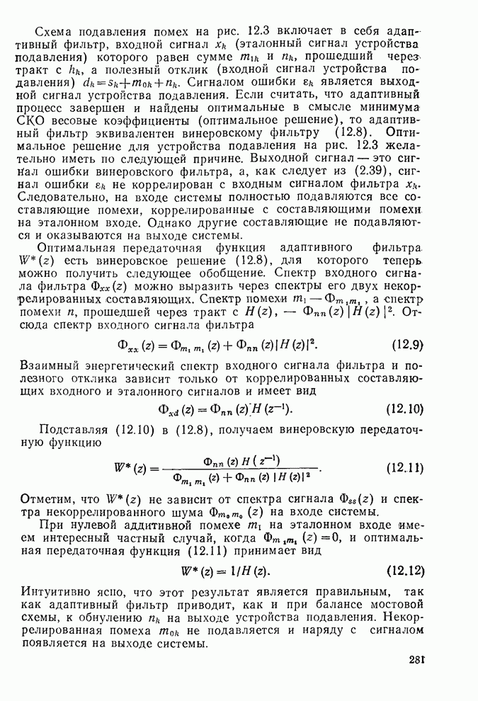 , а число N можно уменьшить, если на одной итерации брать меньше отсчетов сигнала ошибки. Ясно, что система с малым размером шага и малым количеством данных на одном шаге эквивалентна системе с большим размером шага и большим количеством данных на одном шаге. Как следует из (5.98), важным показателем является количество данных, которые обрабатываются за период, равный постоянной времени адаптации.