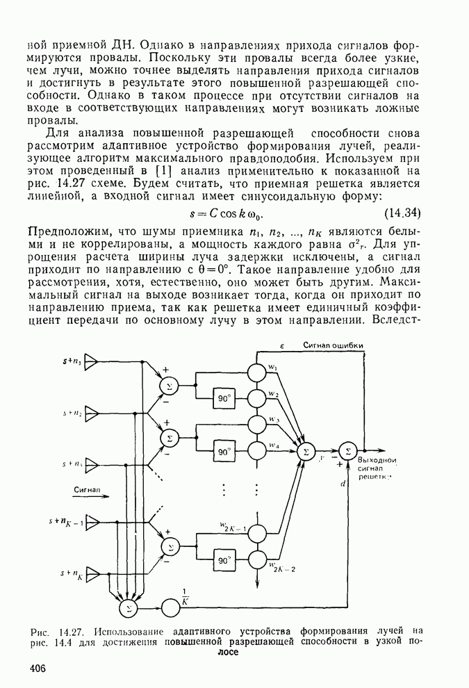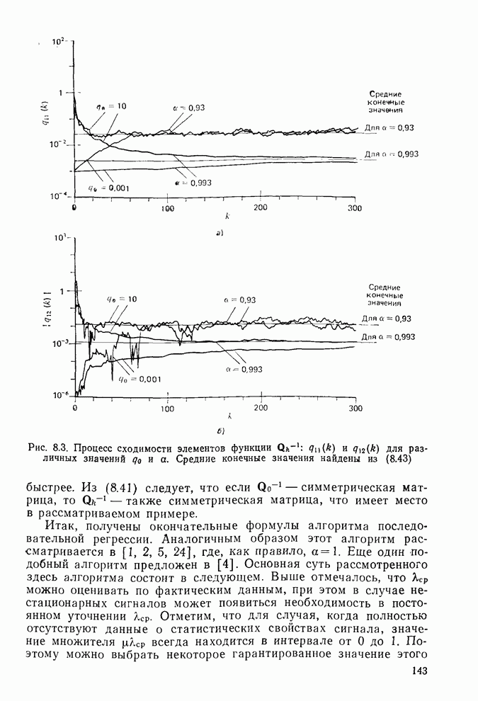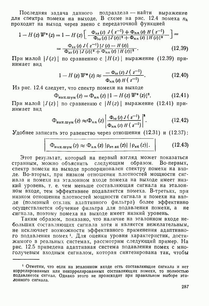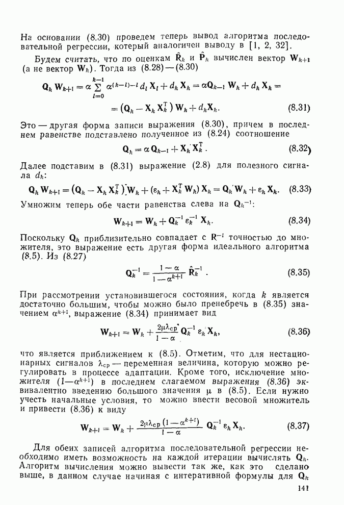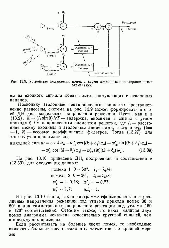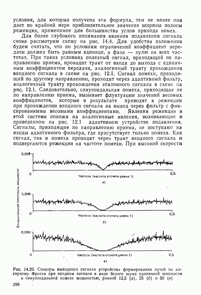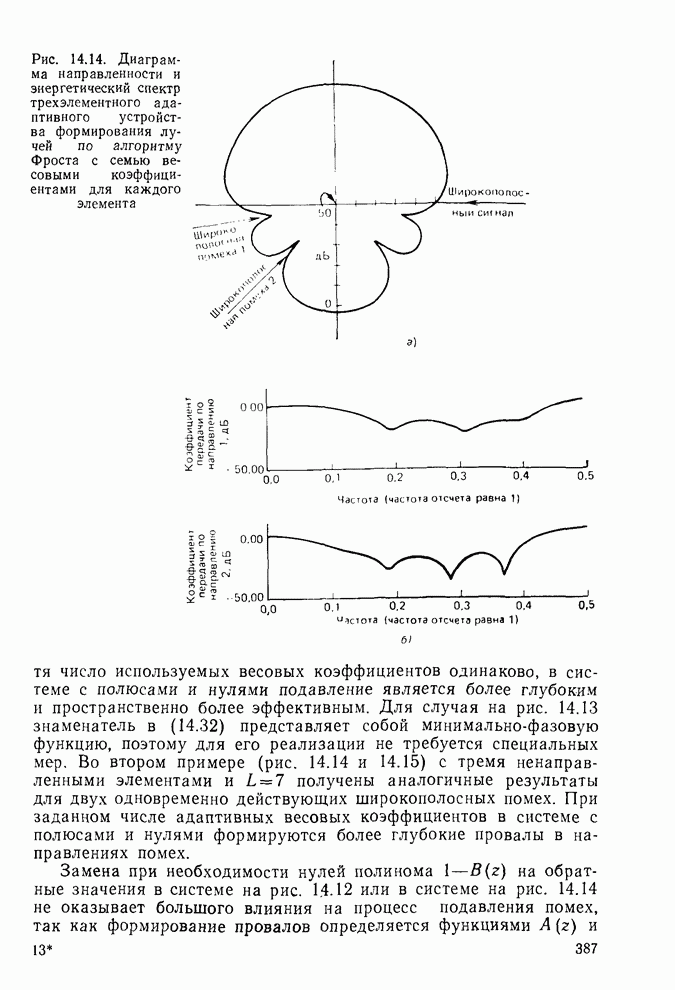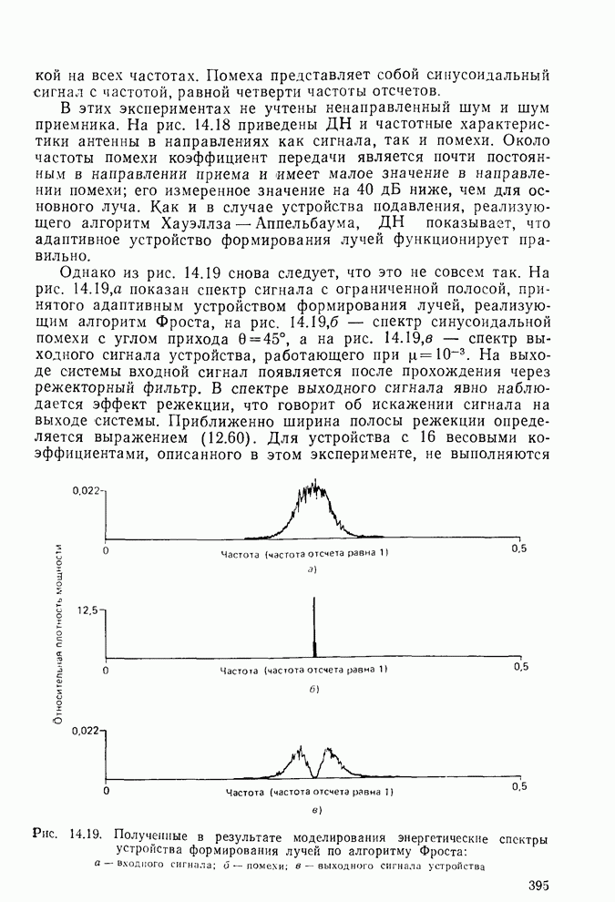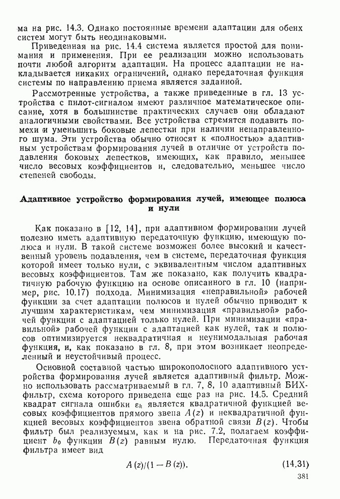 , а число N можно уменьшить, если на одной итерации брать меньше отсчетов сигнала ошибки. Ясно, что система с малым размером шага и малым количеством данных на одном шаге эквивалентна системе с большим размером шага и большим количеством данных на одном шаге. Как следует из (5.98), важным показателем является количество данных, которые обрабатываются за период, равный постоянной времени адаптации.