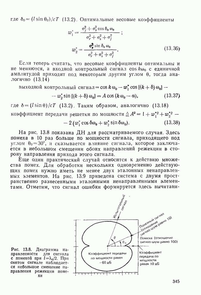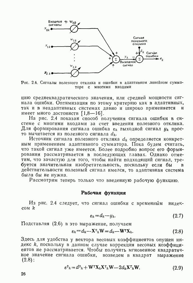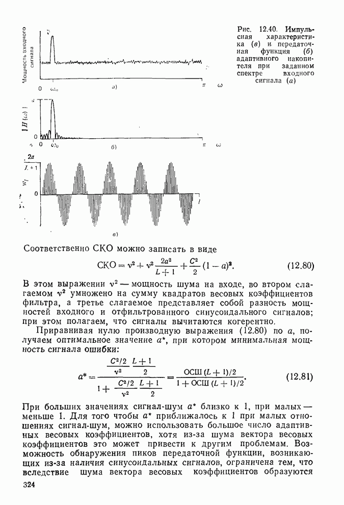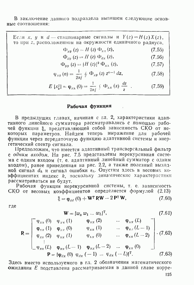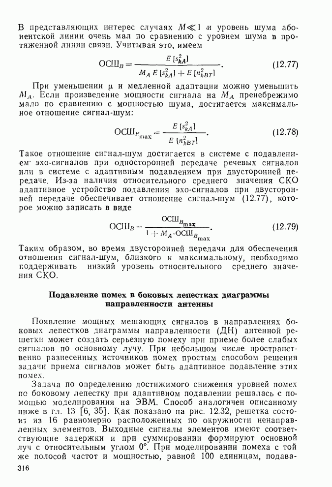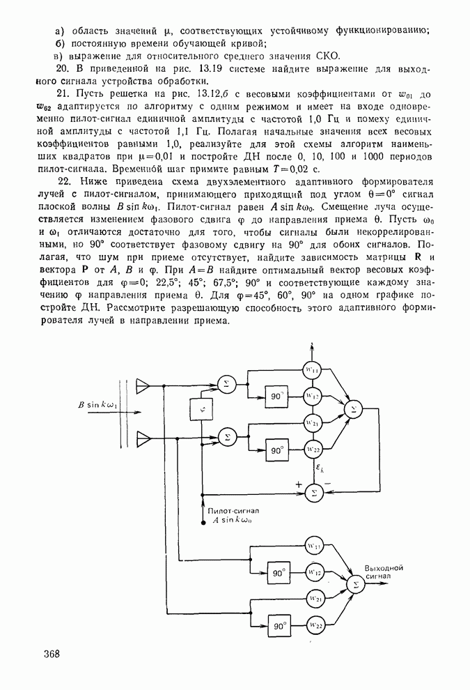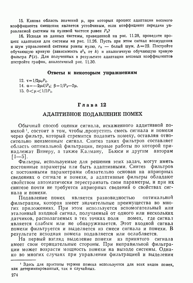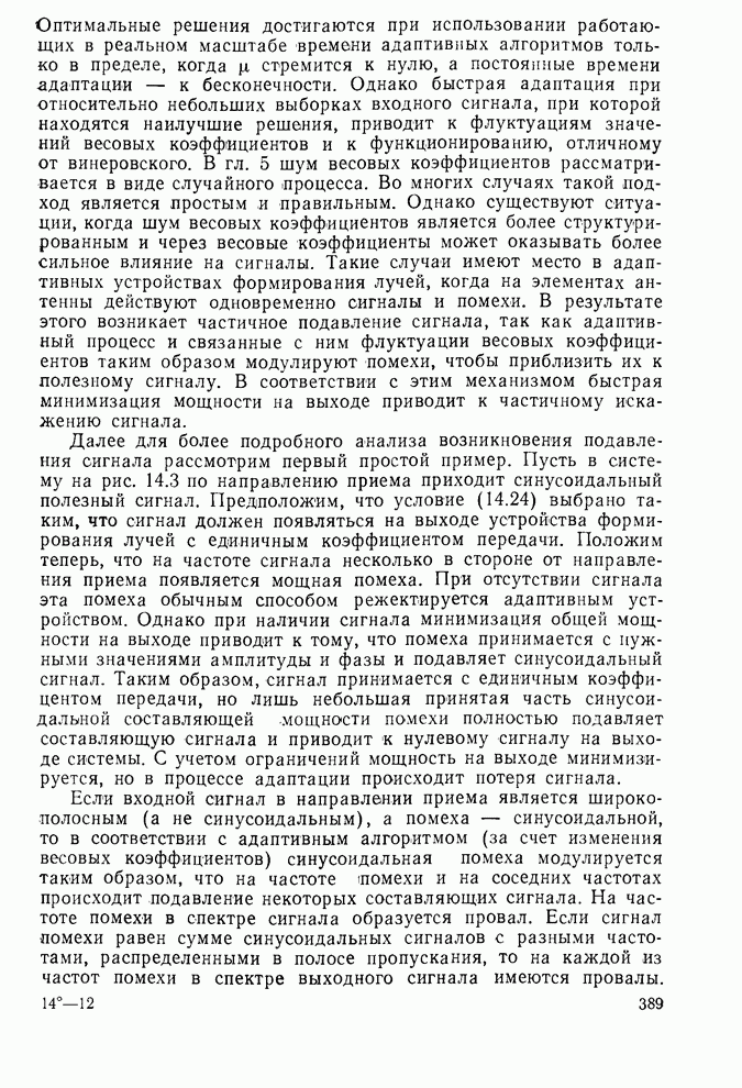 Относительное среднее значение СКО представляет собой безразмерную величину, отражающую различие между действительным и оптимальным винеровским адаптивным процессами, возникающее из-за шума оценки градиента. Другими словами, это некоторая мера адаптивных свойств системы. Отметим, что в выражение для М не входит относительное приращение Р, возникающее из-за специально вносимых отклонений весовых коэффициентов, а не из-за шума.