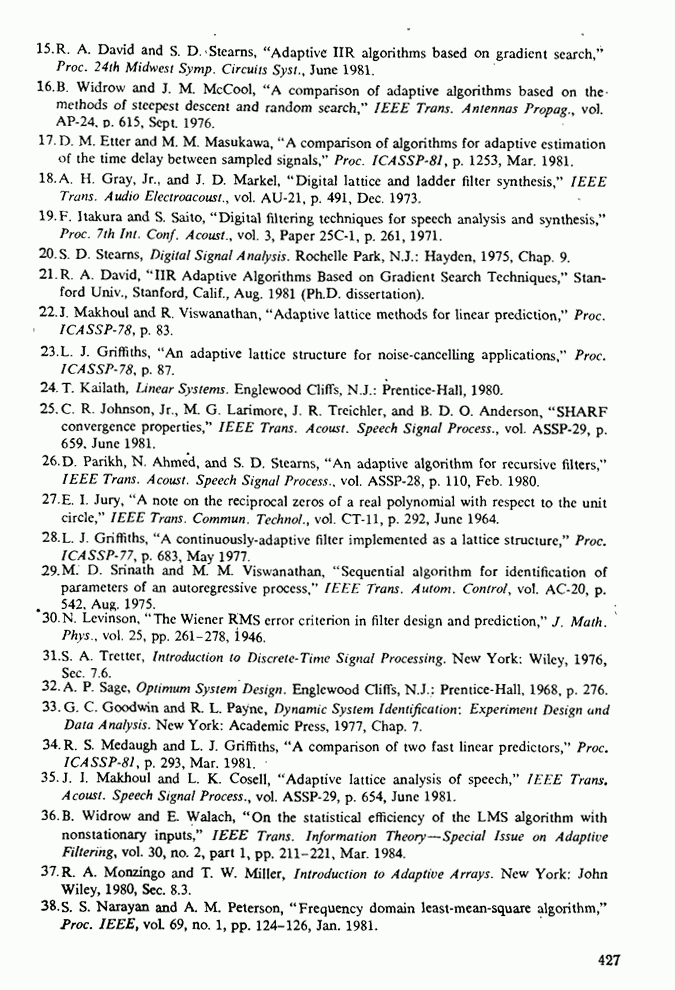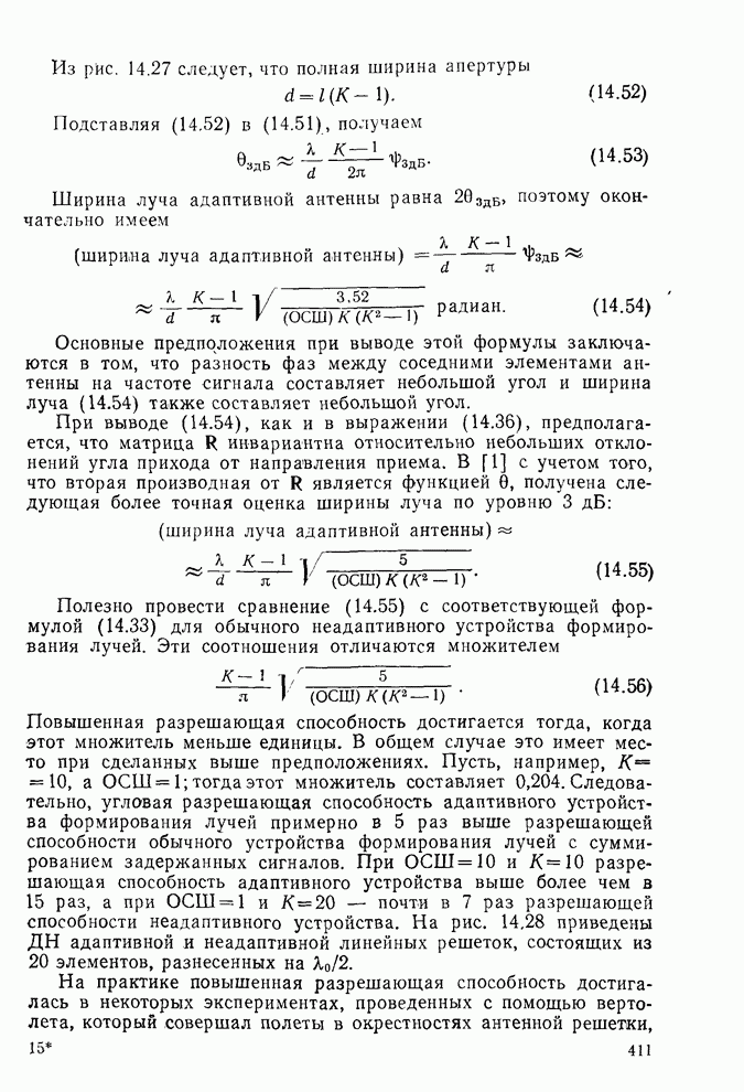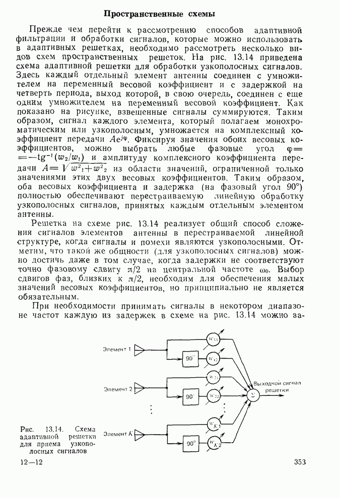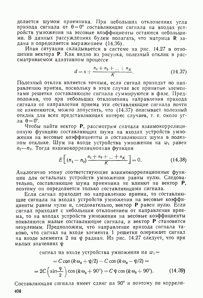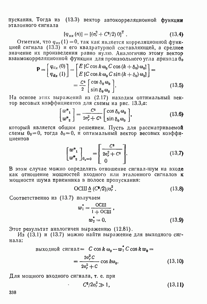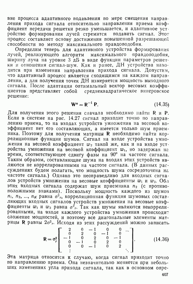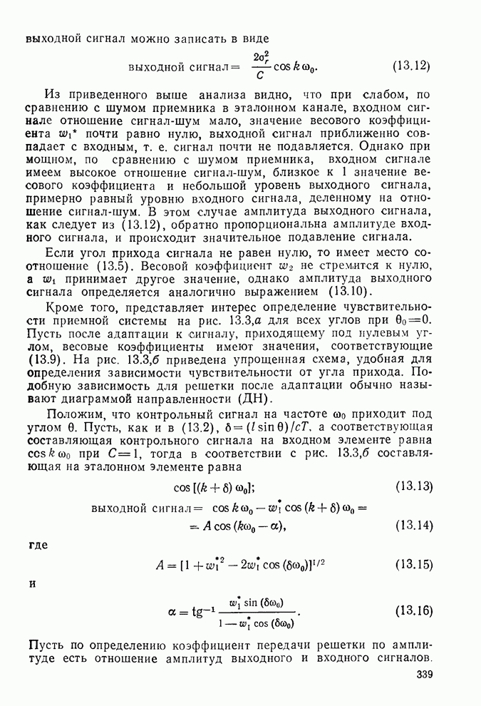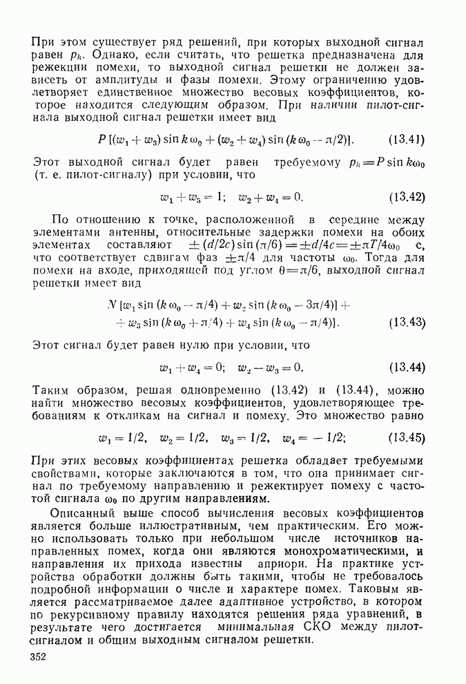 Относительное среднее значение СКО представляет собой безразмерную величину, отражающую различие между действительным и оптимальным винеровским адаптивным процессами, возникающее из-за шума оценки градиента. Другими словами, это некоторая мера адаптивных свойств системы. Отметим, что в выражение для М не входит относительное приращение Р, возникающее из-за специально вносимых отклонений весовых коэффициентов, а не из-за шума.