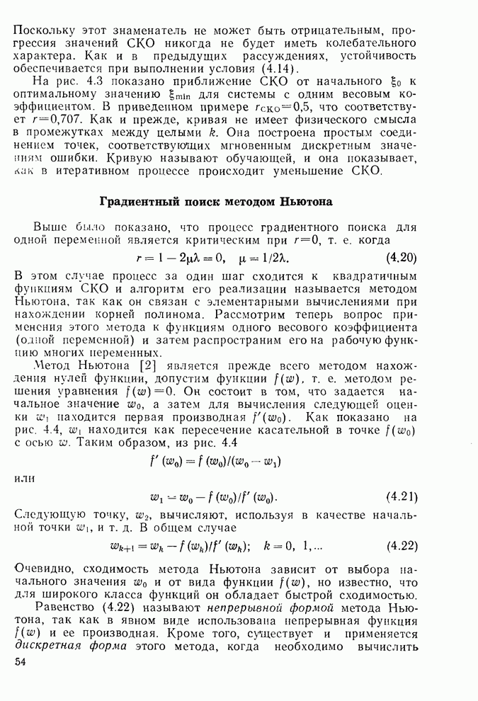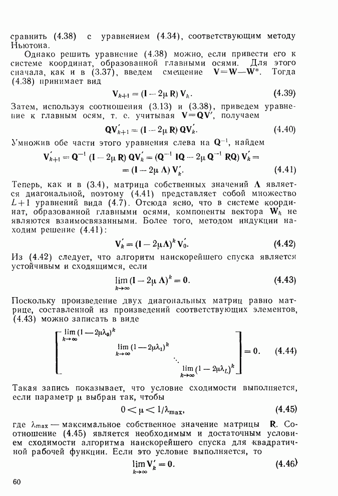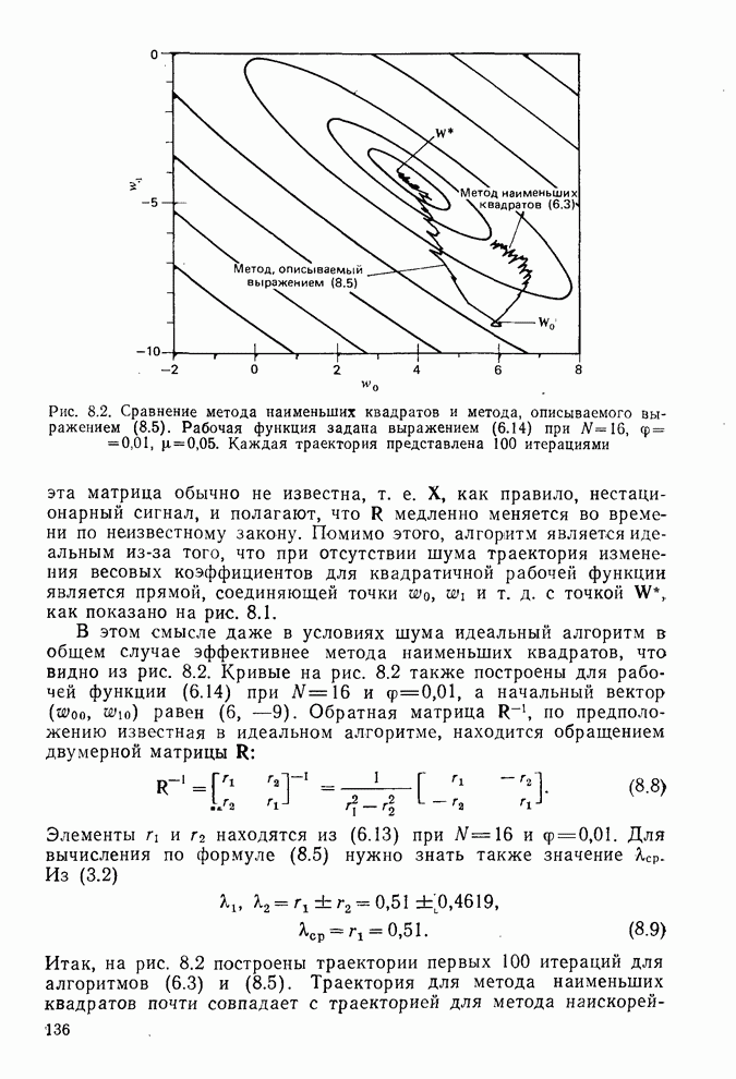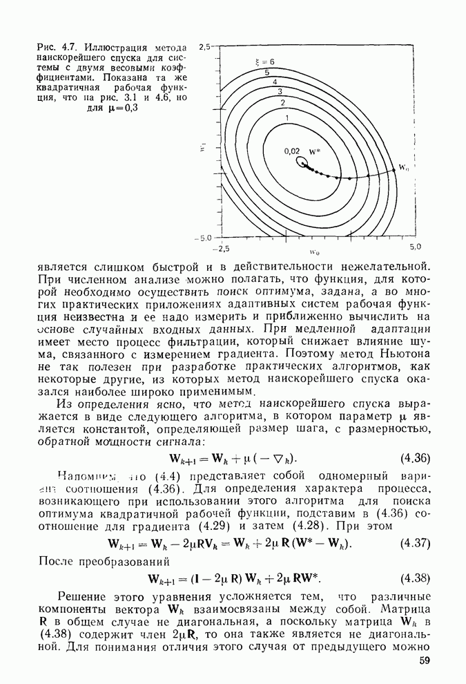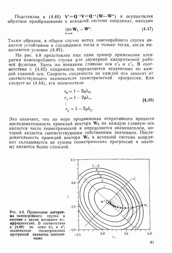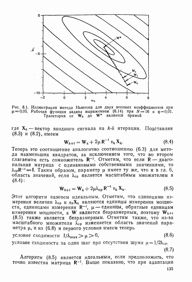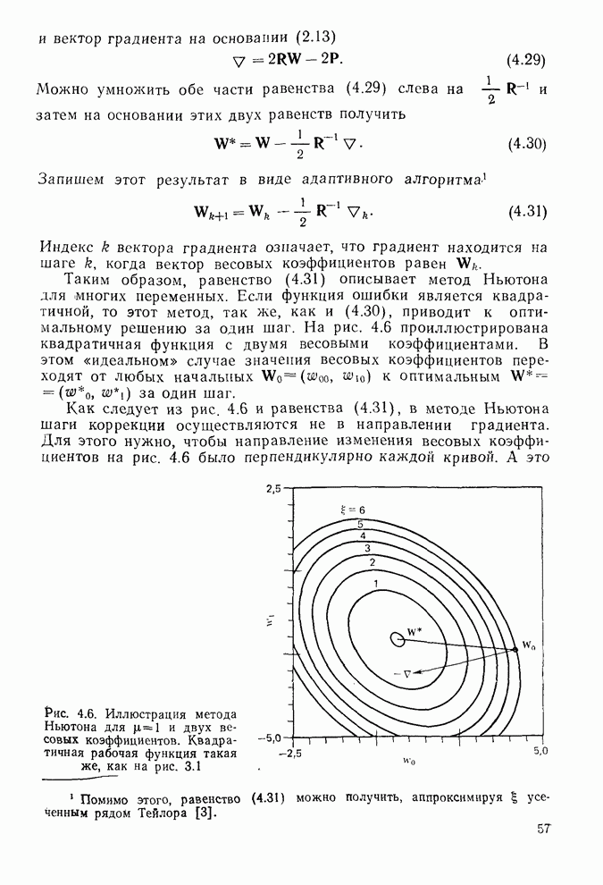 . Следовательно, если все собственные значения матрицы R равны между собой, то оба выражения будут одинаковыми. При таком условии рабочая функция обладает круговой симметрией, и отрицательный градиент всегда имеет направление на ее минимальное значение. В этом случае методы Ньютона и наискорейшего спуска фактически идентичны.