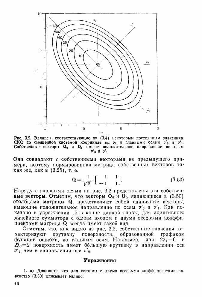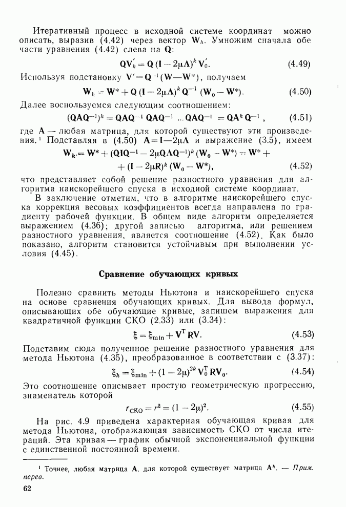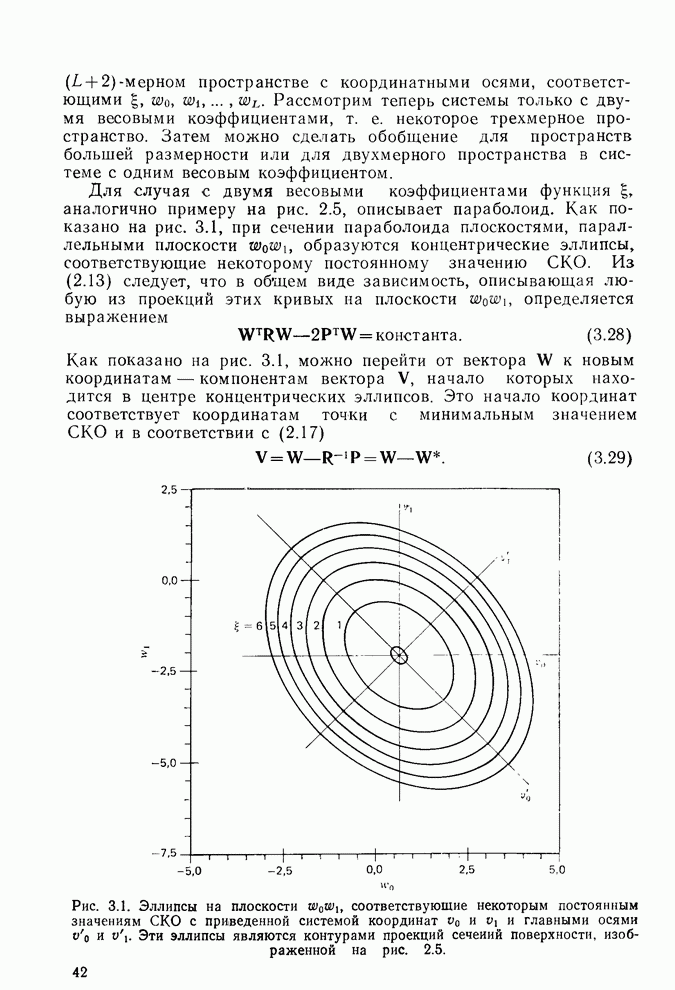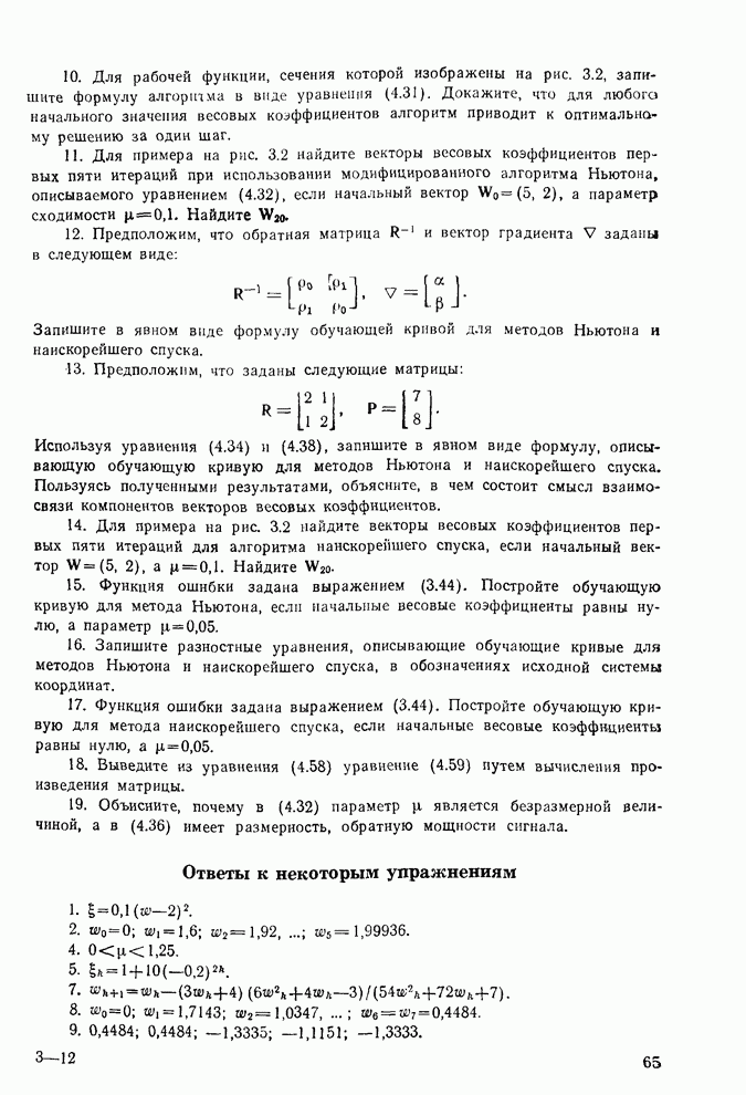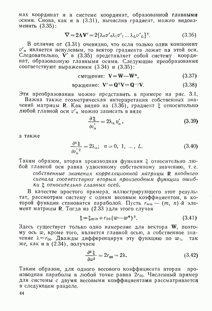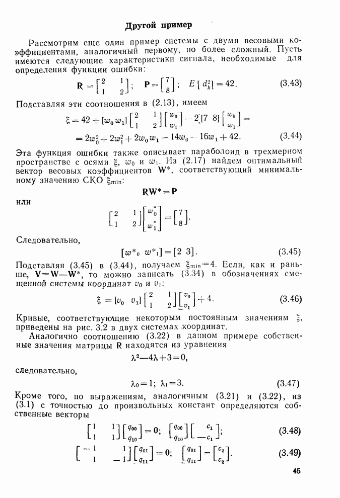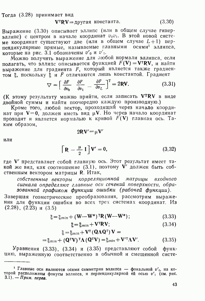 . Следовательно, если все собственные значения матрицы R равны между собой, то оба выражения будут одинаковыми. При таком условии рабочая функция обладает круговой симметрией, и отрицательный градиент всегда имеет направление на ее минимальное значение. В этом случае методы Ньютона и наискорейшего спуска фактически идентичны.