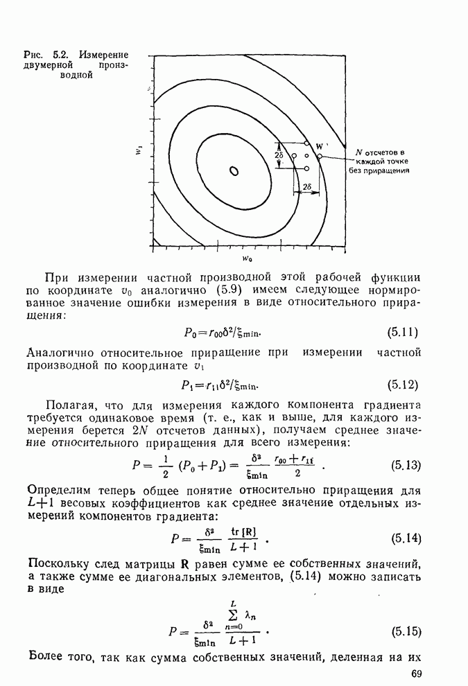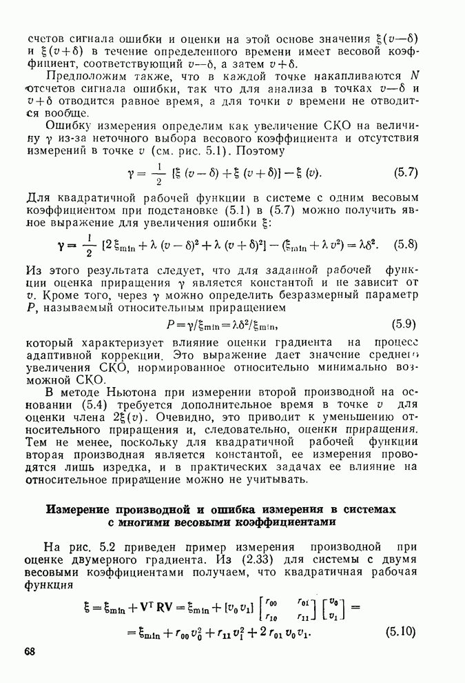 Алгоритм, основанный на рассмотренном в этом и предшествующих разделах методе Ньютона, можно сделать до некоторой степени более эффективным, если изменить процесс измерения градиента, показанный на рис. 5.1 и 5.2. Изменение процесса состоит в том, что величина g измеряется при номинальном векторе