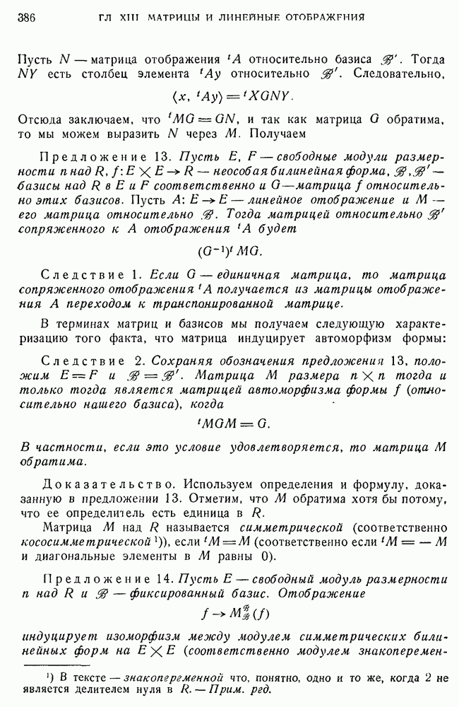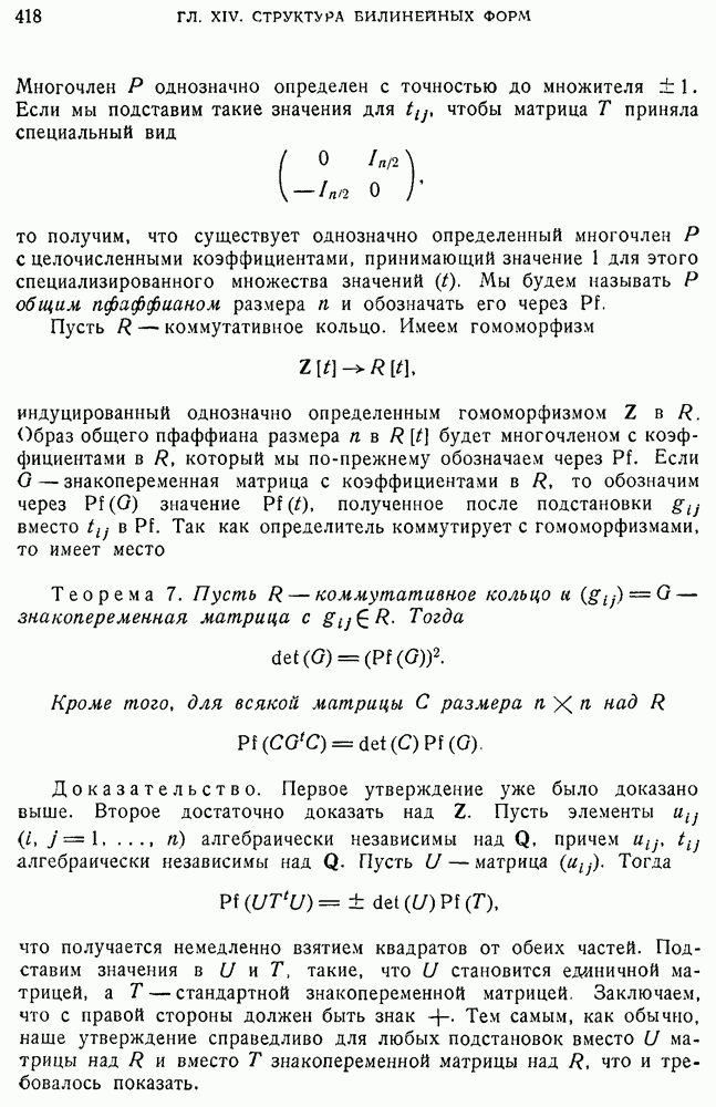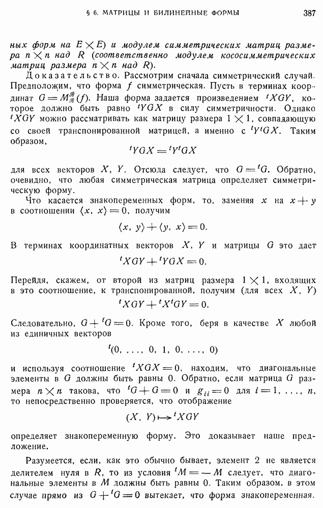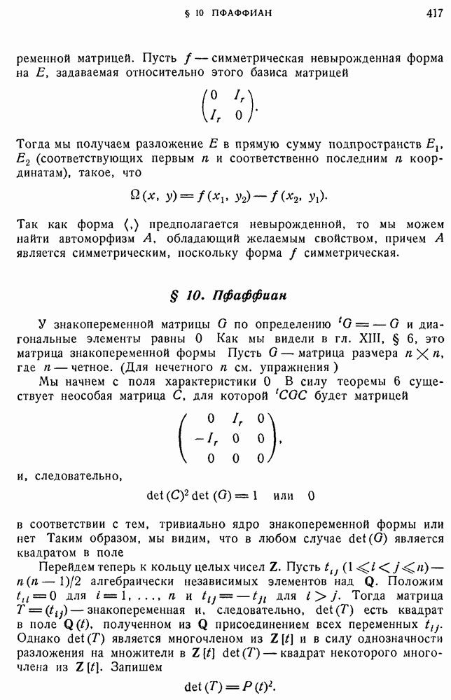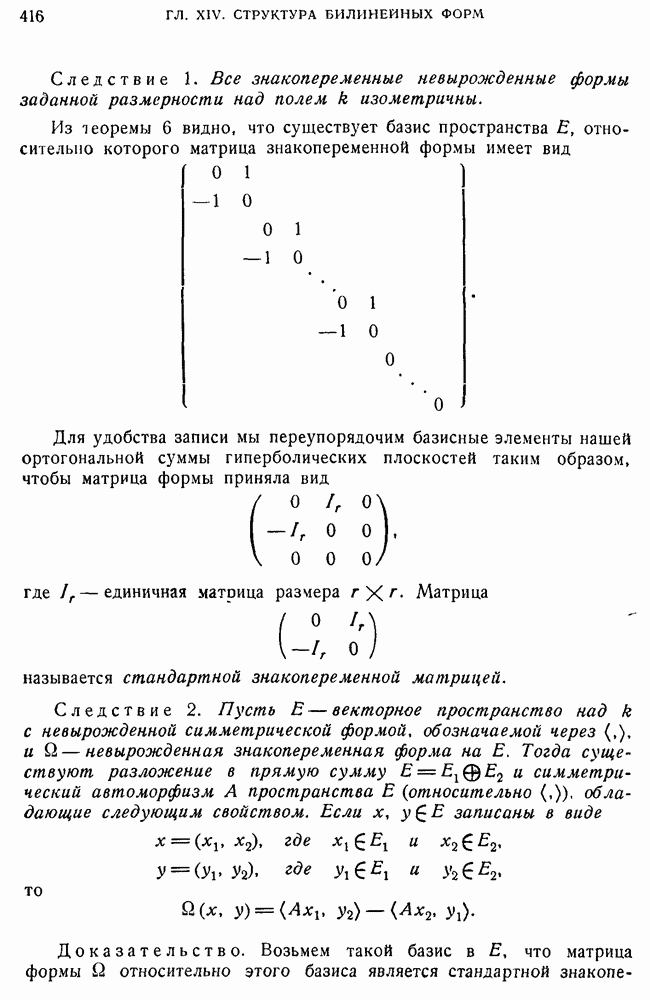 Из теоремы 6 видно, что существует базис пространства Е, относительно которого матрица знакопеременной формы имеет вид