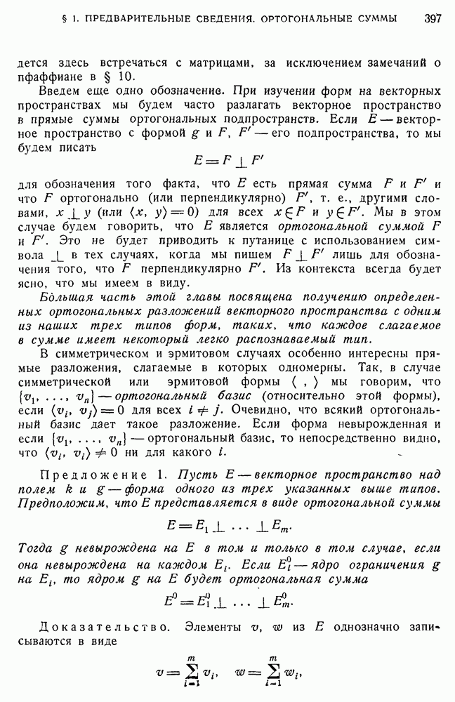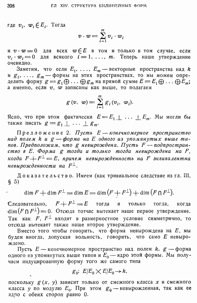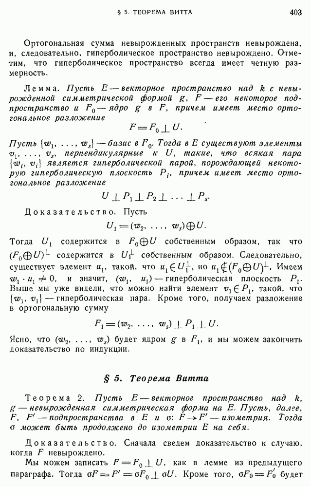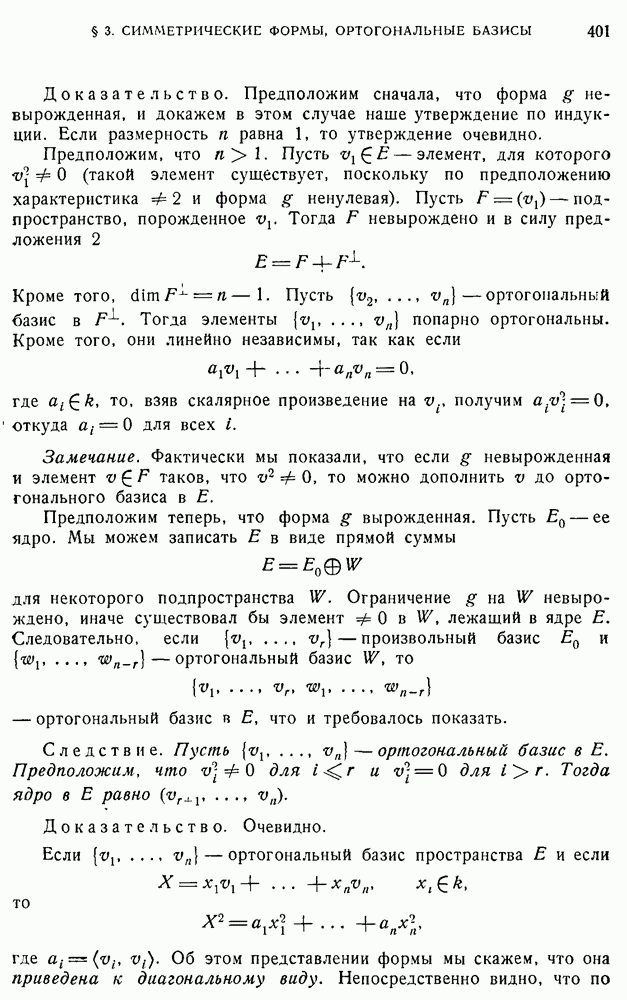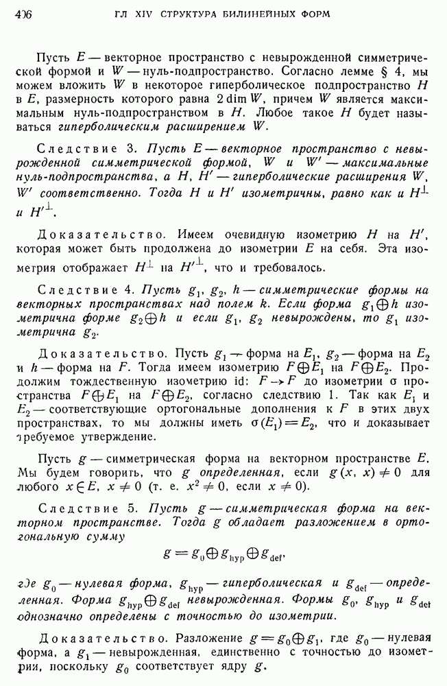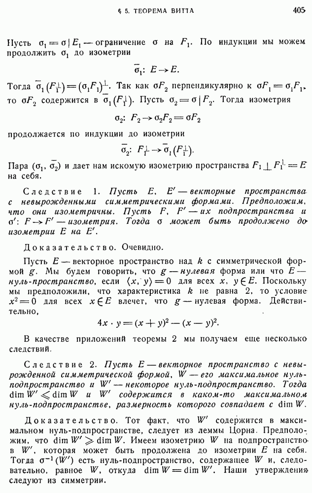 Следствие 2. Пусть Е — векторное пространство над k с невырожденной симметрической формой, обозначаемой через
