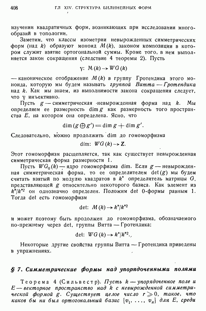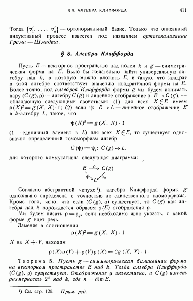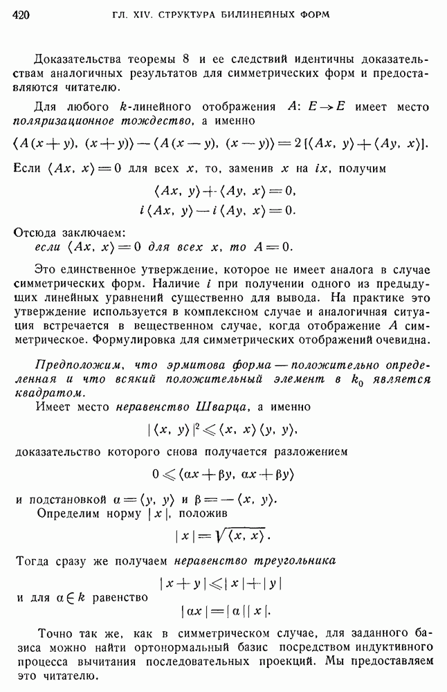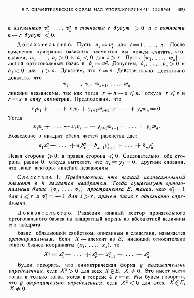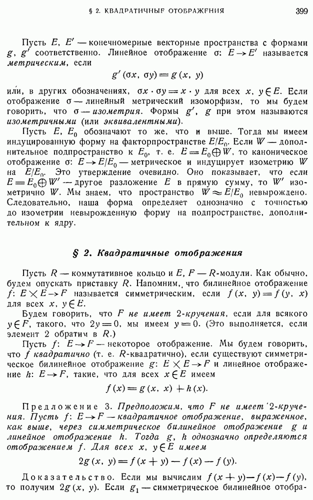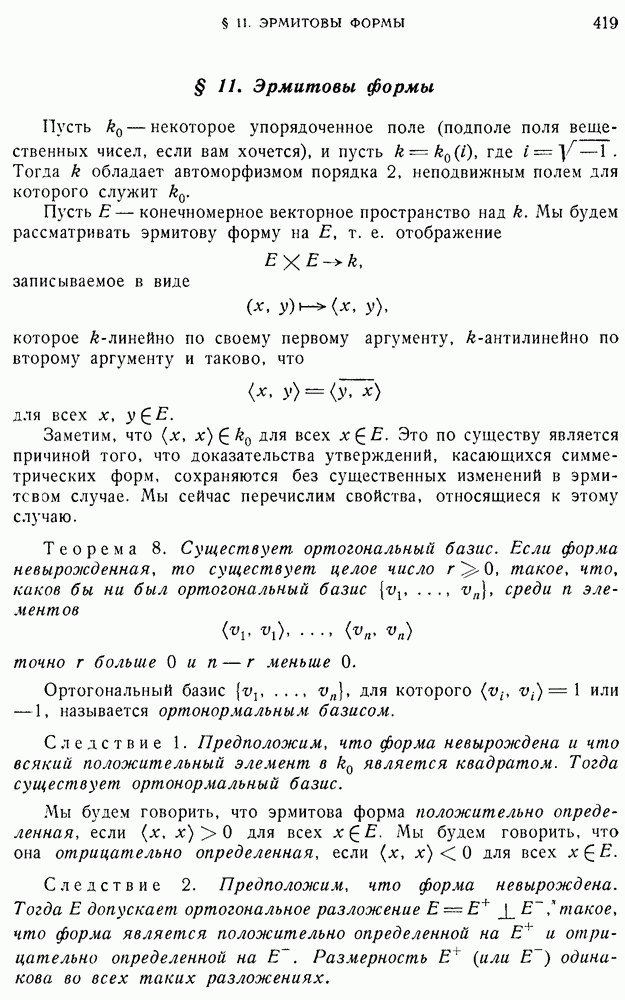 Следствие 2. Пусть Е — векторное пространство над k с невырожденной симметрической формой, обозначаемой через