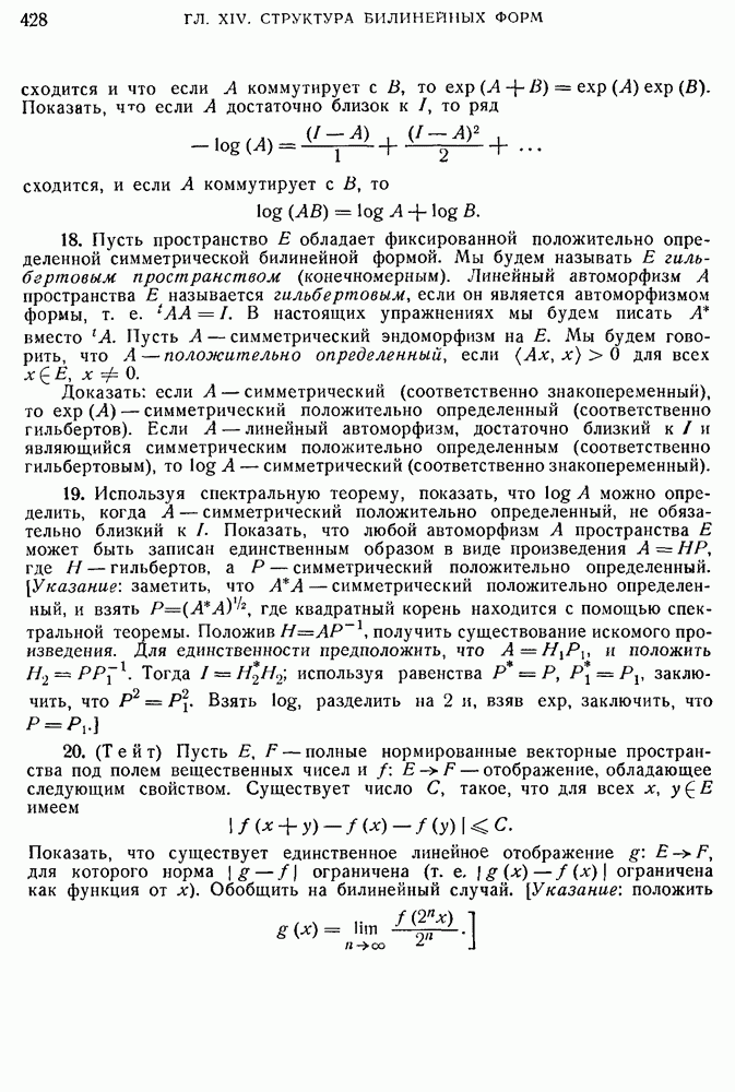 Тогда Е будет ортогональной суммой своего ядра и гиперболического подпространства. Если Е невырождено, то Е является гиперболическим пространством и его размерность четна.
