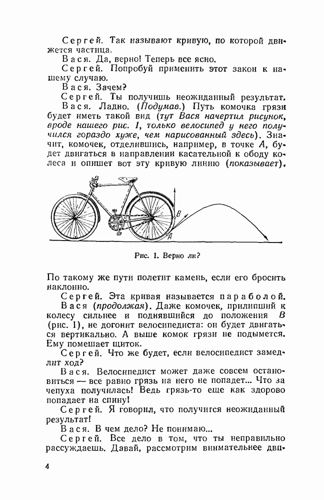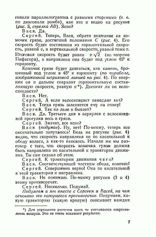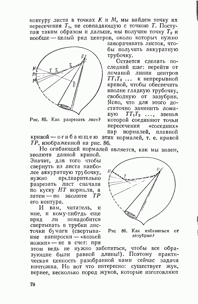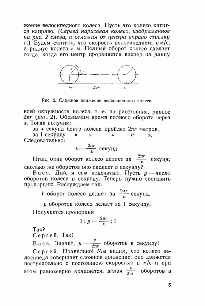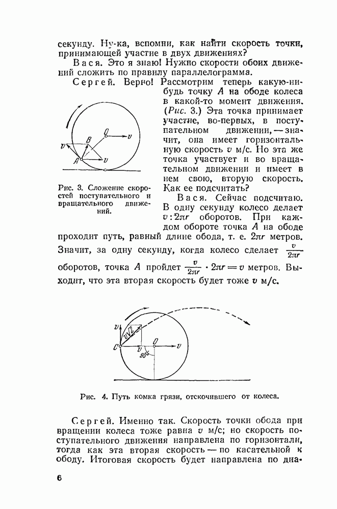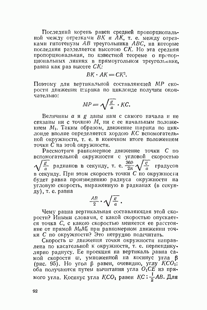 Видоизменим немного условия, при которых порождается эпициклоида. Рассмотрим (рис. 46) круг с центром О и будем предполагать, что по этому кругу равномерно движется центр другого круга, равномерно вращающегося. Какую кривую опишет при этом точка окружности вращающегося круга? Мы встречались с такой задачей в самом начале этой книжки, когда шел разговор о птолемеевой системе мира (стр. 14—16). Действительно, указанное построение приведет нас к эпициклоиде Птолемея. Но будет ли птолемеева эпициклоида «настоящей» эпициклоидой? Нетрудно видеть, что нет. Нужно подобрать специально соотношение между скоростью очки О] и угловой скоростью вращення подвижного круга, чтобы получить настоящую эпициклоиду (попробуйте, читатель, сделать такой расчет). При другом соотношении между скоростями подвижный круг будет катиться по штриховому кругу (рис. 46) со скольжением, и вместо нормальных получатся укороченные или удлиненные эпициклоиды (рис. 47, а и 47, б).