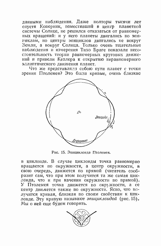 Рис. 48. Пточемеева эпициклоида. Вообразим теперь, что на неподвижный обруч (рис. 48) надет другой — подвижный — обруч, радиус которого в 2, 3, вообще, в