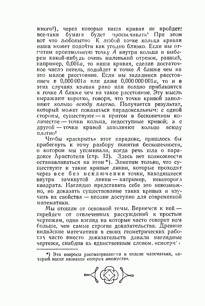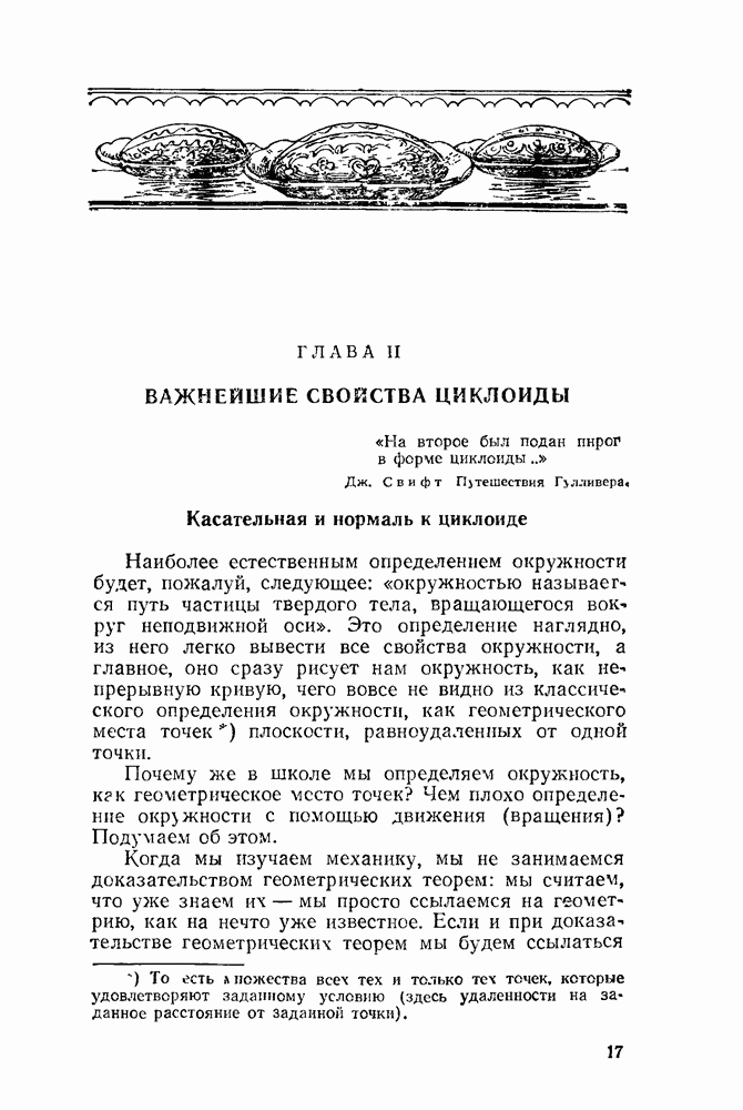 Рис. 43. Эпициклоида с шестью заострениями. Те же ученые, которые изучили обыкновенную циклоиду, установили правила для построения касательной к различным эпициклоидам, а также метрические свойства эпициклоид (т. е. их свойства, связанные с измерением длины их арок, ограниченных ими площадей и т. д.). Выводы этих свойств очень похожи на соответствующие выводы для обыкновенной циклоиды; мы сообщим сразу готовые результаты. Рассмотрим направляющий круг с центром О (рис. 44).