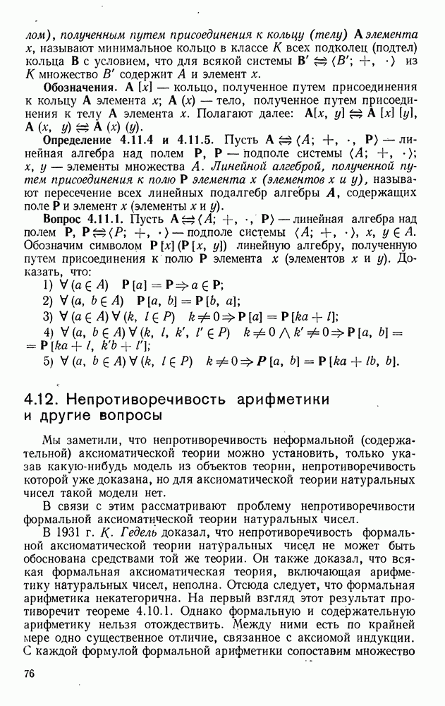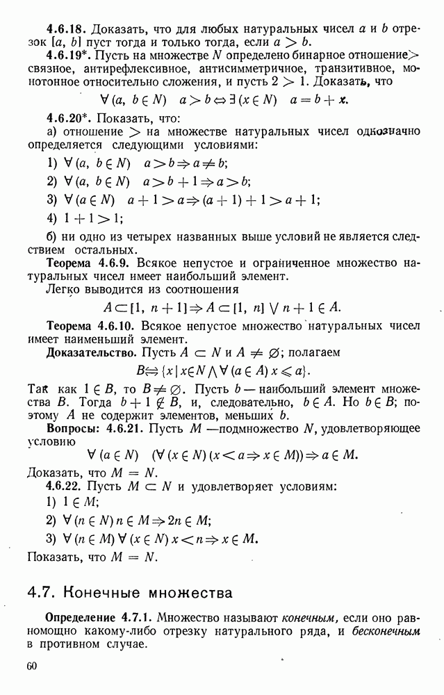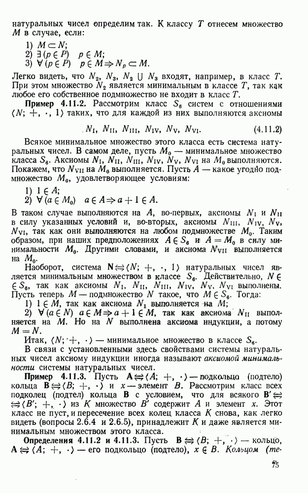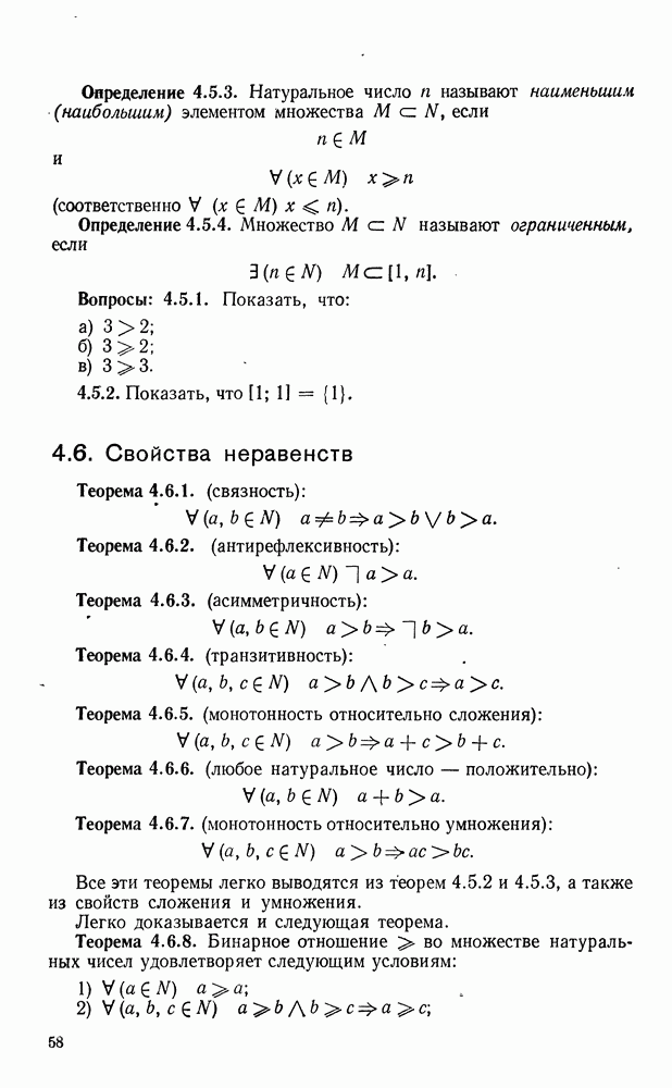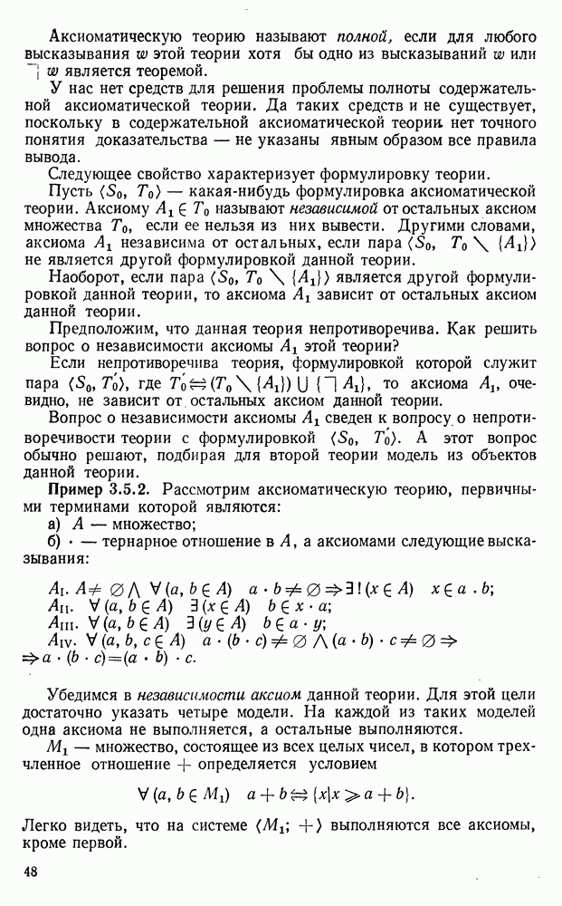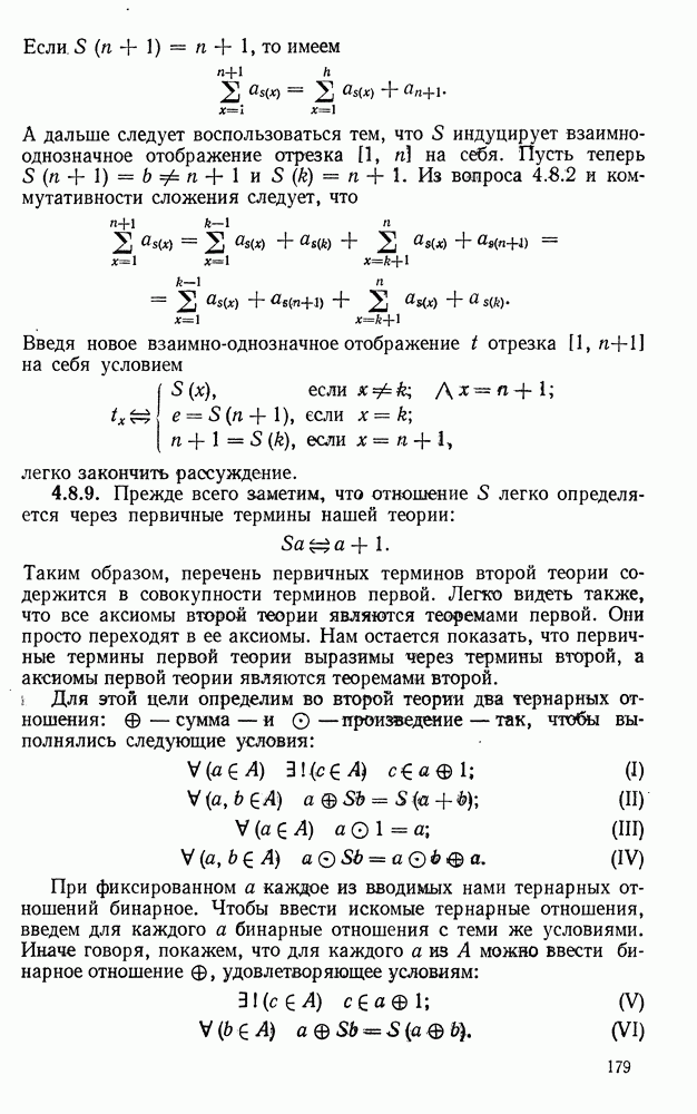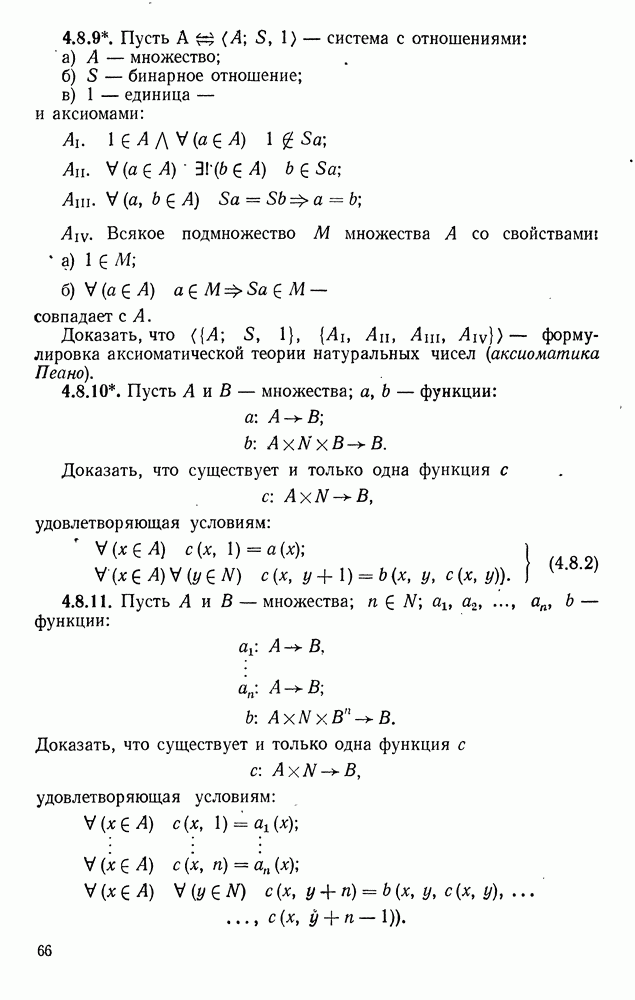 Следовательно, свойство «быть простым» может рассматриваться как унарное отношение в 2.2.4. Вычитание — во множестве натуральных чисел — тернарное отношение. Множество а — b состоит из одного элемента или пусто в зависимости от того, а больше b или нет. Поэтому вычитание является вместе с тем бинарной частичной алгебраической операцией, заданной во множестве натуральных чисел. Определение 2.2.2. Пусть Пусть Примеры 2.2.5. Вычитание 2.2.6. Отношение порядка 2.2.7. Пусть Т — множество точек плоскости, Р — множество ее прямых. Отношение принадлежности точки прямой является бинарным отношением, заданным во множествах Т и Р. 2.2.8. Пусть Т — множество точек плоскости. Зададим тернарное отношение Определение 2.2.3. Бинарное отношение а) связным, если б) рефлексивным, если в) антирефлексивным, если г) симметричным, если д) антисимметричным, если е) асимметричным, если ж) транзитивным, если з) в случае, если на множестве