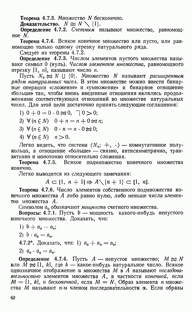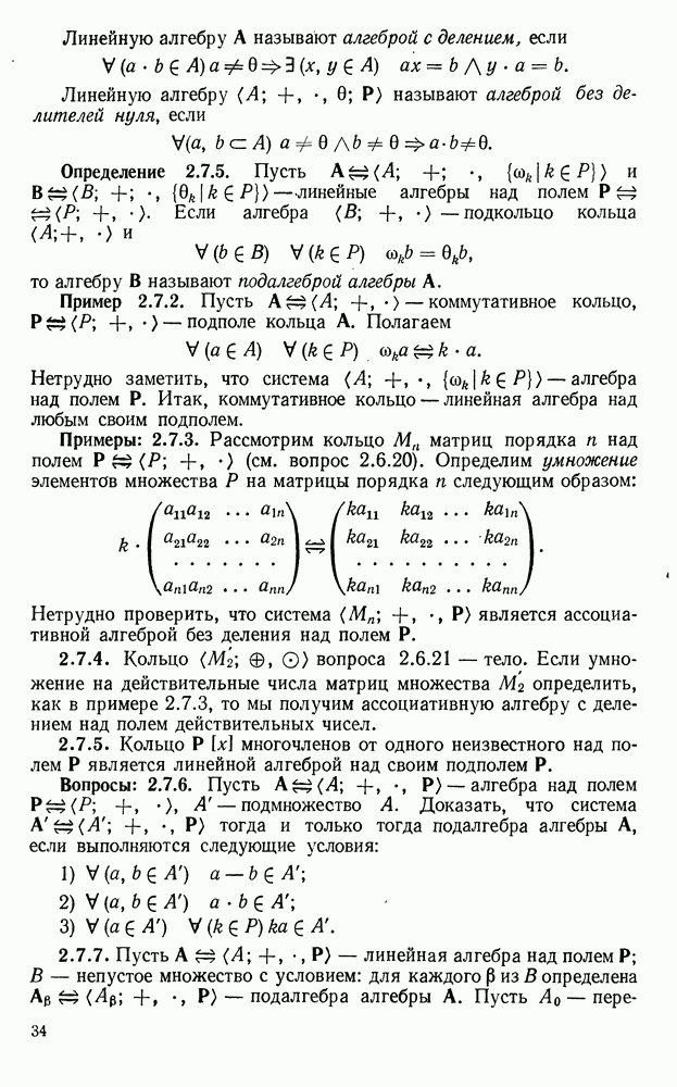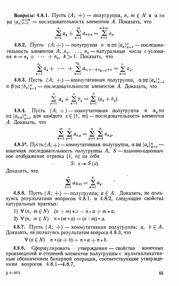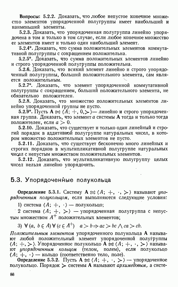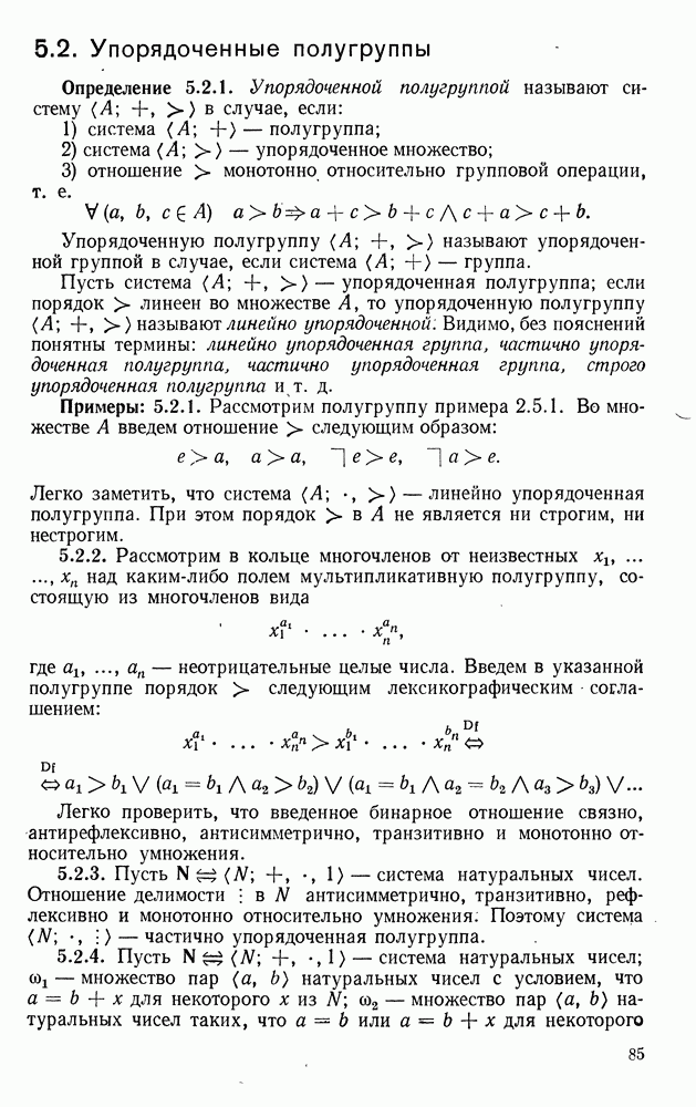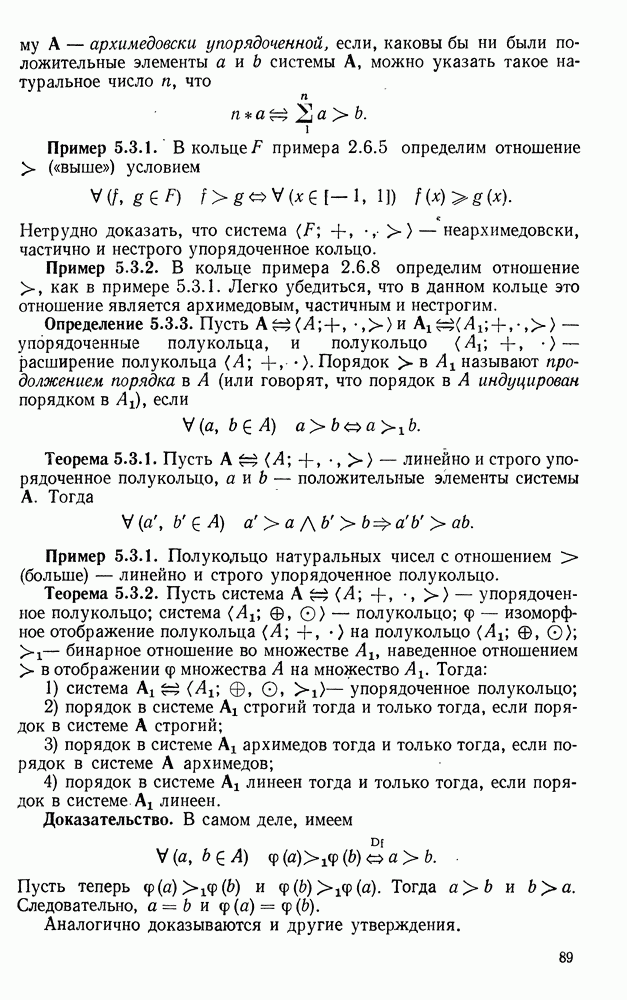 Законы композиции часто обозначают знаками Вопросы: 2.2.1. Доказать, что всякое антирефлексивное и транзитивное отношение асимметрично. 2.2.2. Доказать, что бинарное отношение асимметрично тогда и только тогда, если оно антирефлексивно и антисимметрично. 2.2.3. Показать, что умножение на множестве матриц второго порядка с целыми элементами — некоммутативно. 2.2.4. Показать, что закон композиции примера 2.2.5 неассоциативен. 2.2.5. Является ли деление (см. определение 2.2.5) частичной алгебраической операцией во множестве натуральных, целых и рациональных чисел? 2.2.6. Сопоставим с каждой парой (а, b) положительных чисел степень Определение 2.2.5. Пусть на множестве А определена бинарная операция умножение;
