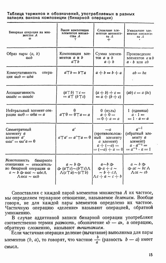 то элемент Таблица терминов и обозначений, употребляемых в разных записях закона композиции (бинарной операции)