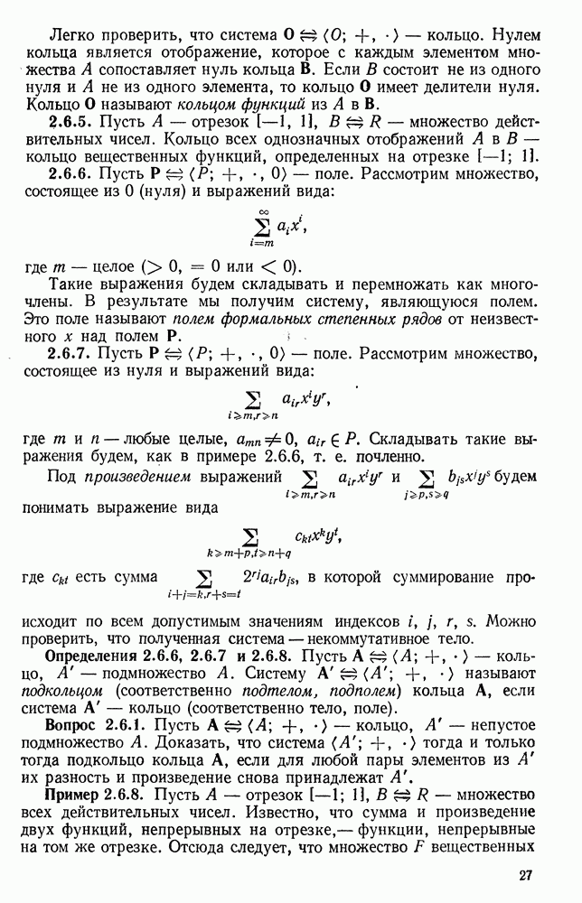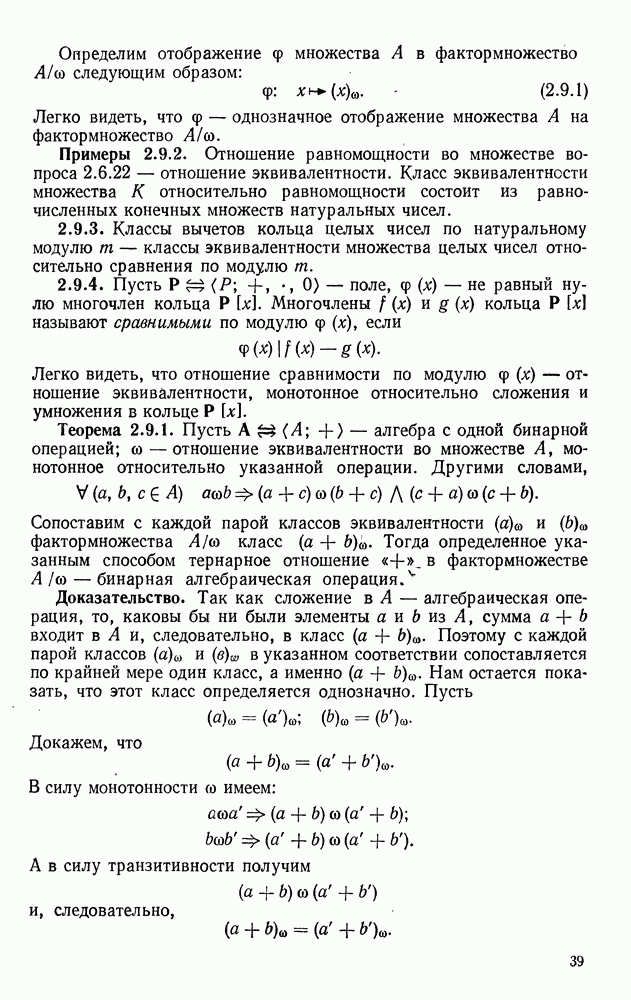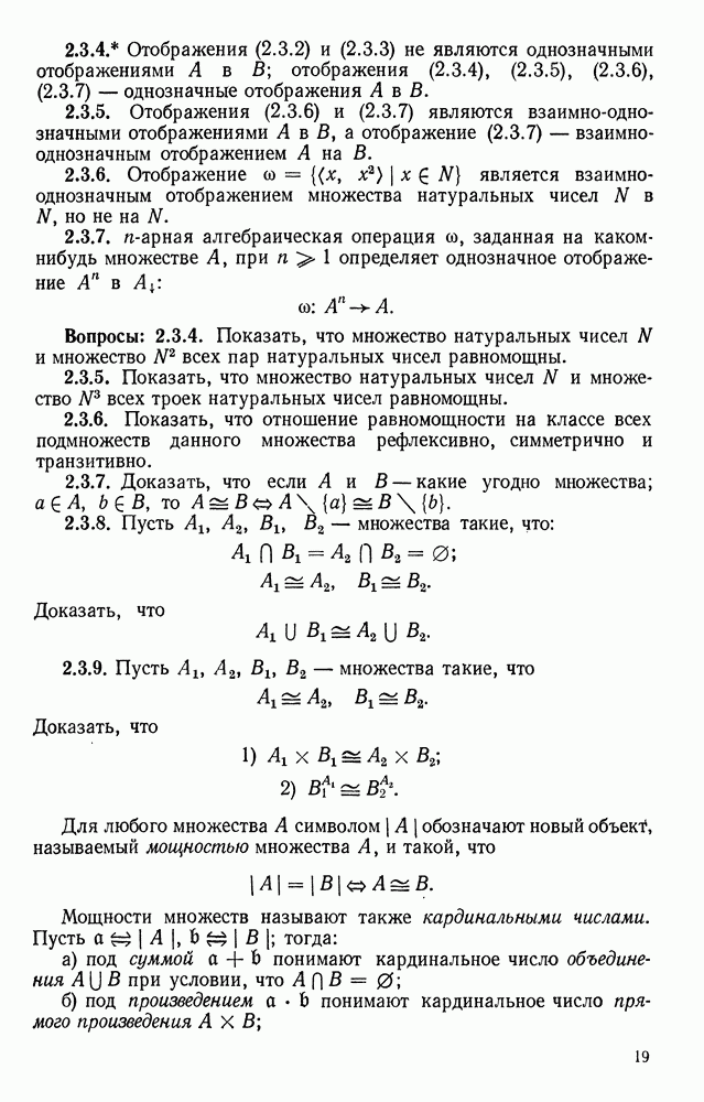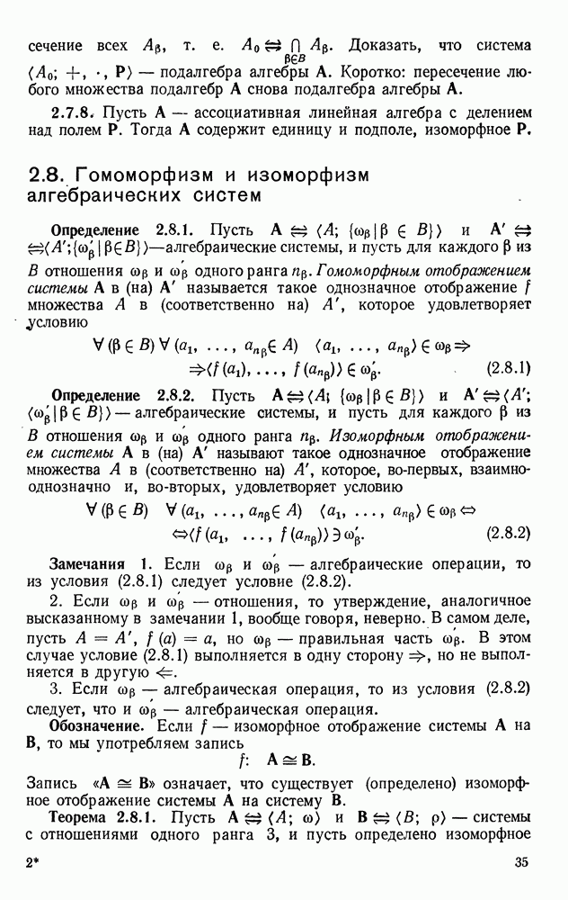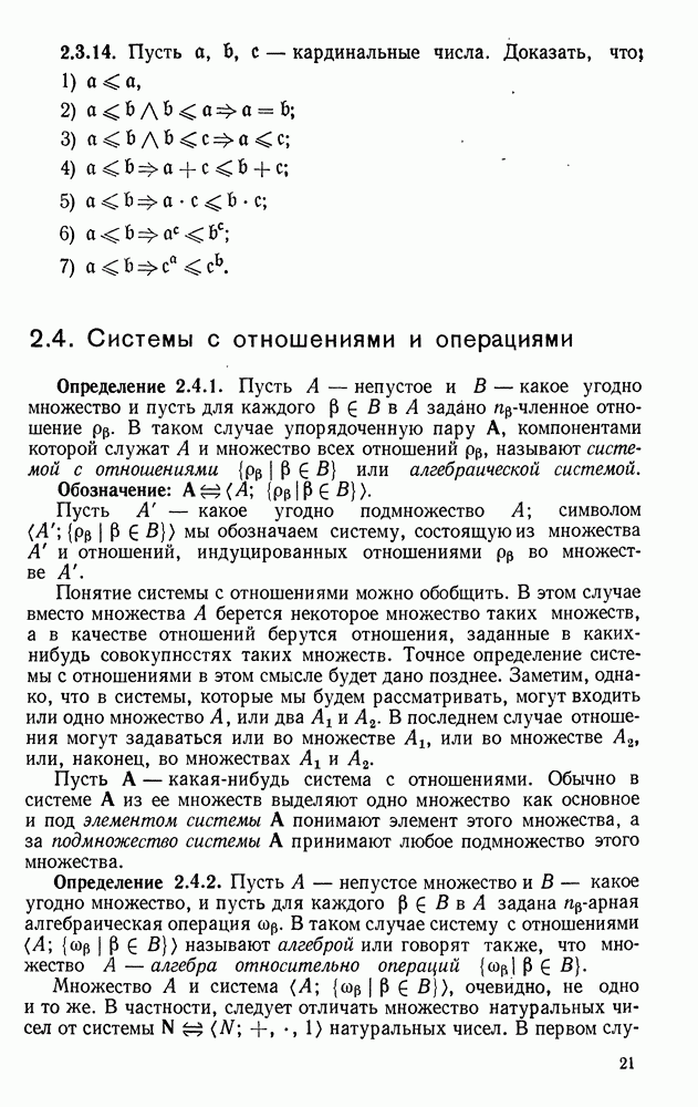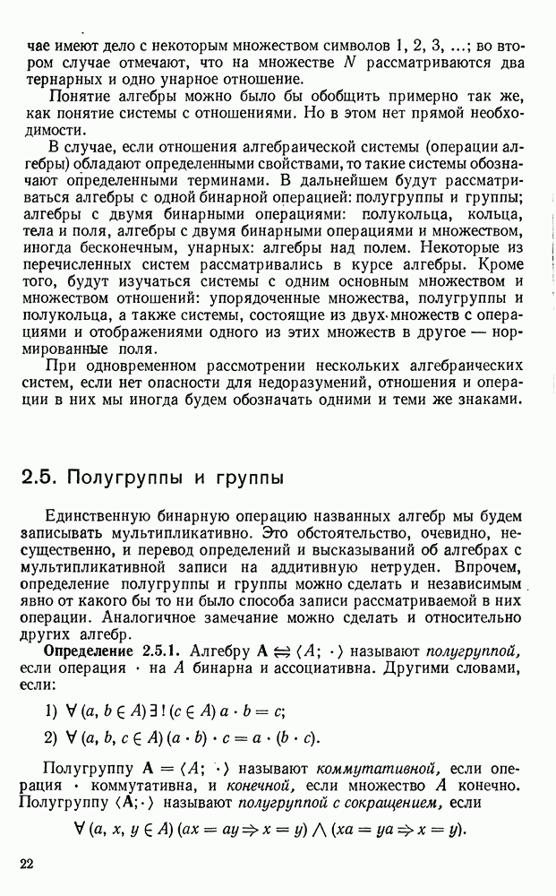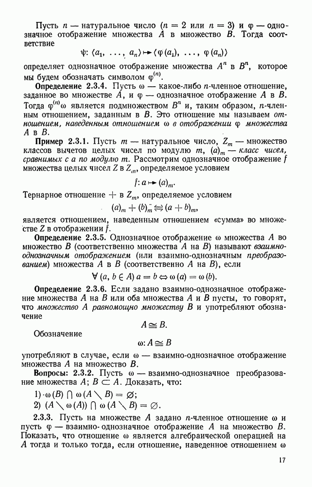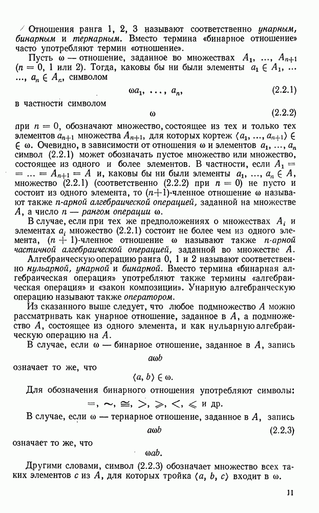 при В случае, если при тех же предположениях о множествах А? и элементах а? множество (2.2.1) состоит не более чем из одного элемента, Алгебраическую операцию ранга 0, 1 и 2 называют соответственно нульарной, унарной и бинарной. Вместо термина «бинарная алгебраическая операция» употребляют также термины «алгебраическая операция» и «закон композиции». Унарную алгебраическую операцию называют также оператором. Из сказанного выше следует, что любое подмножество В случае, если