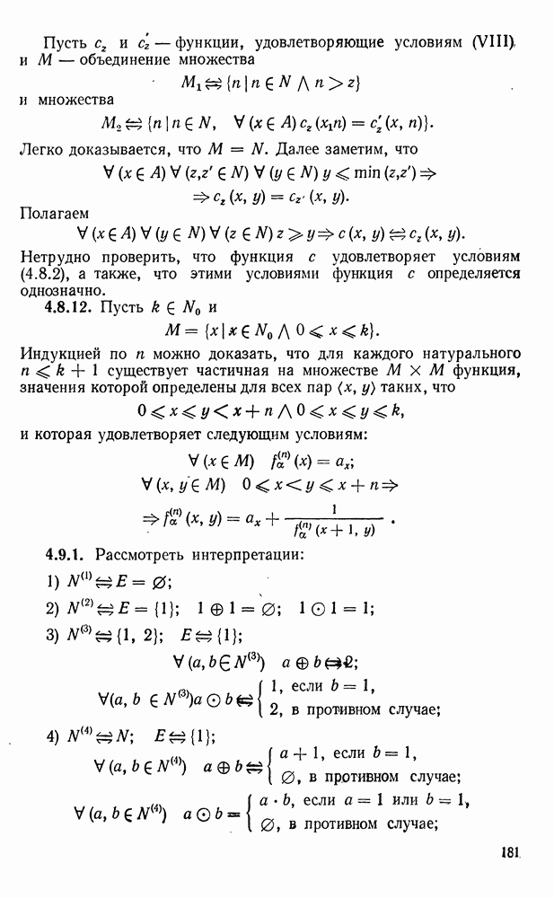 Имея в виду сказанное выше, мы при задании тернарного отношения со в каком-либо множестве A будем говорить: «Сопоставим с каждой парой (а, b) элементов множества Из этой фразы вовсе не следует ни что такой х (т. е. с условием...) найдется, ни что, если найдется, то только один. Поэтому, если нашей целью является задание алгебраической операции со, мы должны еще убедиться в том, что, во-первых, хотя бы один Примеры 2.2.1.