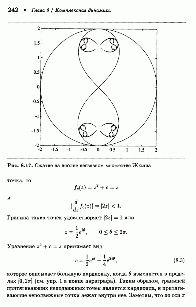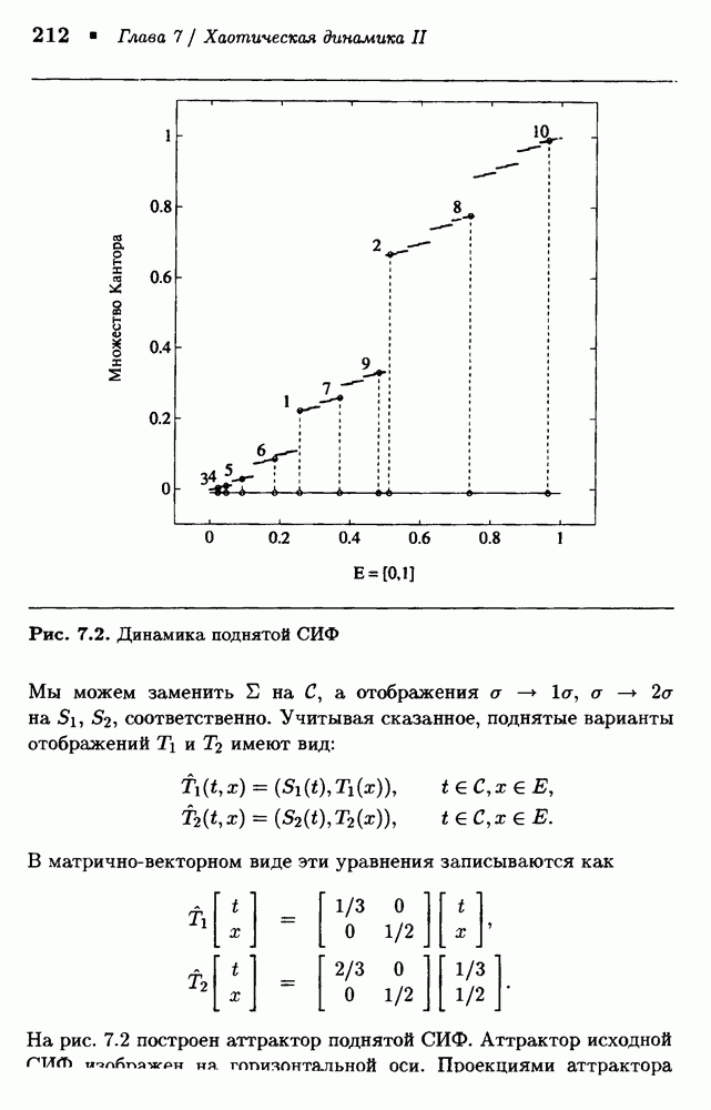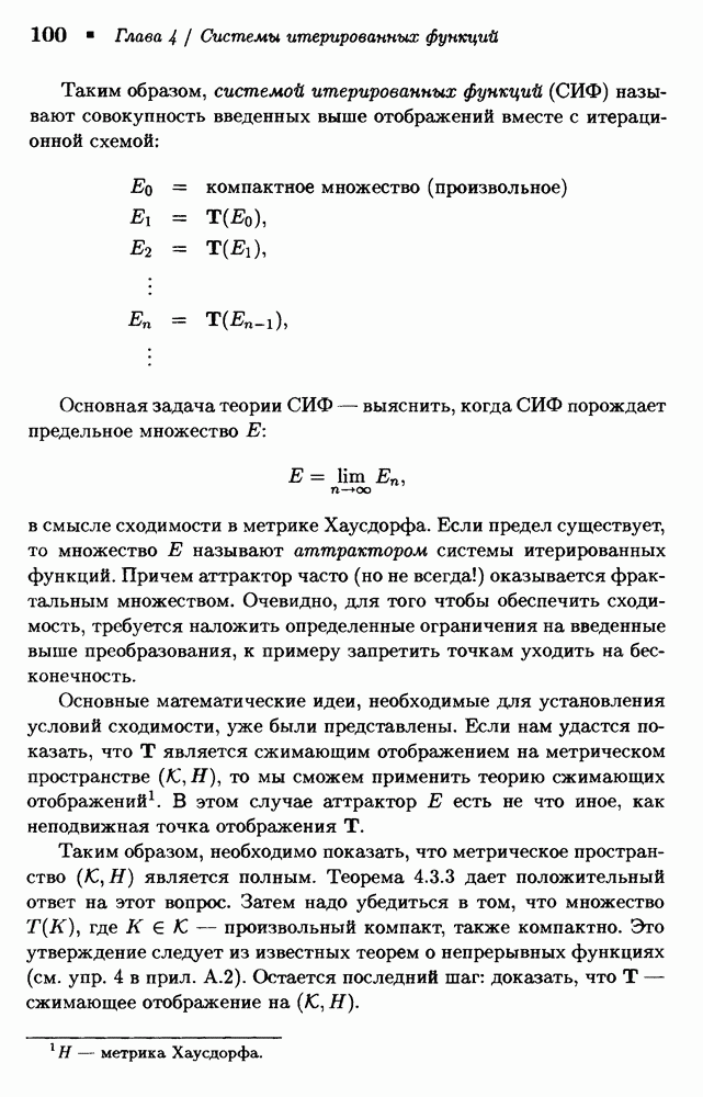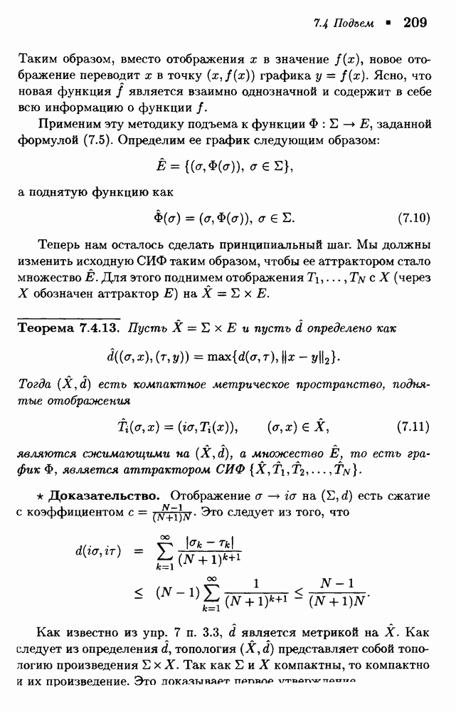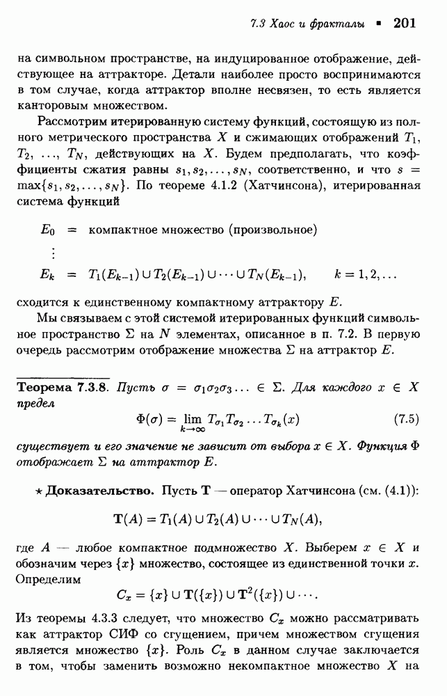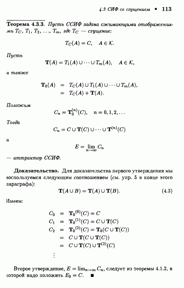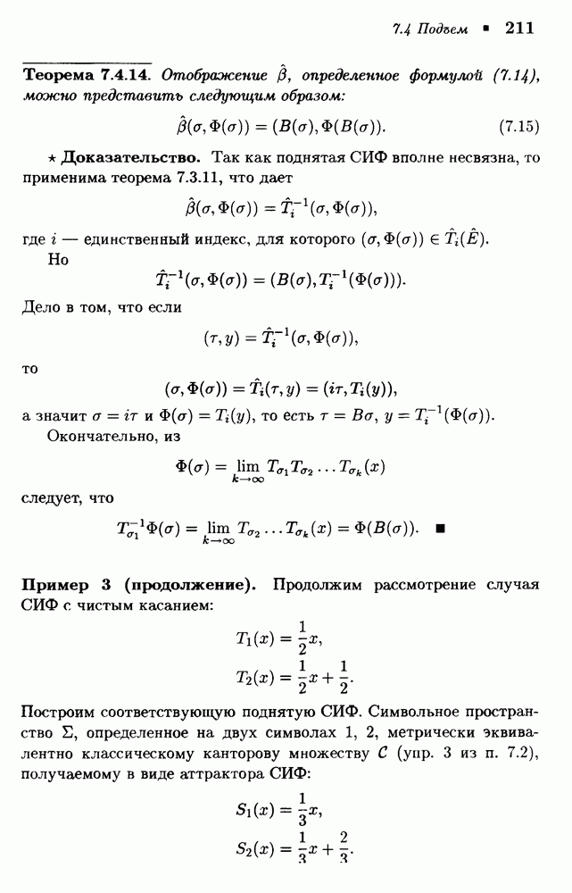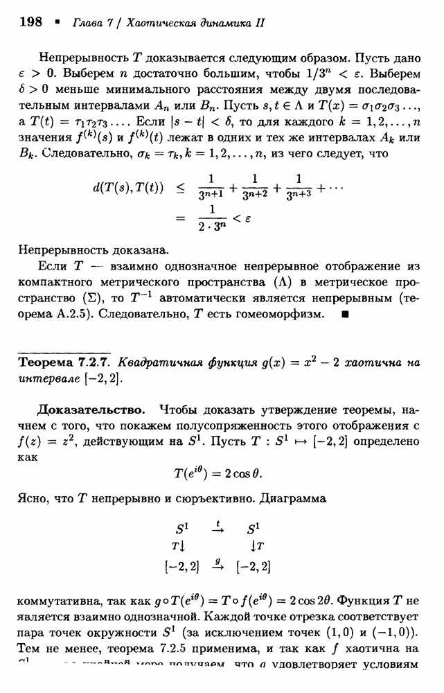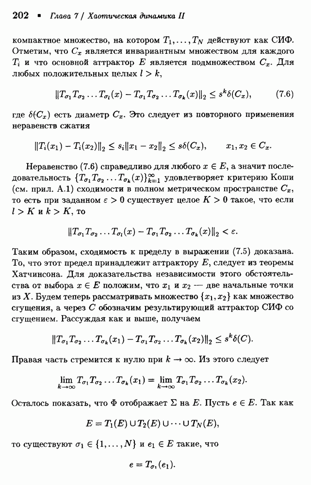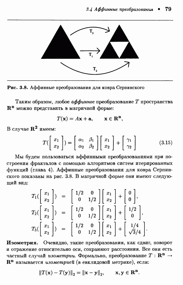Второе важное следствие касается размерности фракталов, подвергнутых преобразованию. Представим себе фрактал, нарисованный на резиновой пленке. Будем растягивать ее произвольным образом в разные стороны. Изменится ли размерность фрактала? При некоторых ограничениях — нет. Во-первых, будем рассматривать только взаимно однозначные преобразования, когда каждой точке исходного фрактала соответствует одна и только одна точка нового фрактала. Также потребуем, чтобы преобразование было непрерывным, что исключает возможность «нашинковать» оригинал, а затем склеить кусочки произвольным образом. Но и этого еще недостаточно для того, чтобы размерность не изменилась. За примером обратимся к теореме 5.1.2, в которой рассматривается множество Следующий простой критерий сохранения размерности сформулирован в терминах евклидовой метрики на Следствие 5.1.3. Пусть А — компакт в