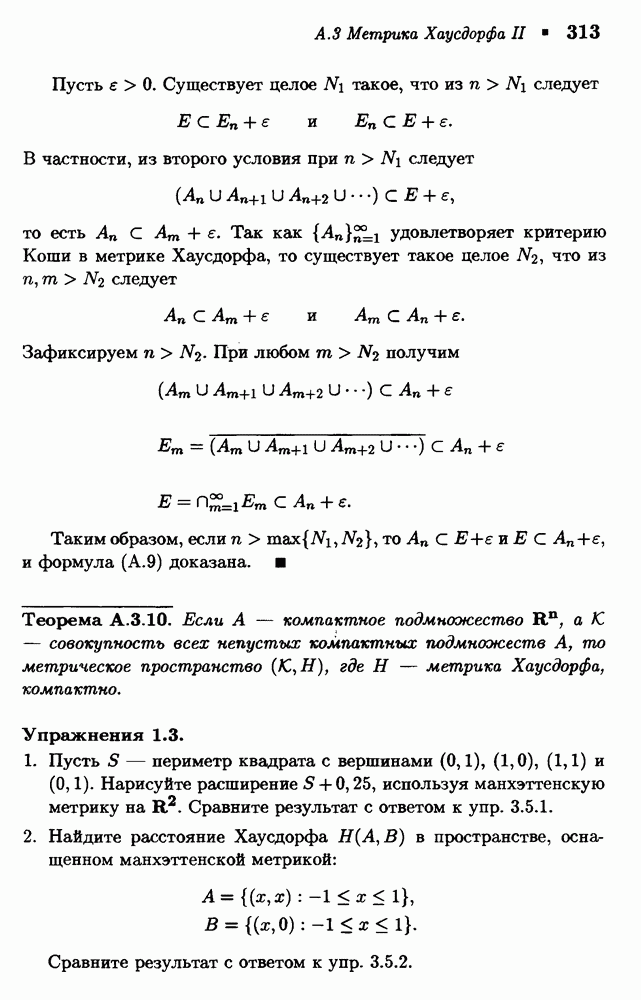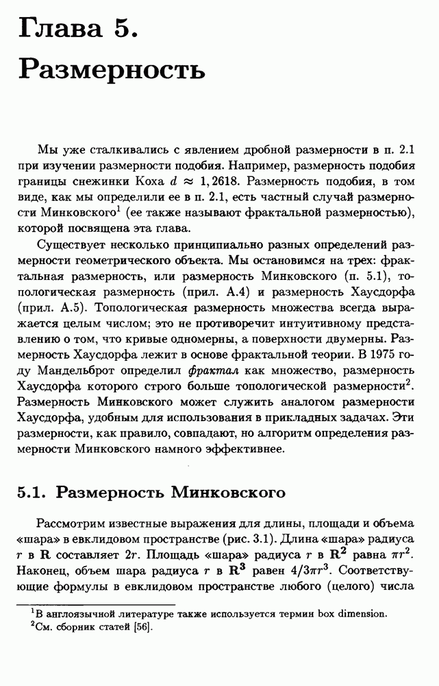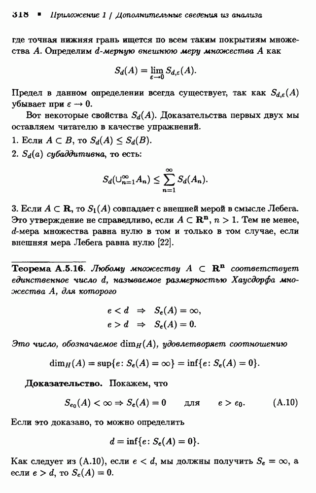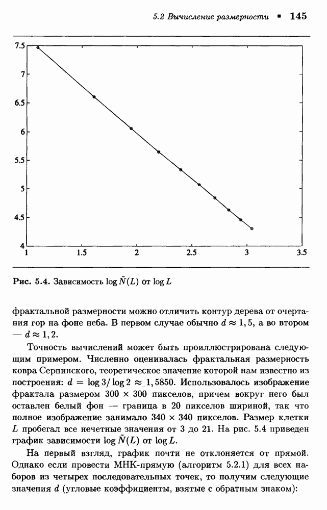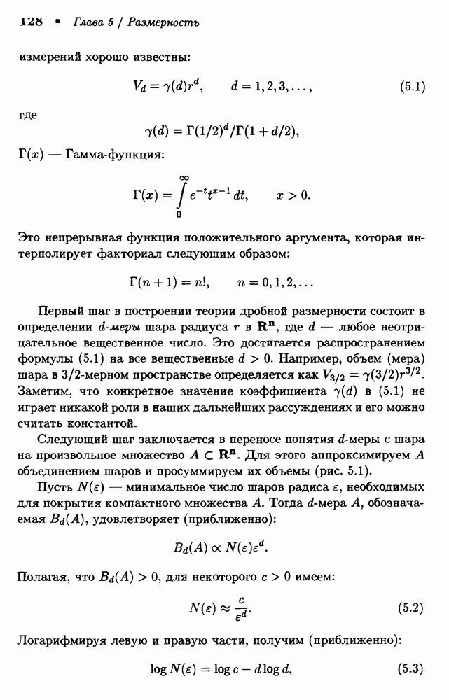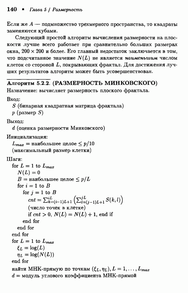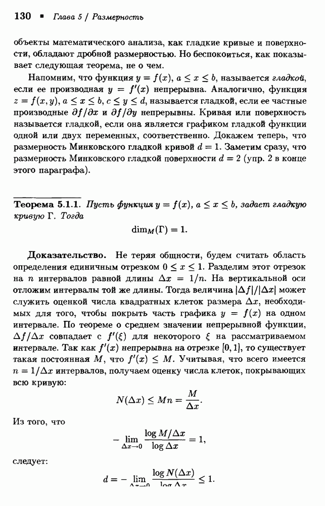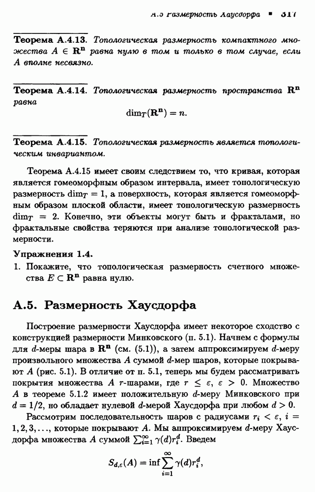 Для численного определения размерности Минковского некоторого множества А его надо аппроксимировать конечным объединением шаров. Из последней теоремы немедленно следует, что вместо шаров в евклидовой метрике (кругов на плоскости) можно использовать кубы (квадраты на плоскости). Вопросу численного определения размерности Минковского посвящен п. 5.2. Следствие 5.1.2. Пусть А — компактное подмножество