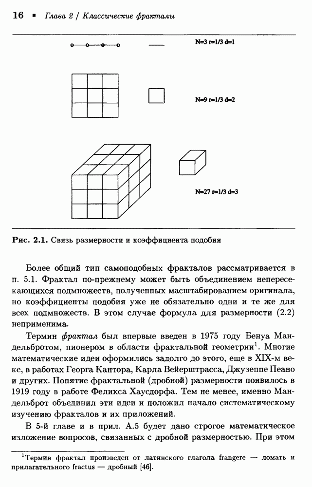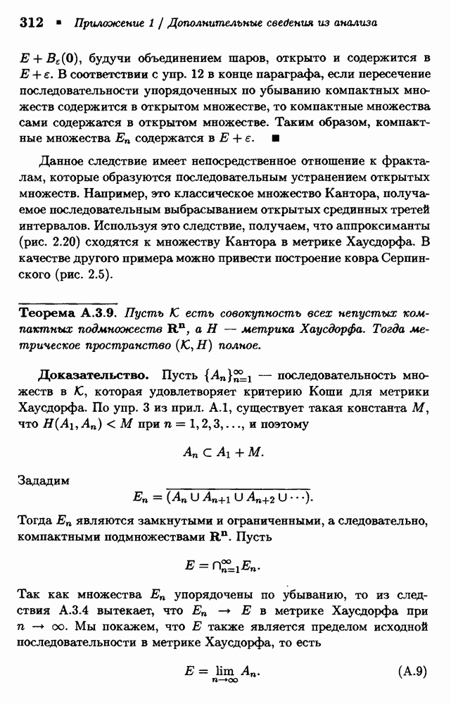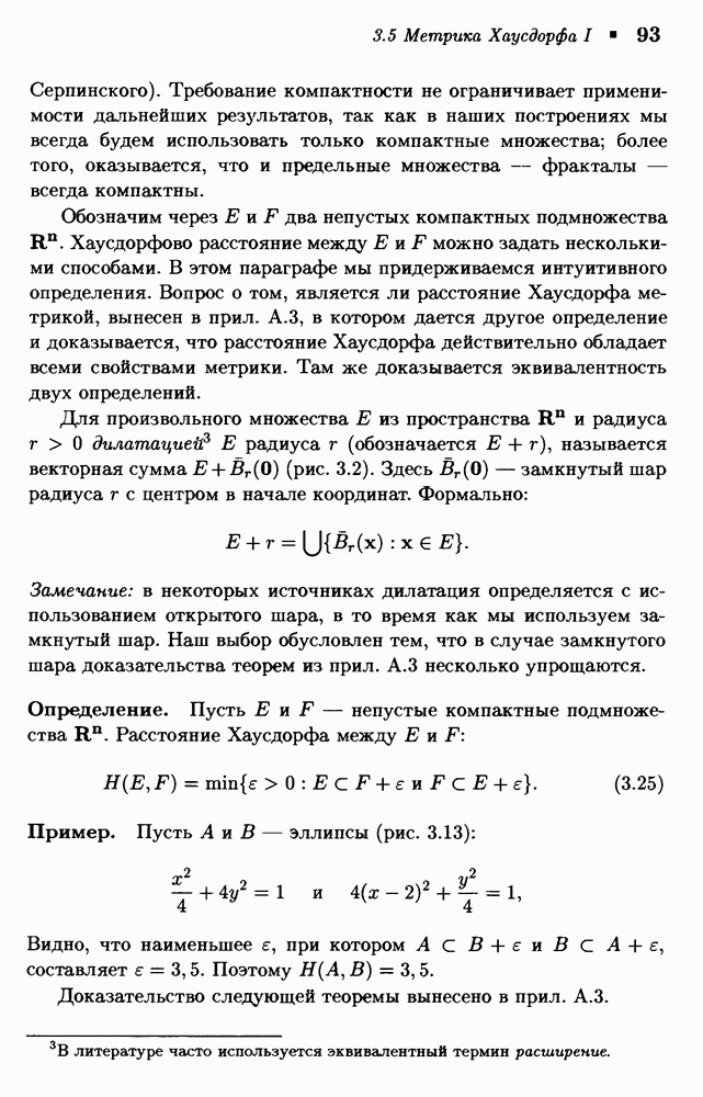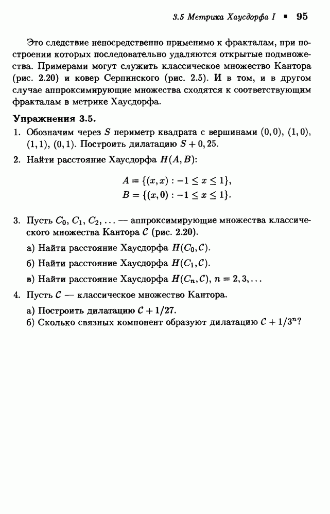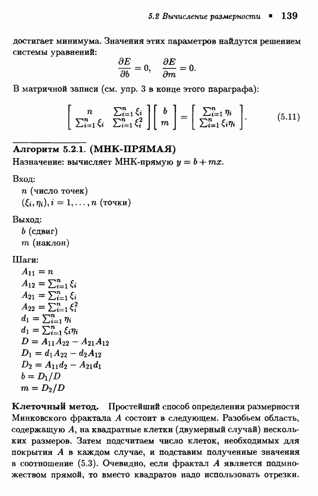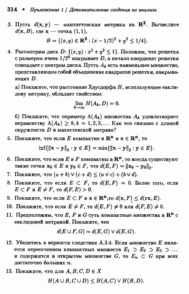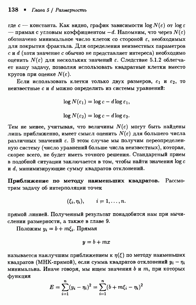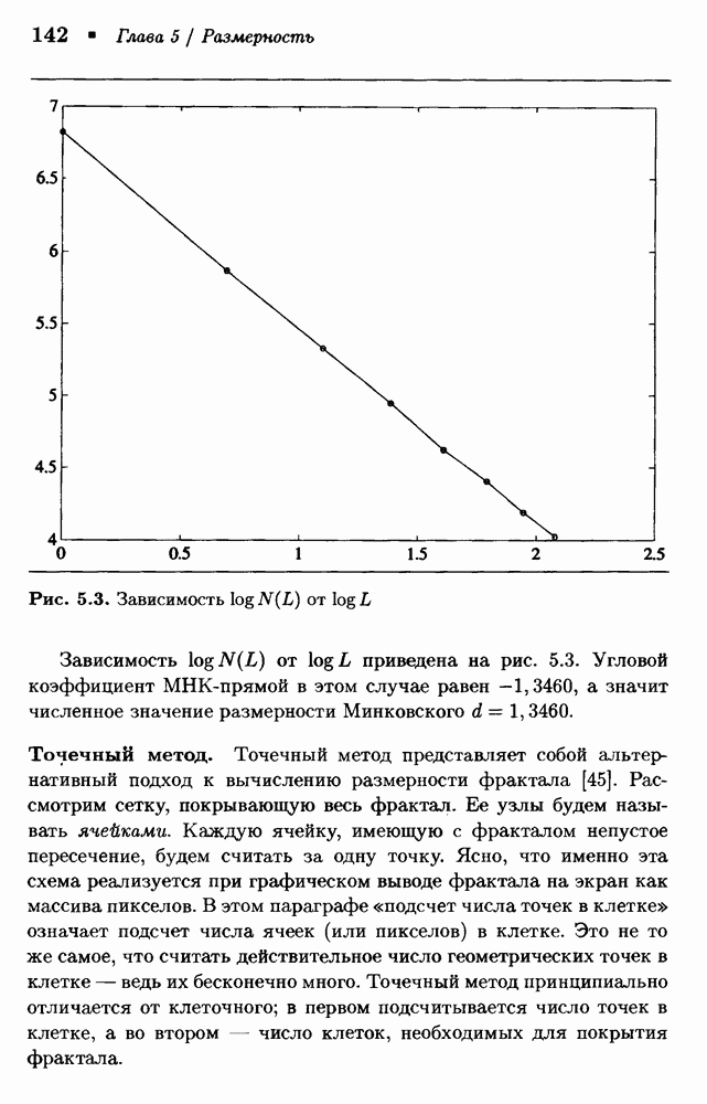 Для численного определения размерности Минковского некоторого множества А его надо аппроксимировать конечным объединением шаров. Из последней теоремы немедленно следует, что вместо шаров в евклидовой метрике (кругов на плоскости) можно использовать кубы (квадраты на плоскости). Вопросу численного определения размерности Минковского посвящен п. 5.2. Следствие 5.1.2. Пусть А — компактное подмножество