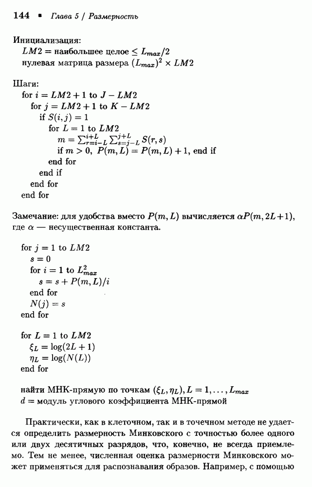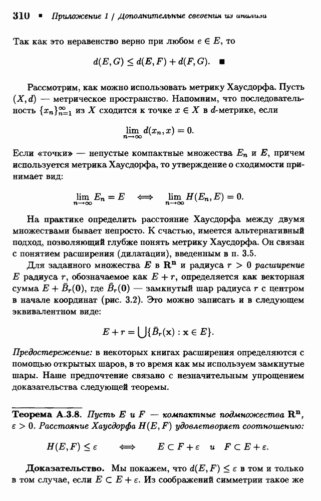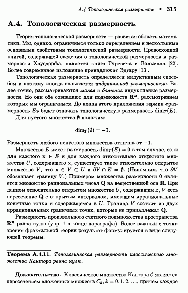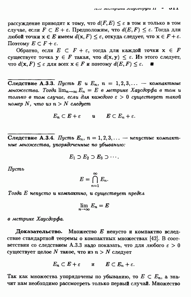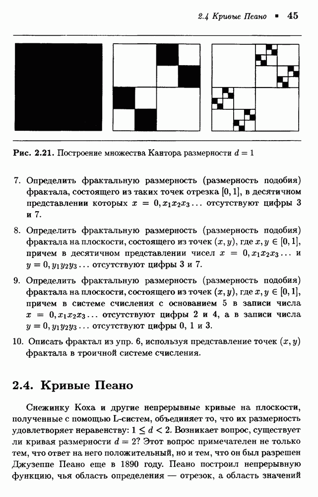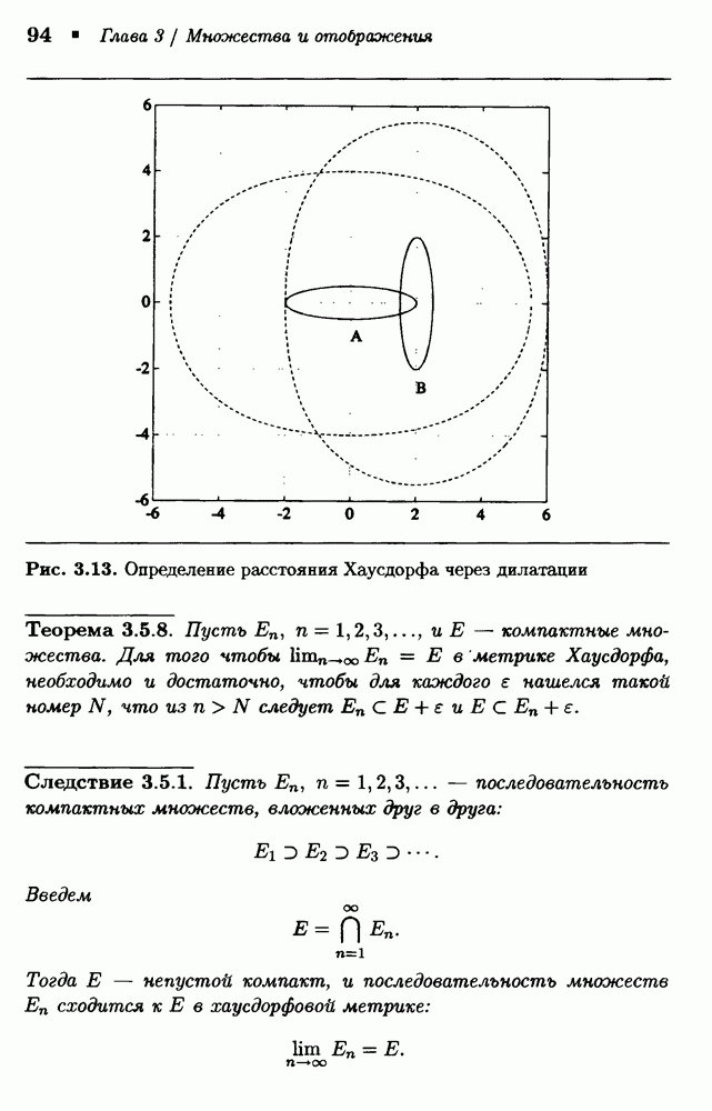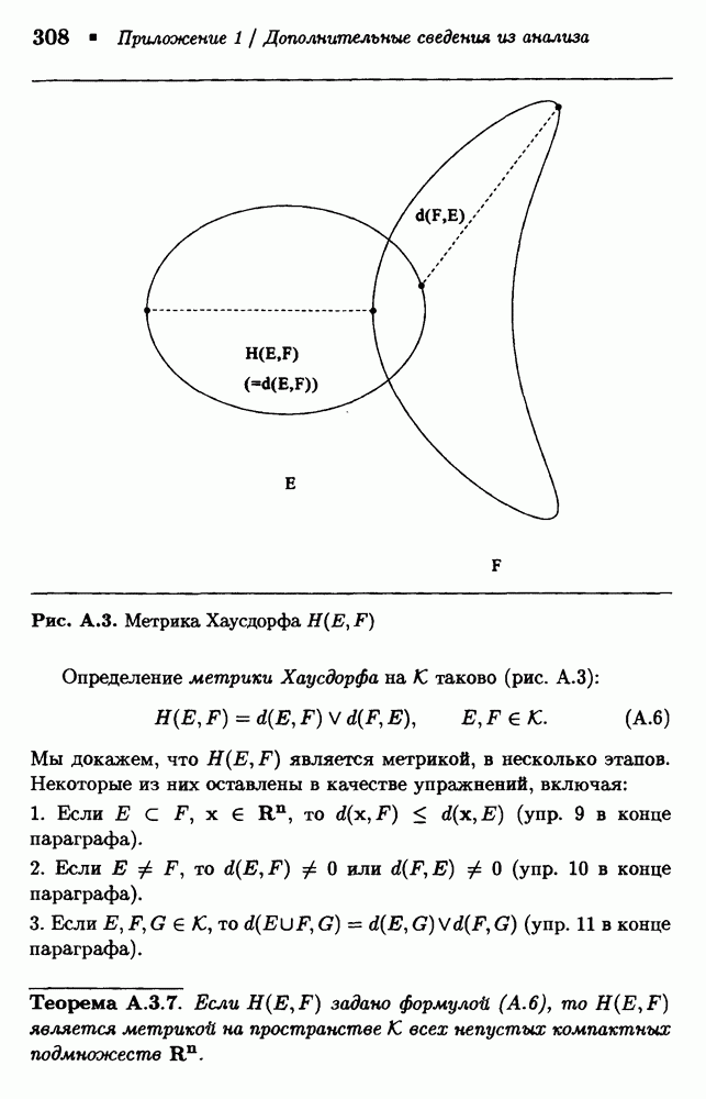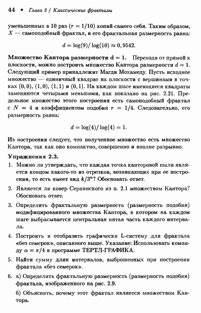 Для численного определения размерности Минковского некоторого множества А его надо аппроксимировать конечным объединением шаров. Из последней теоремы немедленно следует, что вместо шаров в евклидовой метрике (кругов на плоскости) можно использовать кубы (квадраты на плоскости). Вопросу численного определения размерности Минковского посвящен п. 5.2. Следствие 5.1.2. Пусть А — компактное подмножество