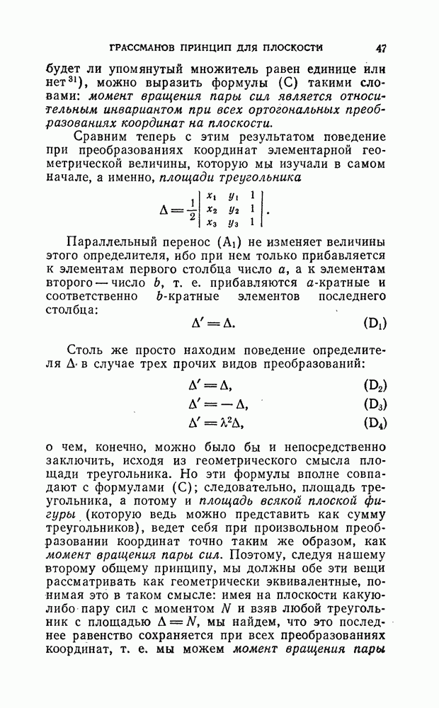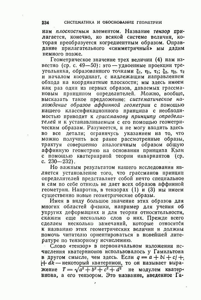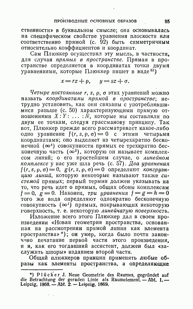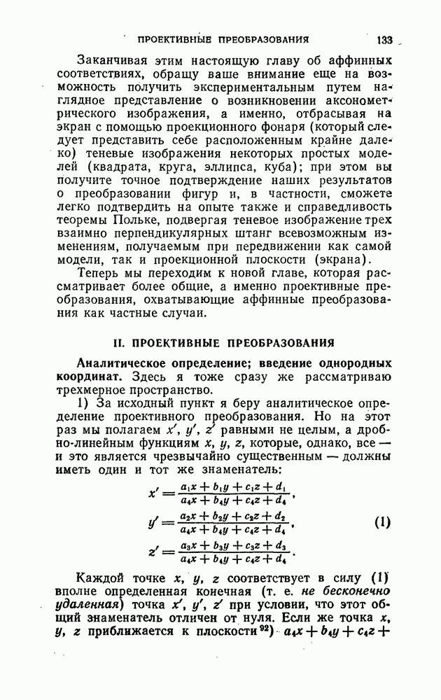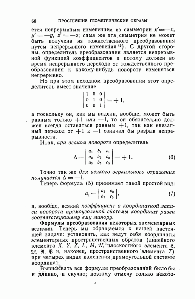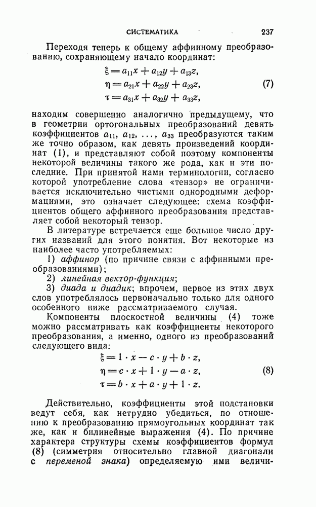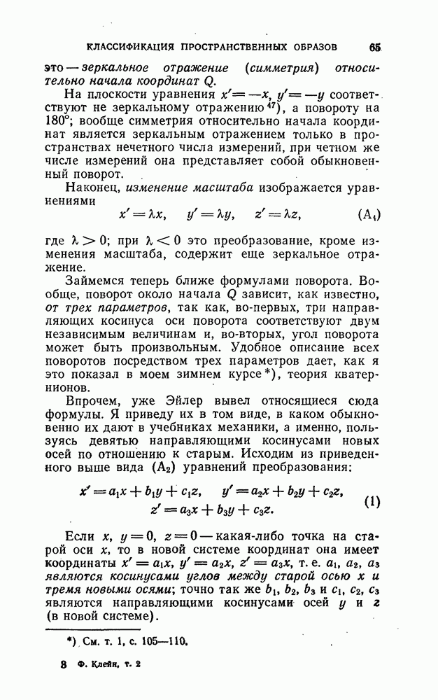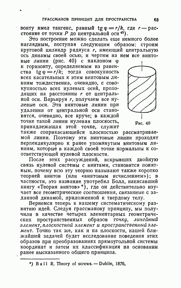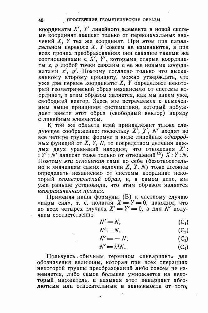 и рассматривают их как координаты системы сил или как координаты «динамы», пользуясь целесообразным выражением, введенным Плюккером; при этом мы снова различаем три компоненты вдоль осей и три момента вращения около этих осей. Но, вообще говоря, эта динама не представляет собой некоторой силы, ибо рассмотренные шесть сумм не всегда удовлетворяют условию