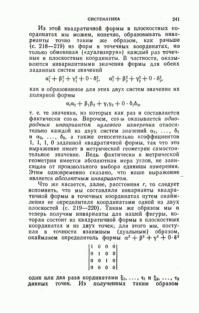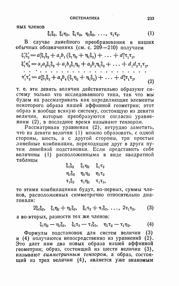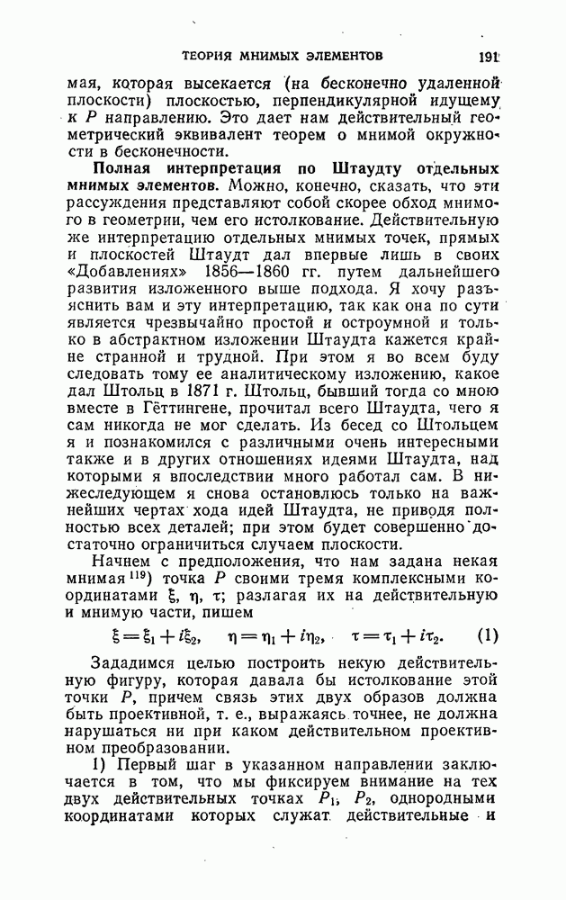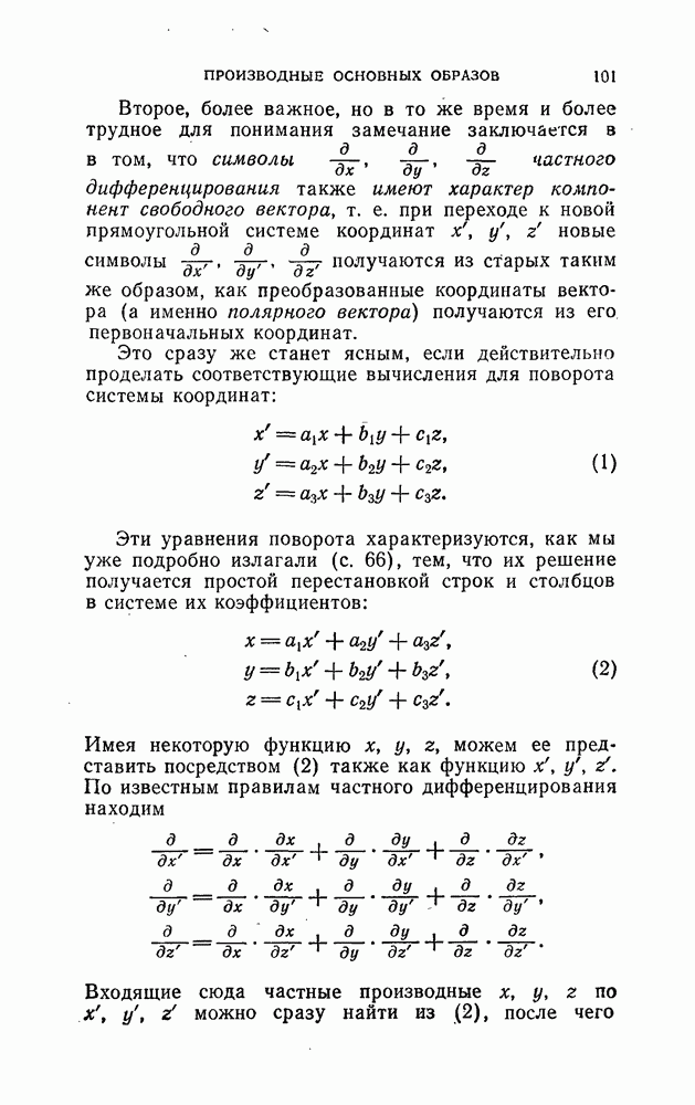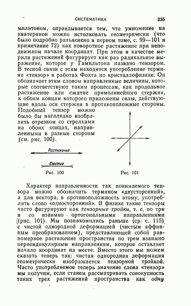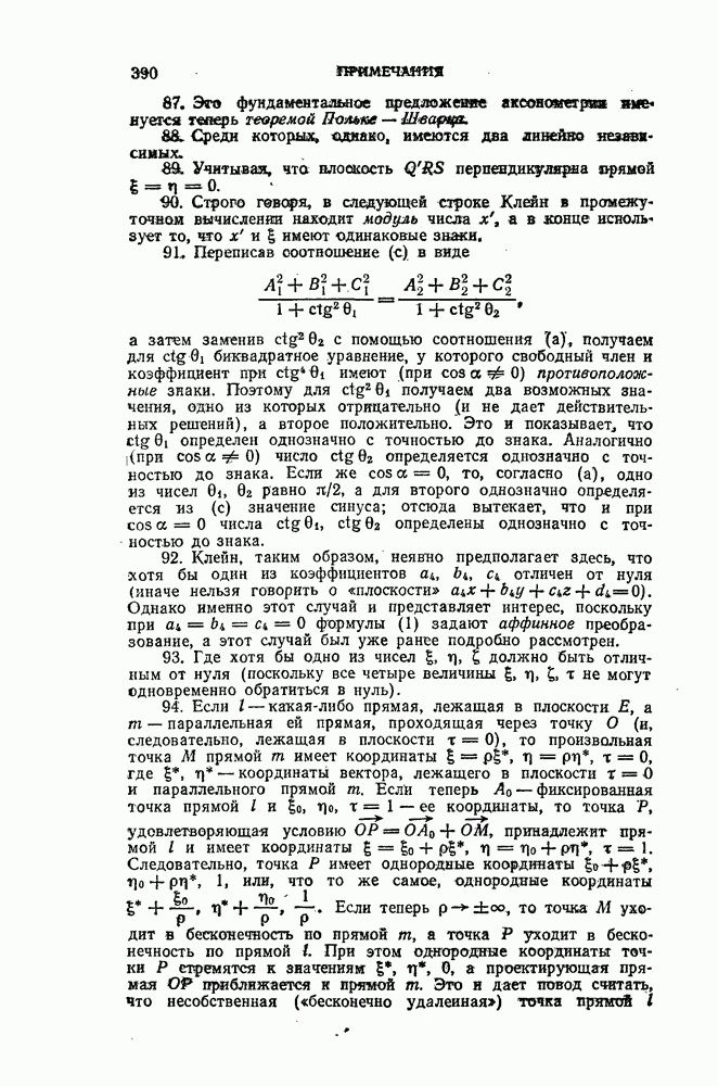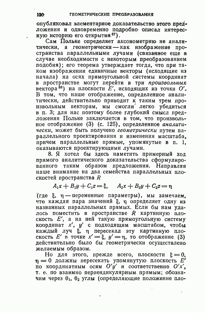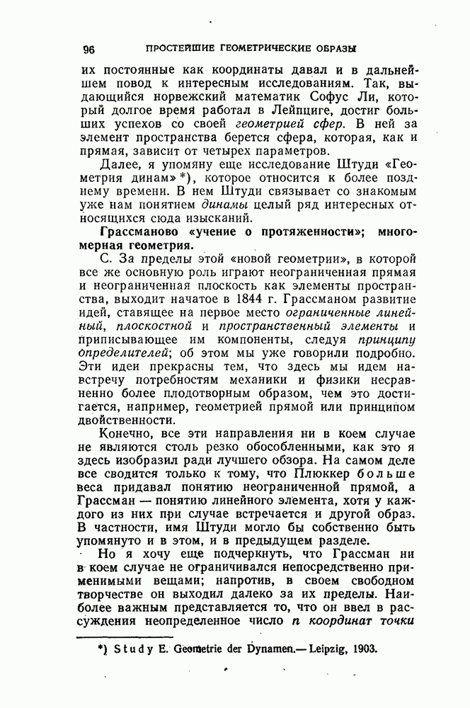 и рассматривают их как координаты системы сил или как координаты «динамы», пользуясь целесообразным выражением, введенным Плюккером; при этом мы снова различаем три компоненты вдоль осей и три момента вращения около этих осей. Но, вообще говоря, эта динама не представляет собой некоторой силы, ибо рассмотренные шесть сумм не всегда удовлетворяют условию