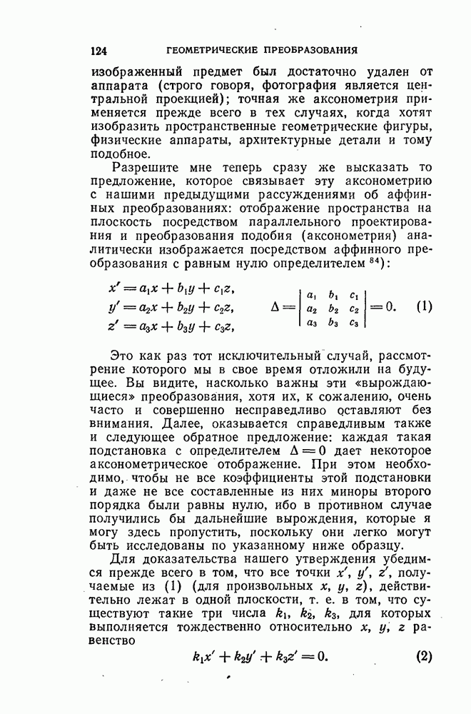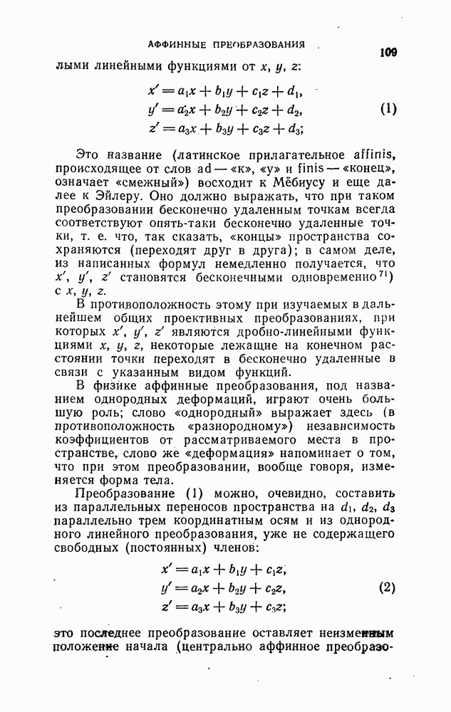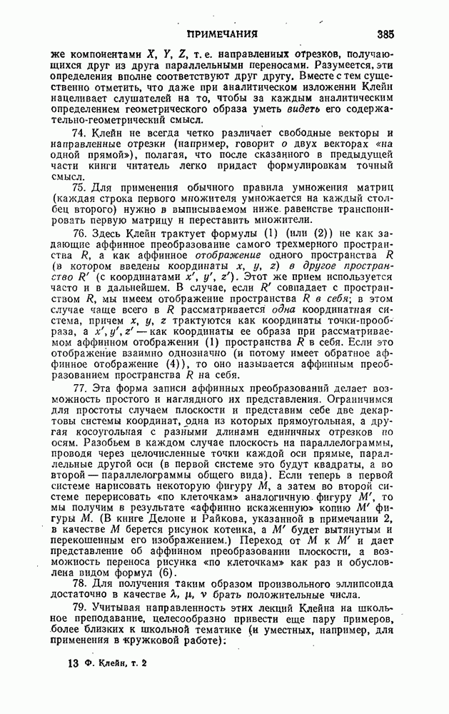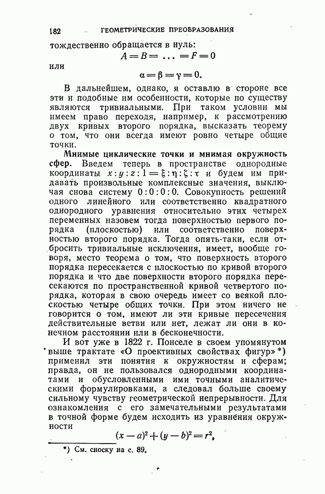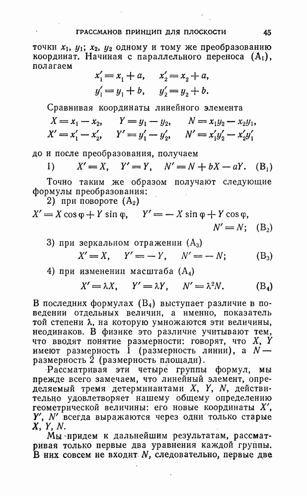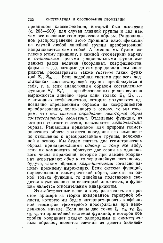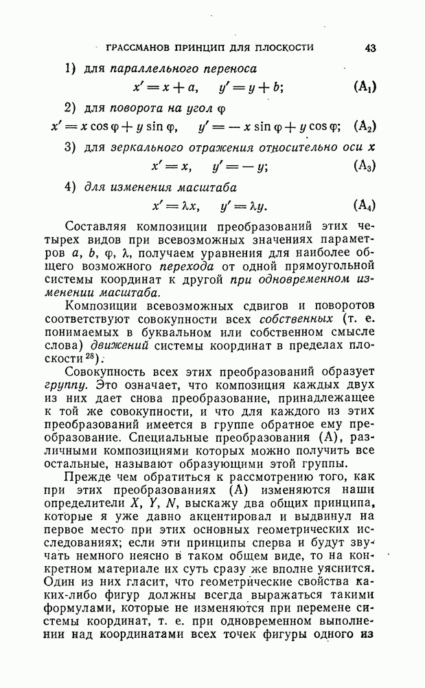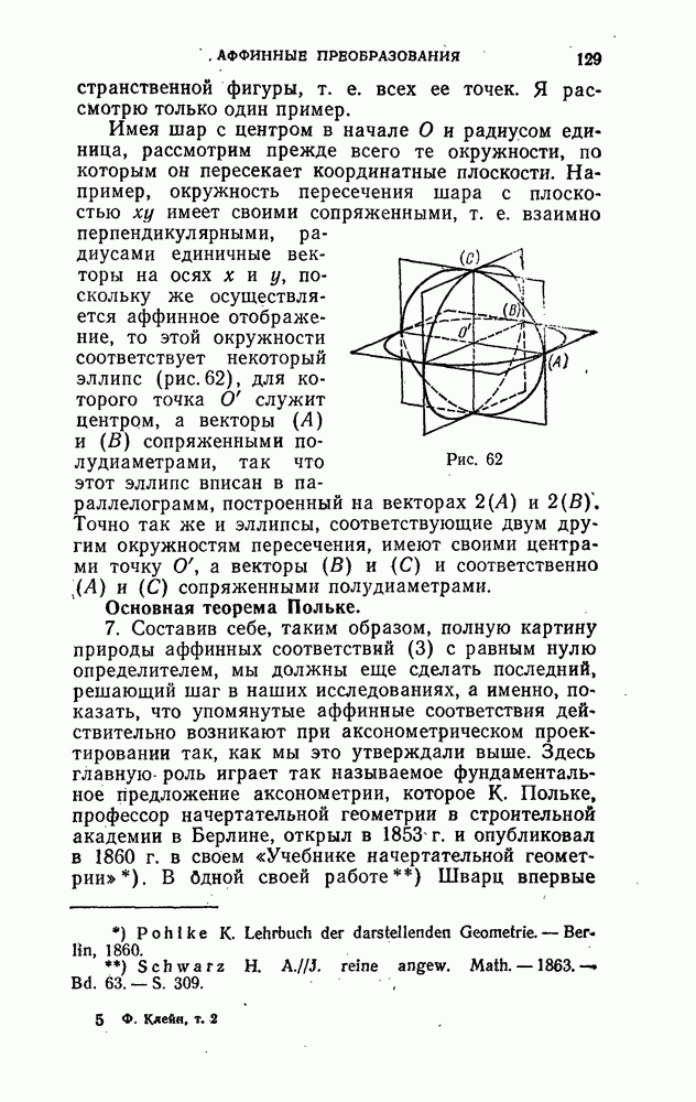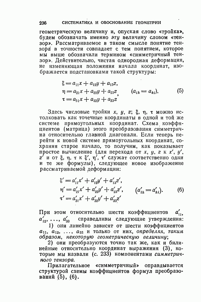 и рассматривают их как координаты системы сил или как координаты «динамы», пользуясь целесообразным выражением, введенным Плюккером; при этом мы снова различаем три компоненты вдоль осей и три момента вращения около этих осей. Но, вообще говоря, эта динама не представляет собой некоторой силы, ибо рассмотренные шесть сумм не всегда удовлетворяют условию