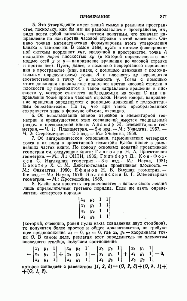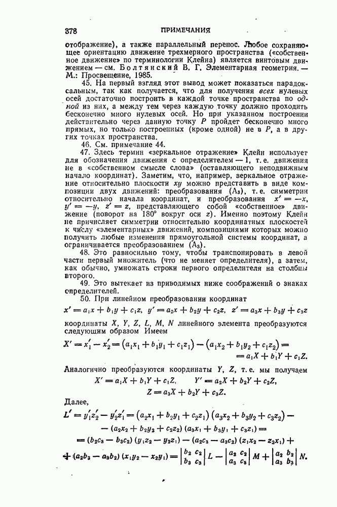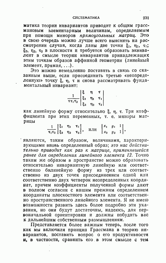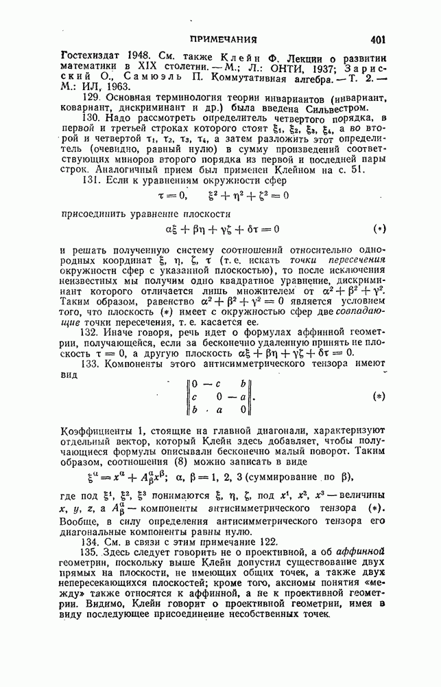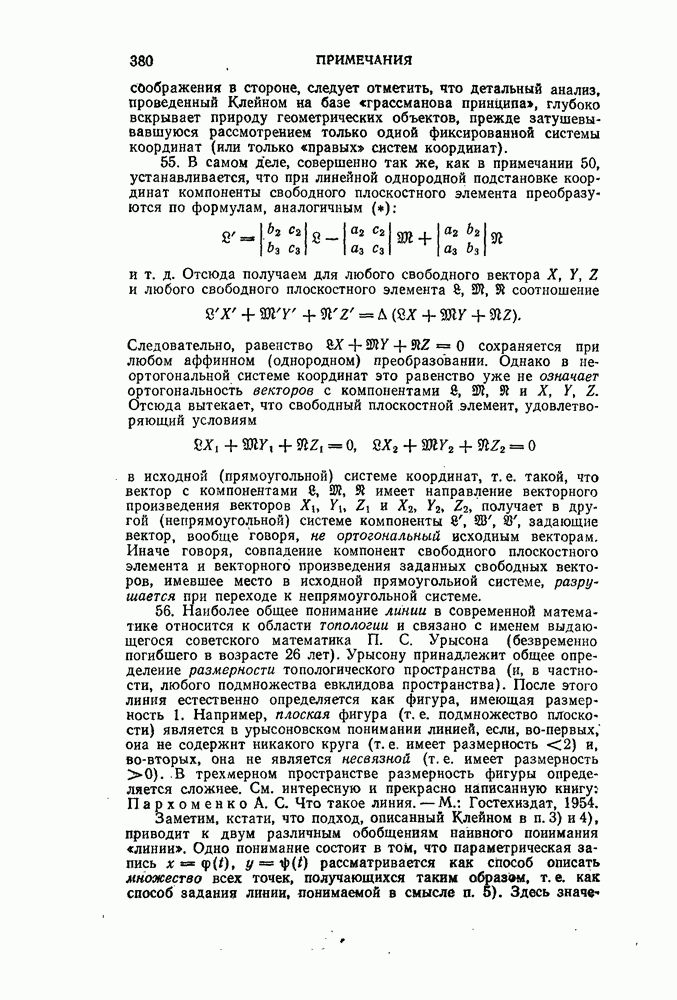 будем называть моментом одного линейного элемента по отношению к другому, он равен шестикратному объему тетраэдра, образованного концами обоих линейных элементов, и поэтому является геометрической величиной, не зависящей от системы координат. Если Если же вместо линейного элемента